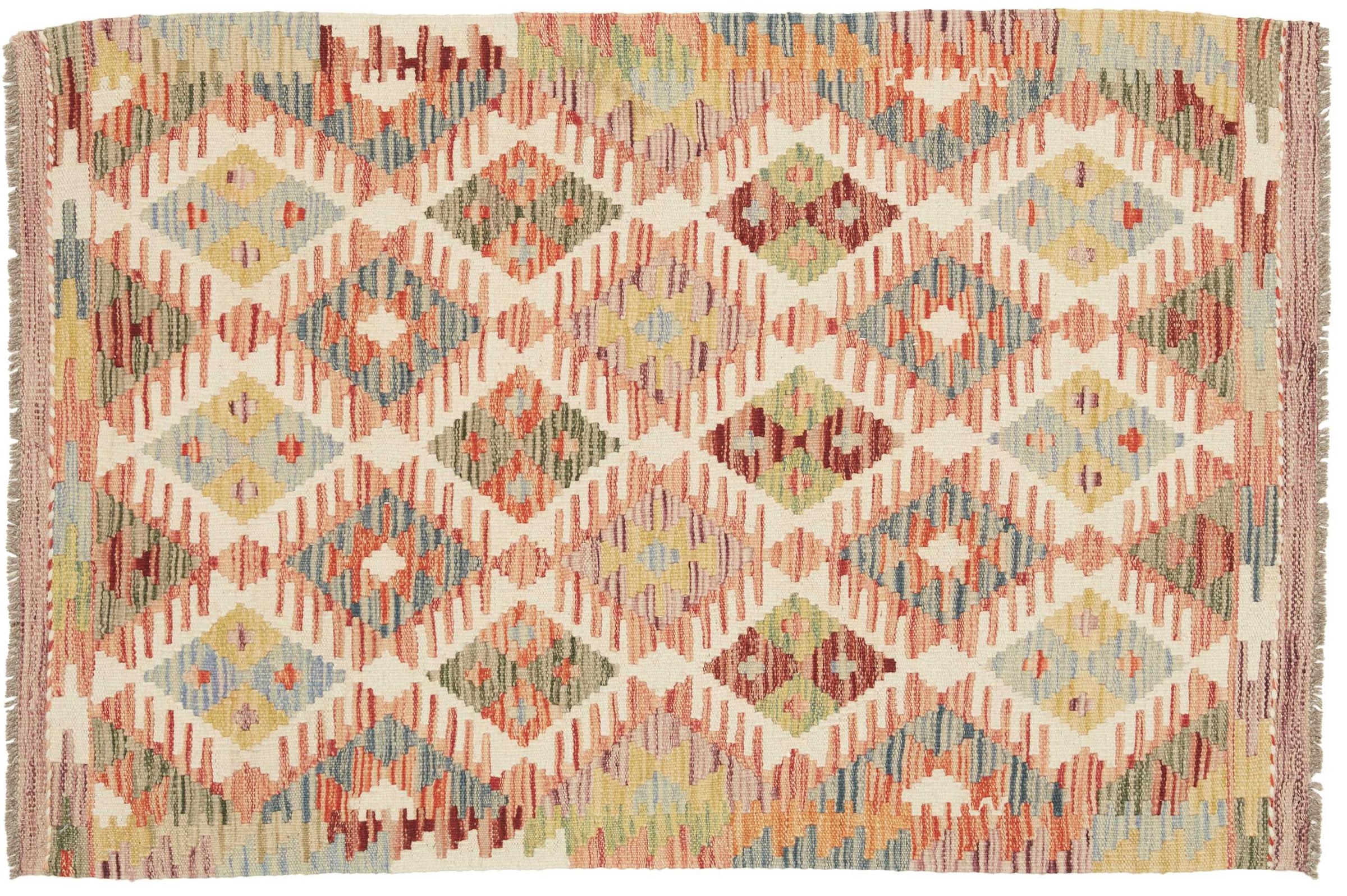 Ce tapis Afghan Kilim tissé main est une merveille, grâce à ses couleurs et à ses motifs caractéristiques. Il a été fabriqué en Afghanistan avec de la laine, et a bien sûr été fait à la main. Il est robuste et durable. Il est un véritable bénéfice pour votre maison.