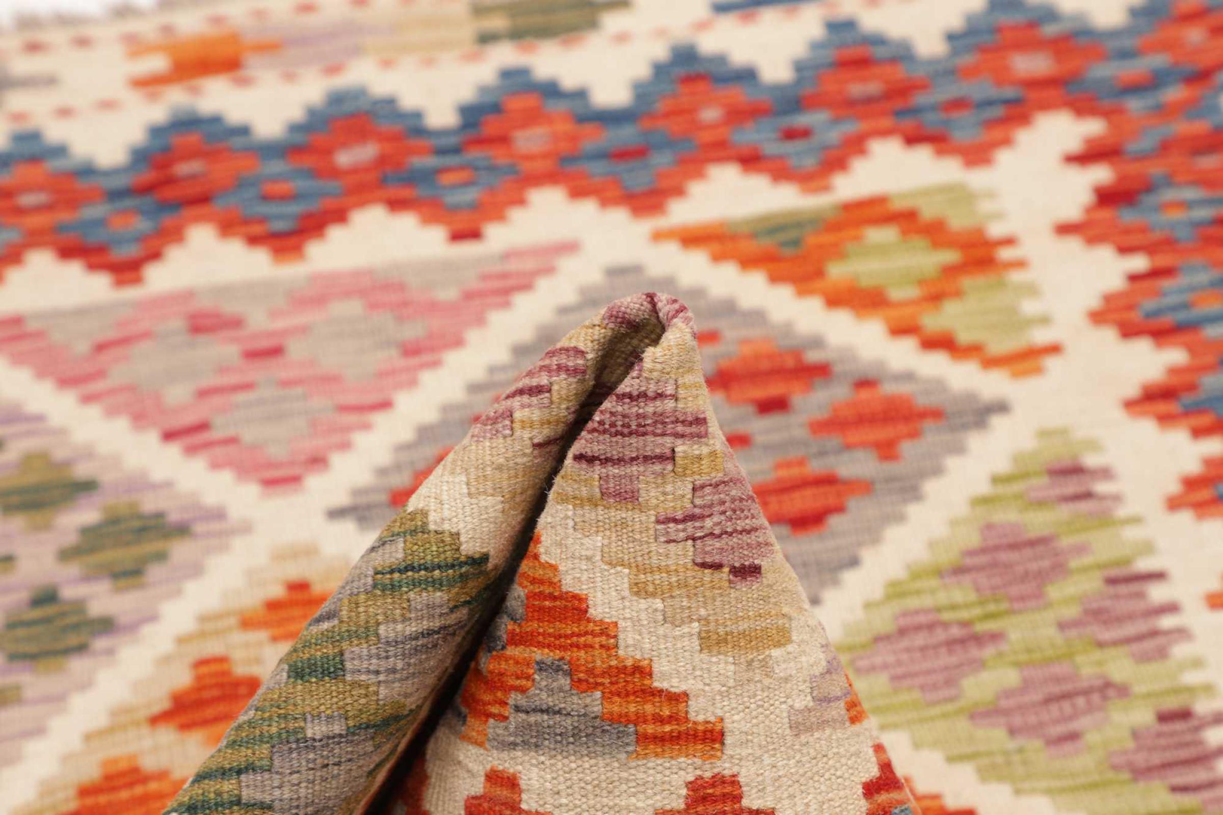 Ce tapis Afghan Kilim tissé main est une merveille, grâce à ses couleurs et à ses motifs caractéristiques. Il a été fabriqué en Afghanistan avec de la laine, et a bien sûr été fait à la main. Il est robuste et durable. Il est un véritable bénéfice pour votre maison.