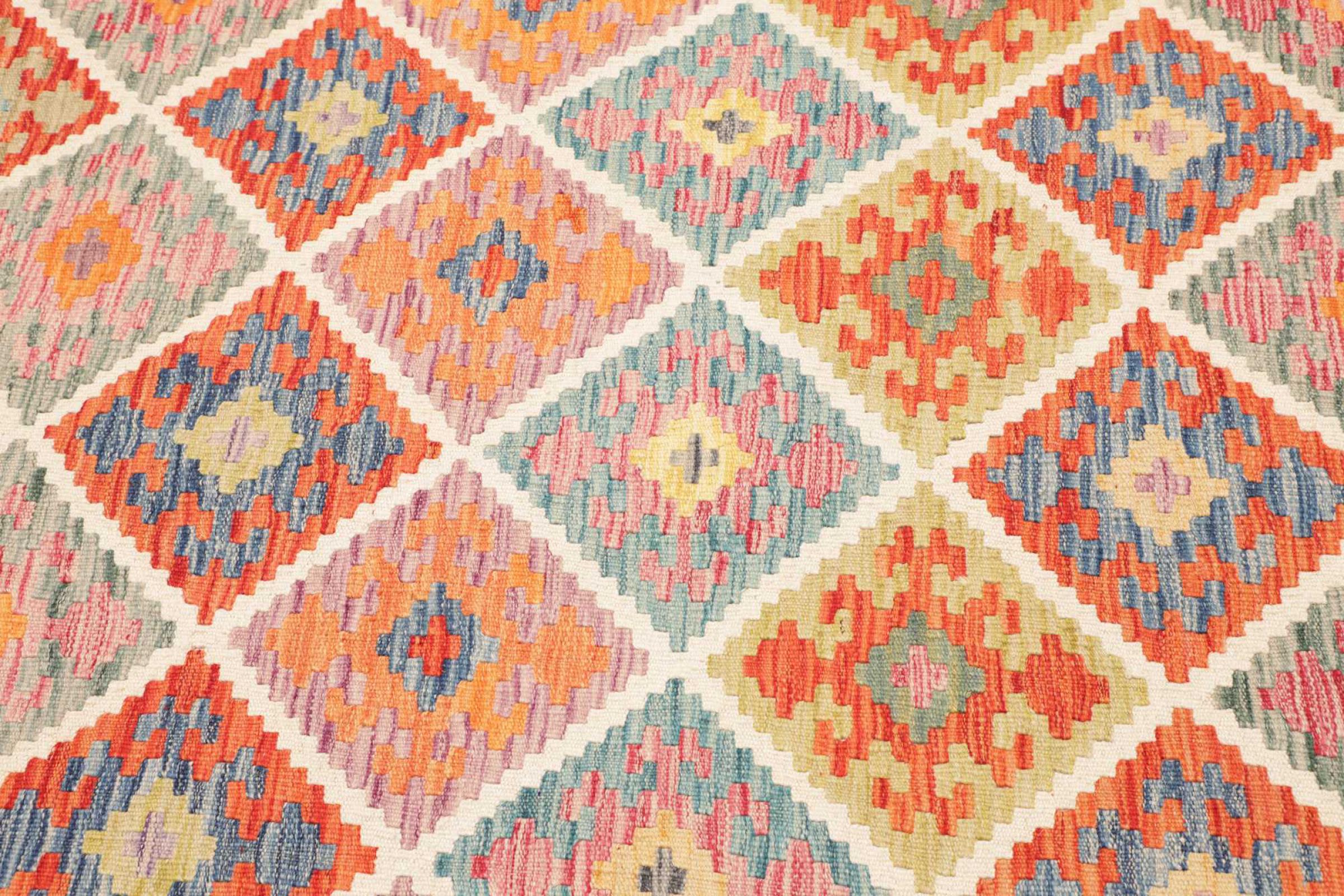 Ces tapis kilim présentent une différence décisive par rapport aux tapis noués à la main - ils sont tissés à la main. Ainsi, ils n'ont pas un haut velours de laine et sont souvent plus plats et plus rugueux que les tapis de laine à nœuds. Leur fabrication est moins élaborée et ils sont donc généralement beaucoup moins chers. Les tapis kilim sont également beaucoup plus légers et peuvent être posés par devant et par derrière. Les kilims tissés à la main proviennent de l'ancienne Perse et sont maintenant souvent fabriqués en Afghanistan. Ils ont des motifs assez simples et directs, qui sont dus à leur technique de tissage.