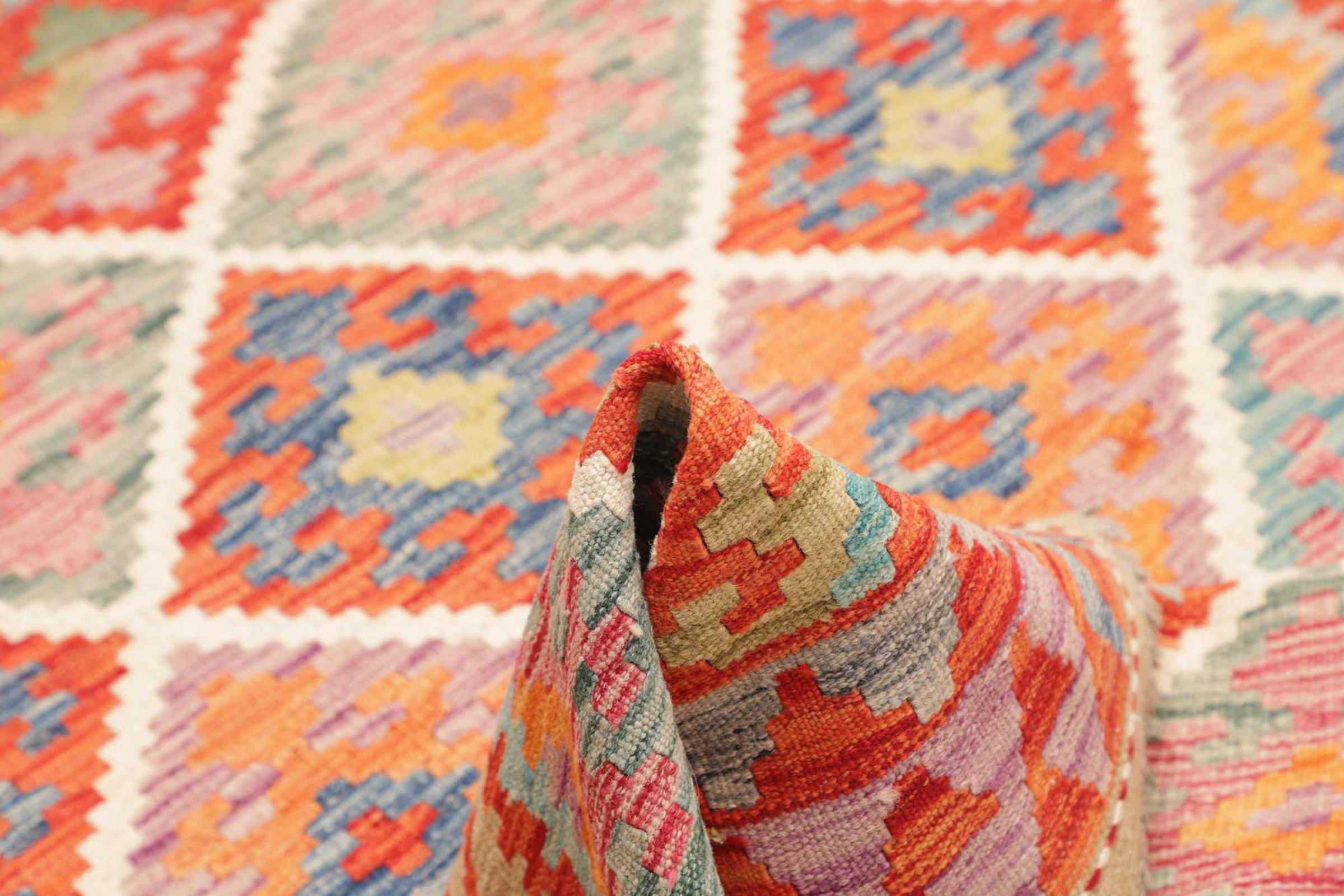 Ce tapis Afghan Kilim tissé main est une merveille, grâce à ses couleurs et à ses motifs caractéristiques. Il a été fabriqué en Afghanistan avec de la laine, et a bien sûr été fait à la main. Il est robuste et durable. Il est un véritable bénéfice pour votre maison.
