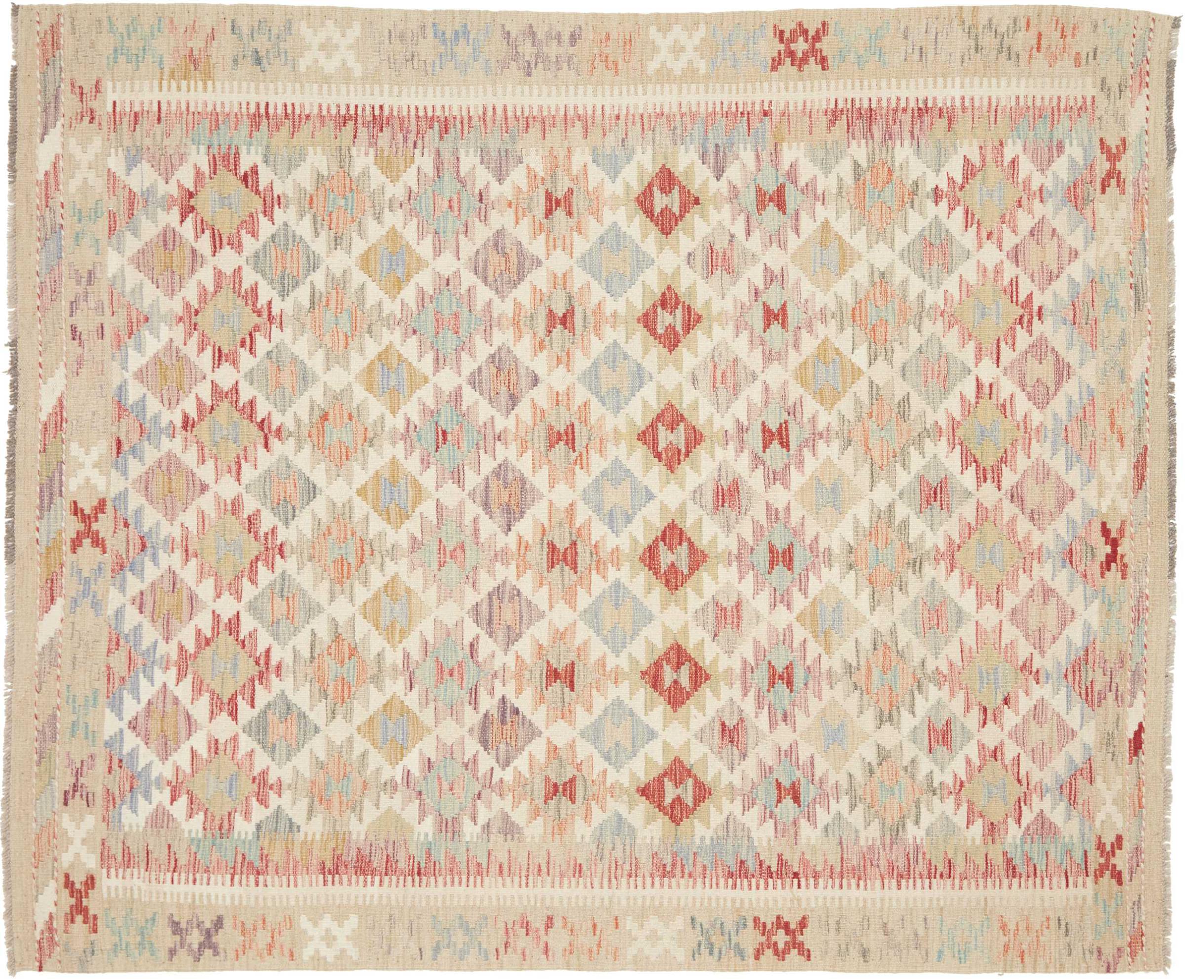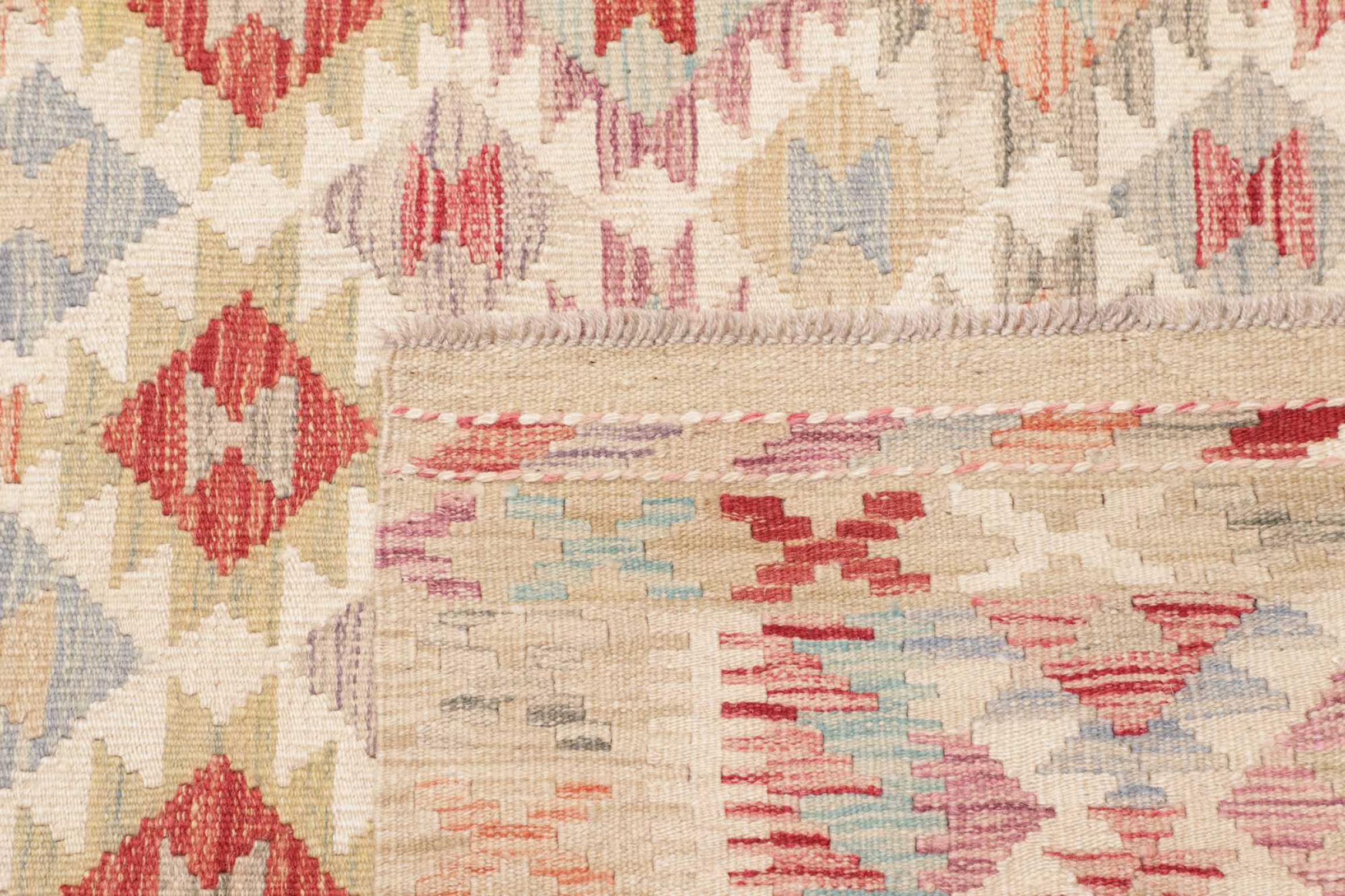 Ce tapis Afghan Kilim tissé main est une merveille, grâce à ses couleurs et à ses motifs caractéristiques. Il a été fabriqué en Afghanistan avec de la laine, et a bien sûr été fait à la main. Il est robuste et durable. Il est un véritable bénéfice pour votre maison.