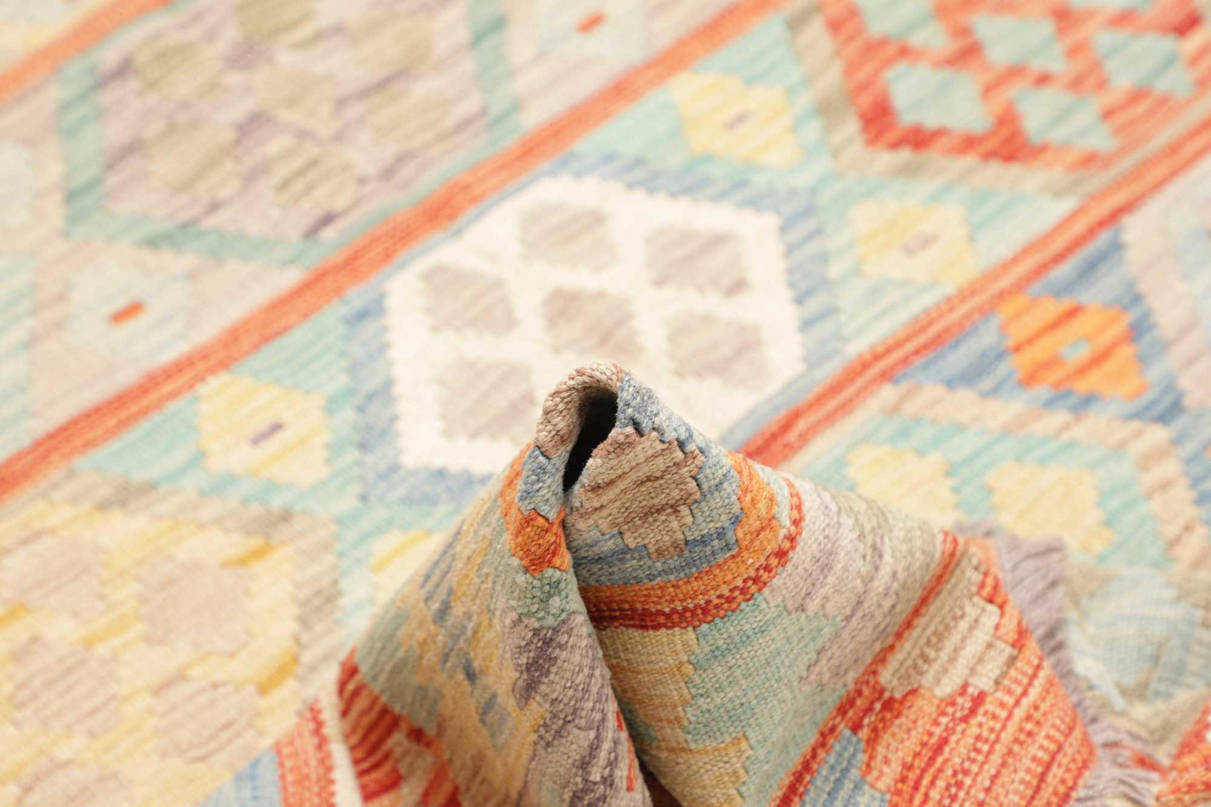 Ce tapis Afghan Kilim tissé main est une merveille, grâce à ses couleurs et à ses motifs caractéristiques. Il a été fabriqué en Afghanistan avec de la laine, et a bien sûr été fait à la main. Il est robuste et durable. Il est un véritable bénéfice pour votre maison.