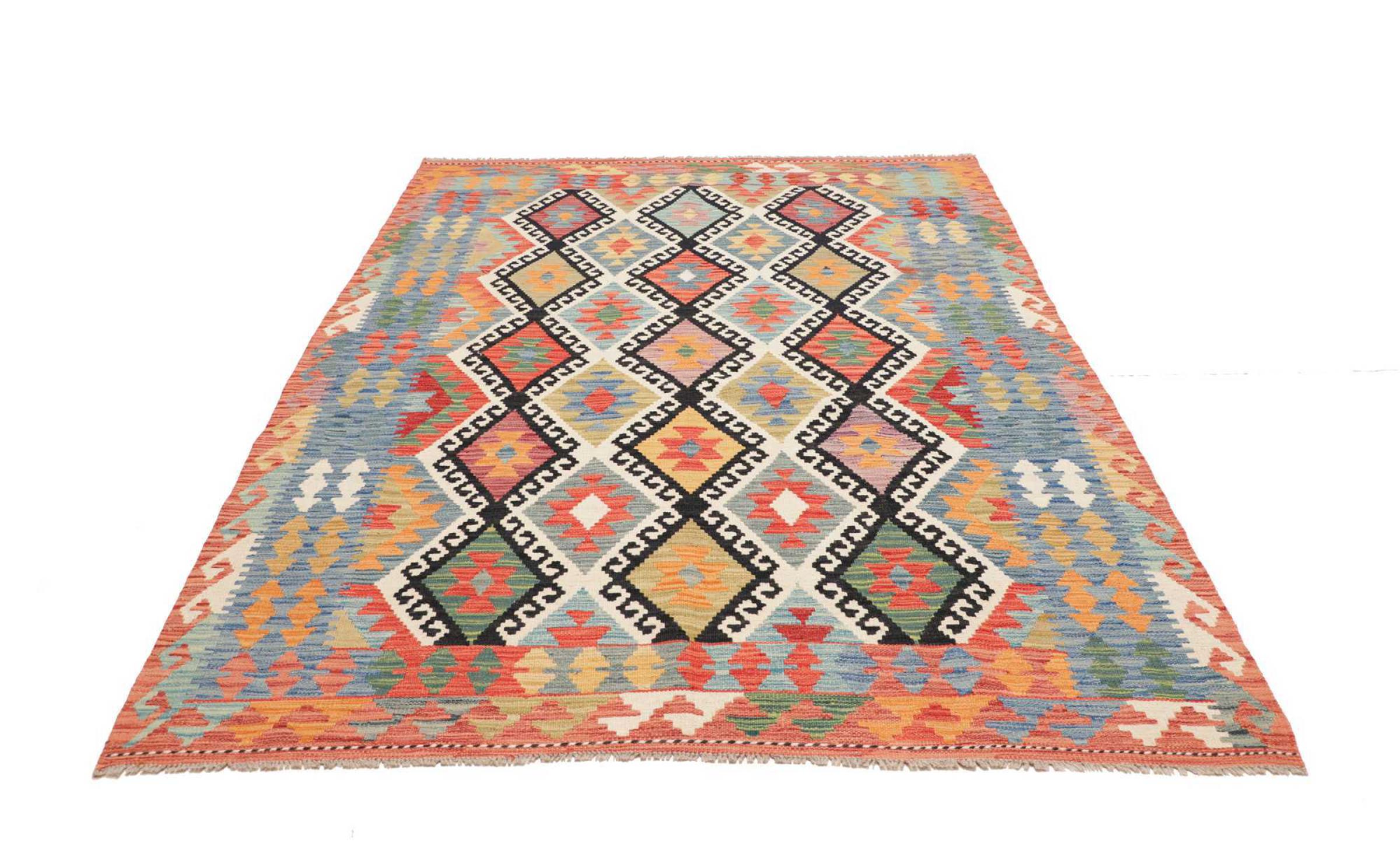 Ces tapis kilim présentent une différence décisive par rapport aux tapis noués à la main - ils sont tissés à la main. Ainsi, ils n'ont pas un haut velours de laine et sont souvent plus plats et plus rugueux que les tapis de laine à nœuds. Leur fabrication est moins élaborée et ils sont donc généralement beaucoup moins chers. Les tapis kilim sont également beaucoup plus légers et peuvent être posés par devant et par derrière. Les kilims tissés à la main proviennent de l'ancienne Perse et sont maintenant souvent fabriqués en Afghanistan. Ils ont des motifs assez simples et directs, qui sont dus à leur technique de tissage.
