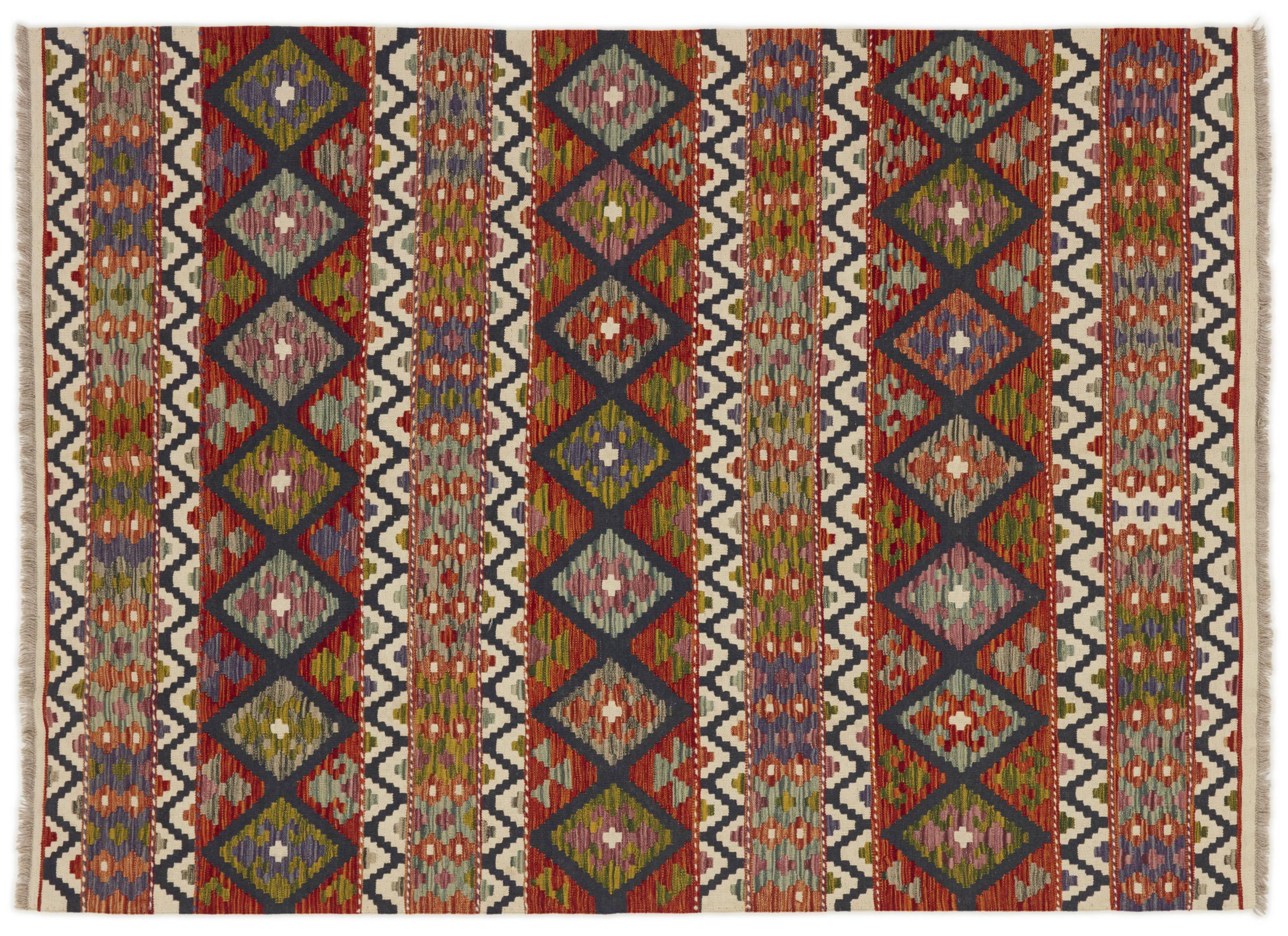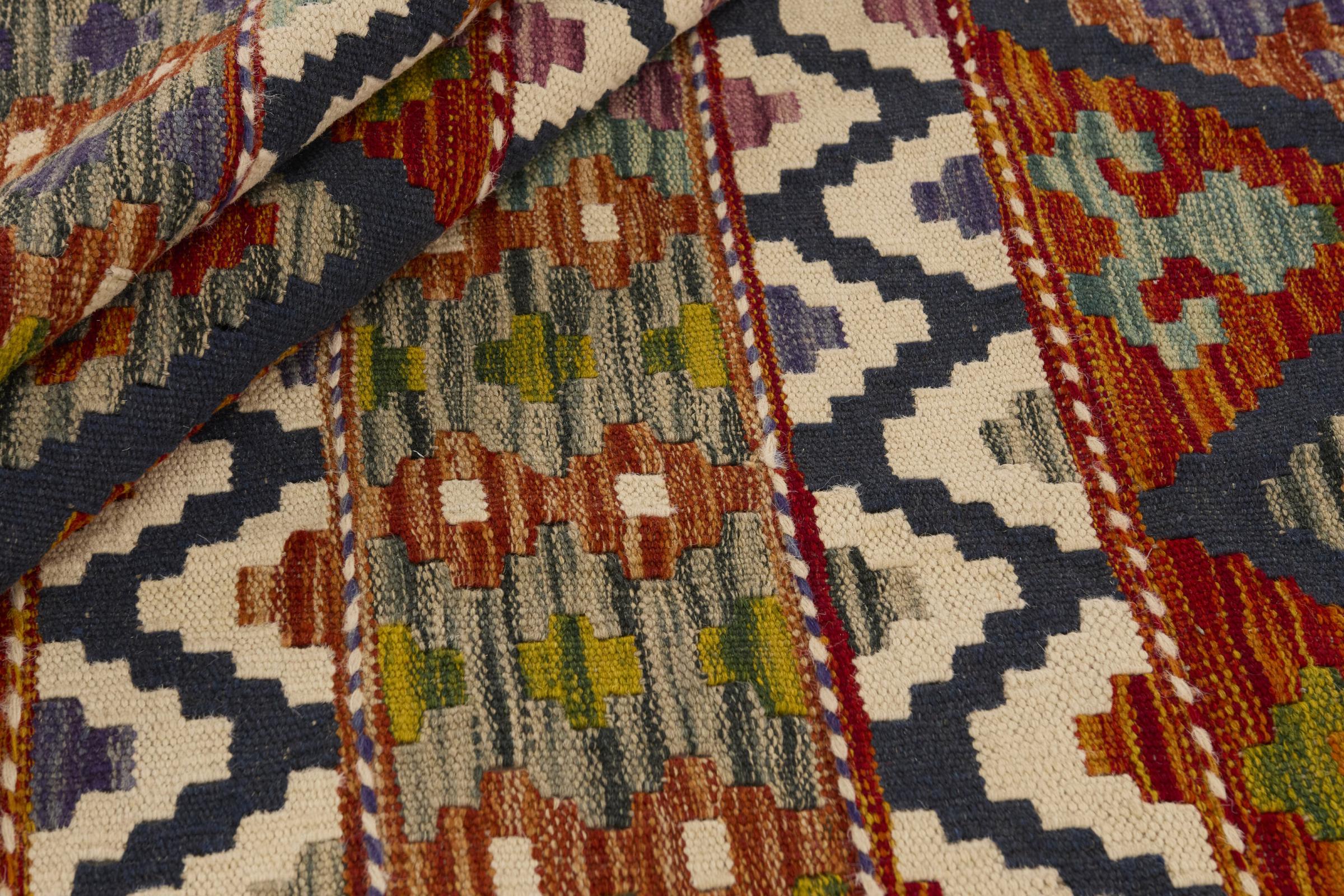 Ce tapis Afghan Kilim tissé main est une merveille, grâce à ses couleurs et à ses motifs caractéristiques. Il a été fabriqué en Afghanistan avec de la laine, et a bien sûr été fait à la main. Il est robuste et durable. Il est un véritable bénéfice pour votre maison.