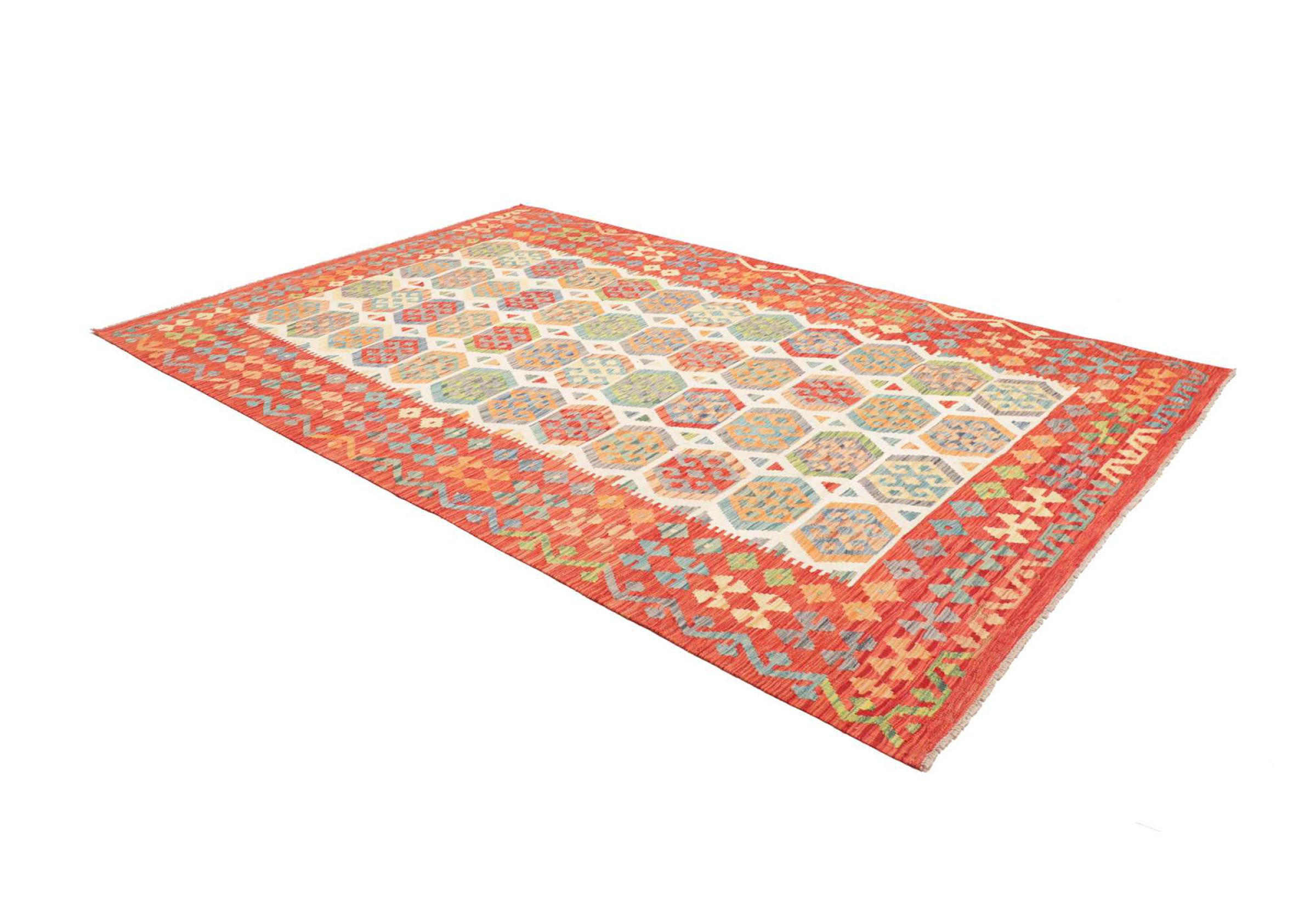 Ces tapis kilim présentent une différence décisive par rapport aux tapis noués à la main - ils sont tissés à la main. Ainsi, ils n'ont pas un haut velours de laine et sont souvent plus plats et plus rugueux que les tapis de laine à nœuds. Leur fabrication est moins élaborée et ils sont donc généralement beaucoup moins chers. Les tapis kilim sont également beaucoup plus légers et peuvent être posés par devant et par derrière. Les kilims tissés à la main proviennent de l'ancienne Perse et sont maintenant souvent fabriqués en Afghanistan. Ils ont des motifs assez simples et directs, qui sont dus à leur technique de tissage.