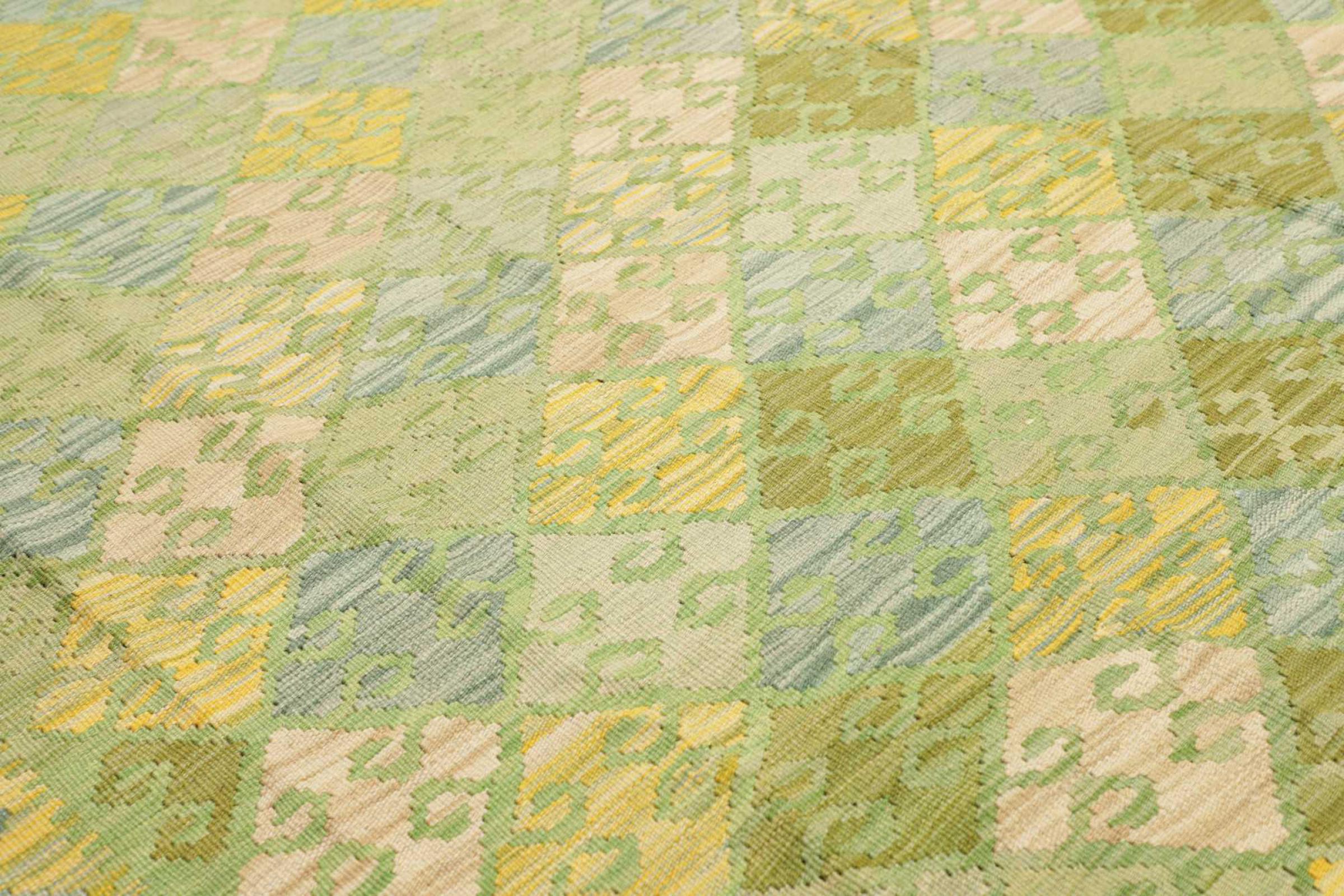 Ce tapis a été fabriqué à la main sur un métier à tisser comme un tissage plat. Le terme 'Flatweave' est utilisé pour décrire les tapis qui n'ont pas de poils. Comme leur nom l'indique, ces tapis sont tissés et non pas noués. Il en résulte un tapis plat avec une surface structurée. Les tissages plats ne sont pas aussi doux et généralement plus fins que les tapis à nœuds. En même temps, ils sont beaucoup moins complexes à fabriquer et peuvent généralement être disposés des deux côtés (avant et arrière). Leurs motifs sont généralement géométriques, ce qui est déterminé par le tissu.