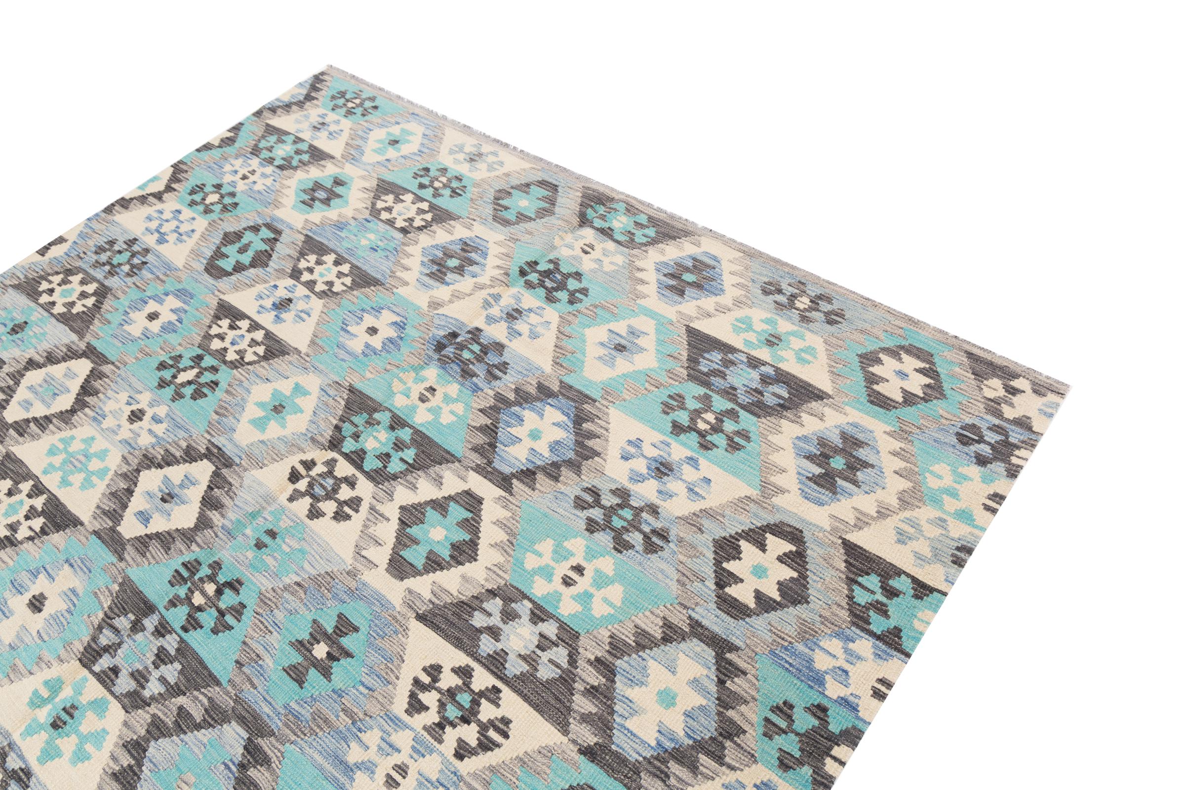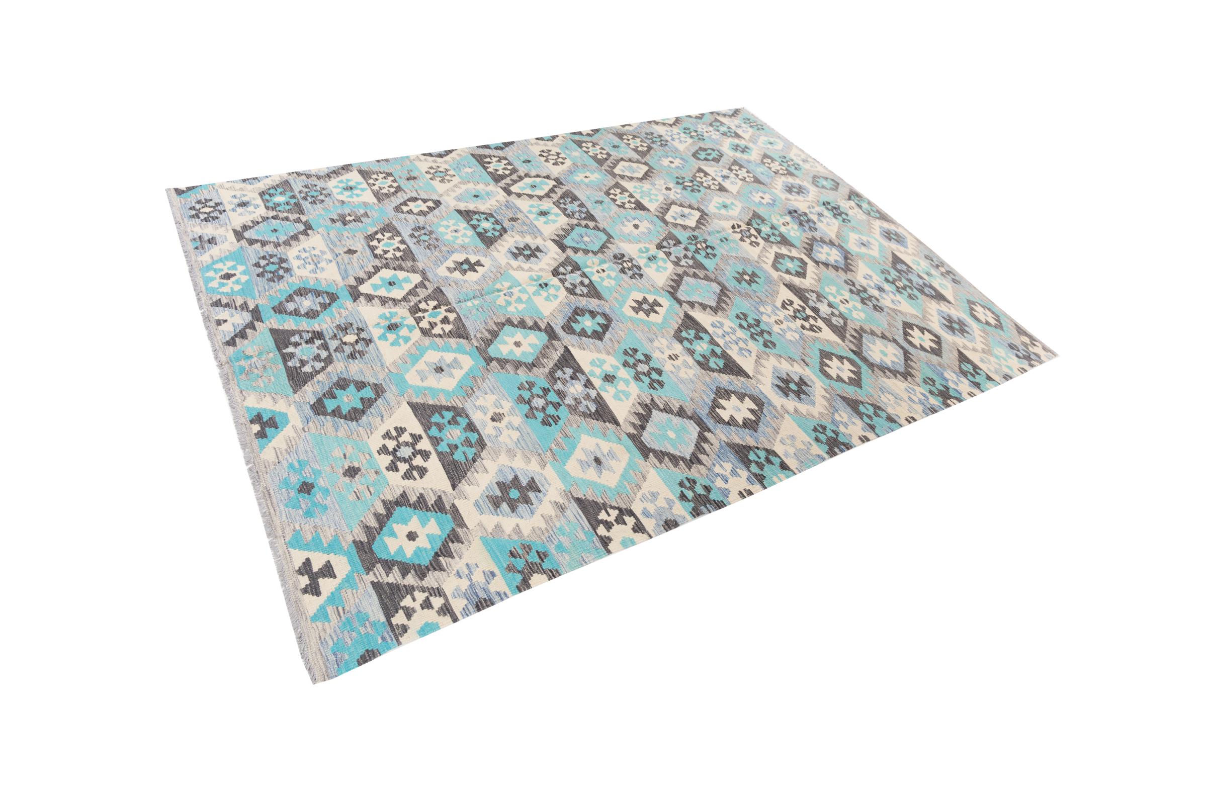 Ce tapis kilim est très spécial car non seulement il est tissé à la main, mais sa laine est également filée à la main. La collection Kilim Heritage offre un design très moderne dans des couleurs pastel et en combinaison avec l'artisanat le plus traditionnel de l'Orient. Grande valeur et totalement abordable. Vous ne trouverez plus une pièce unique comme celle-ci.