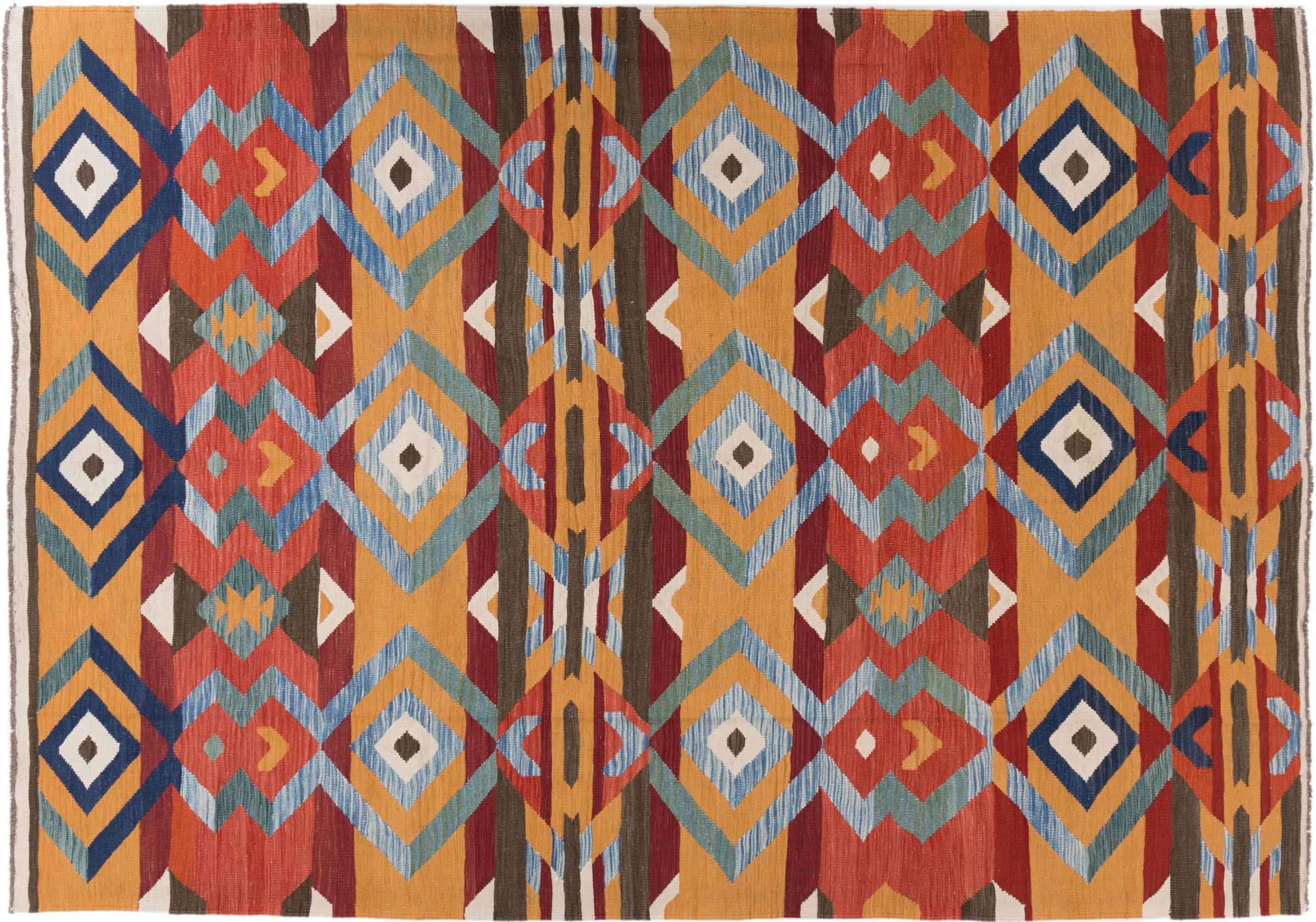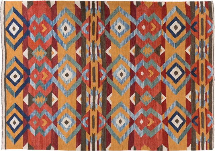 Réf. Article: 2941160048271 Taille: 307x220 cm Épaisseur: ap. 3 mm Fabrication: Tissé à la main Velours: Laine filée à la main Chaîne: Laine de mouton Origine: Afghanistan Âge: Nouveau Poids: ap. 10 kg Également connu sous Kilim, Qilim, Chilim, Afgan, Afghán Nombre en stock: Unique - Seulement 1 en stock