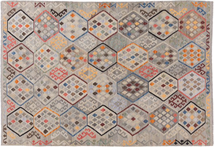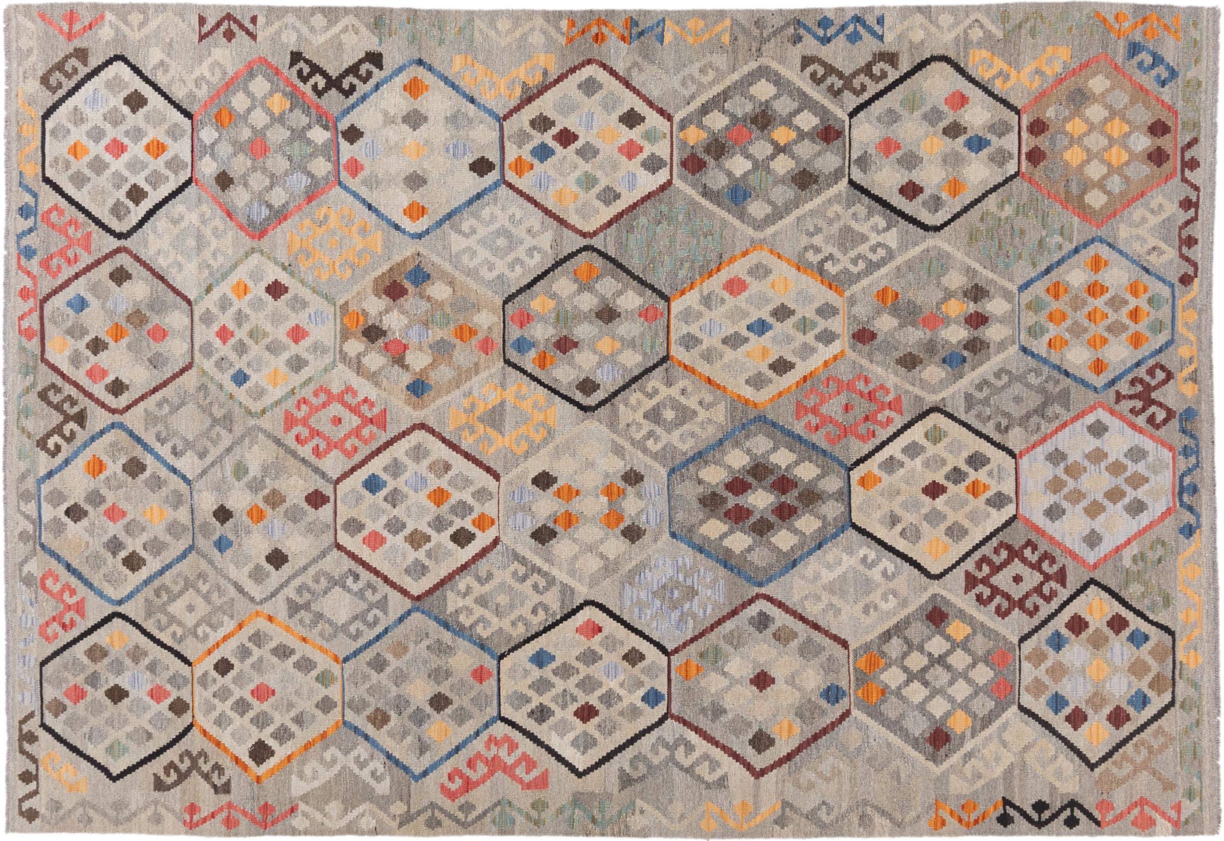 Ce tapis kilim est très spécial car non seulement il est tissé à la main, mais sa laine est également filée à la main. La collection Kilim Heritage offre un design très moderne dans des couleurs pastel et en combinaison avec l'artisanat le plus traditionnel de l'Orient. Grande valeur et totalement abordable. Vous ne trouverez plus une pièce unique comme celle-ci.