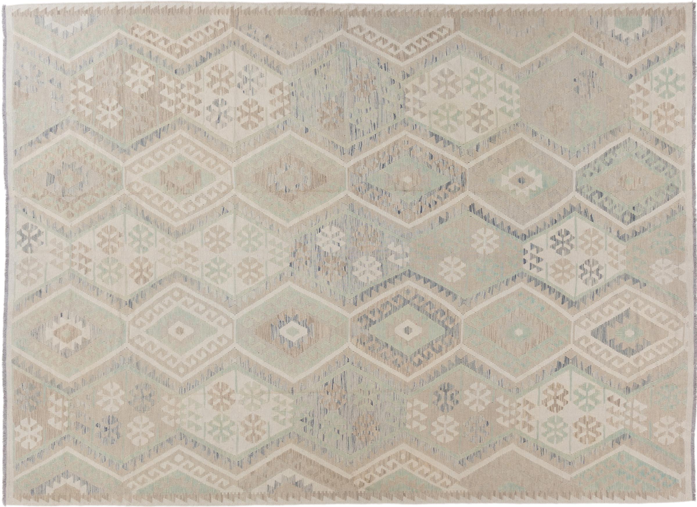 Ce tapis kilim est très spécial car non seulement il est tissé à la main, mais sa laine est également filée à la main. La collection Kilim Heritage offre un design très moderne dans des couleurs pastel et en combinaison avec l'artisanat le plus traditionnel de l'Orient. Grande valeur et totalement abordable. Vous ne trouverez plus une pièce unique comme celle-ci.