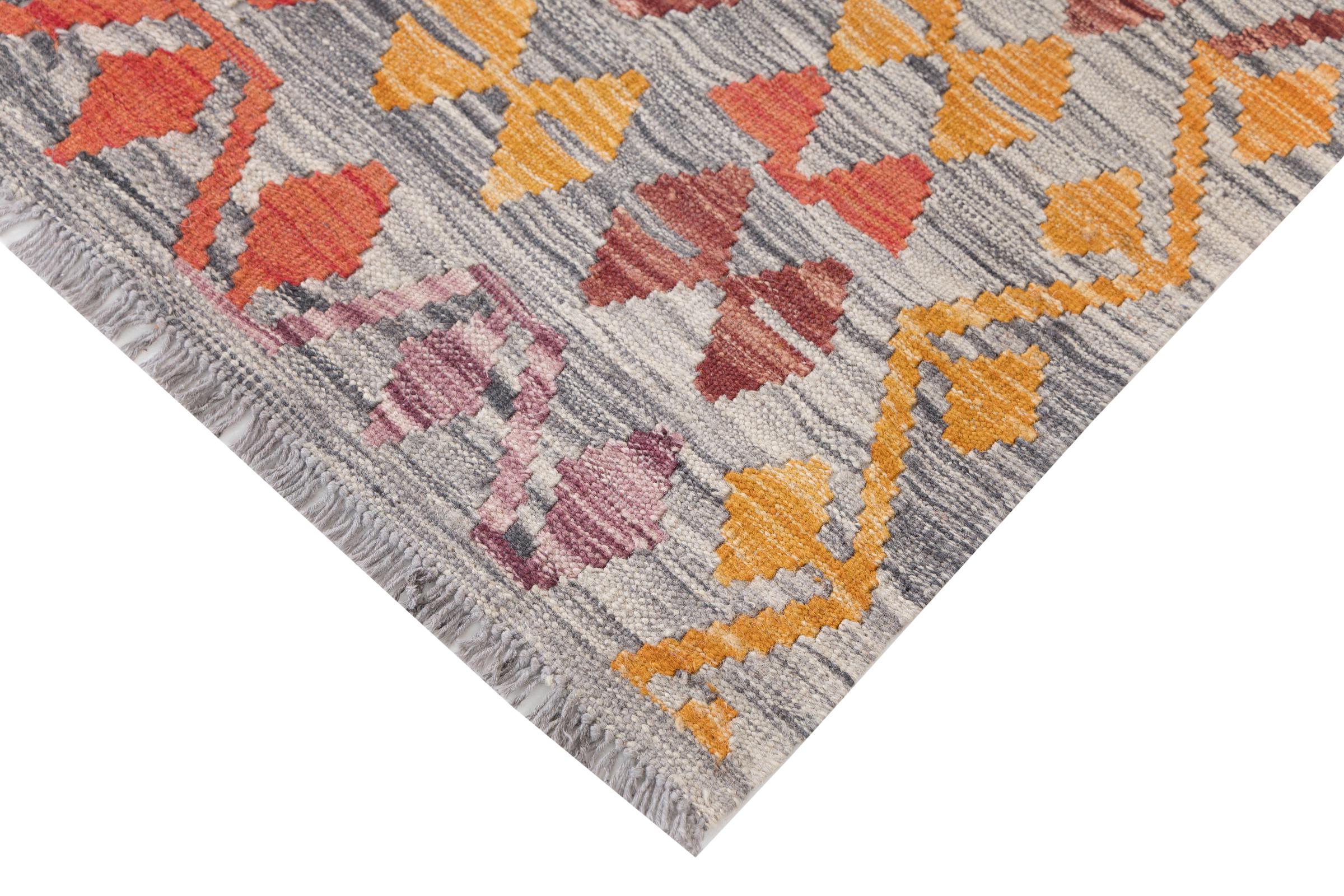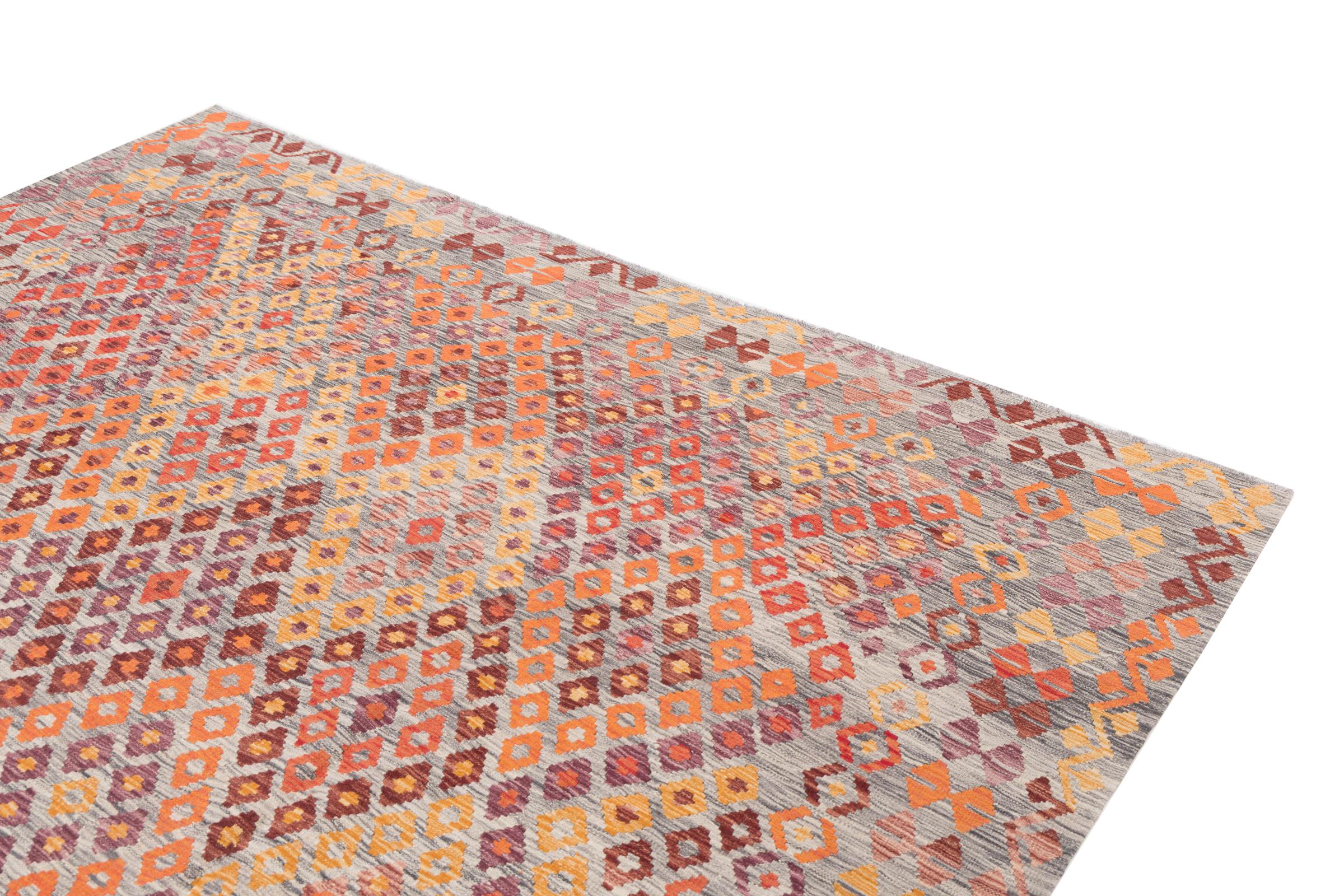 Ce tapis kilim est très spécial car non seulement il est tissé à la main, mais sa laine est également filée à la main. La collection Kilim Heritage offre un design très moderne dans des couleurs pastel et en combinaison avec l'artisanat le plus traditionnel de l'Orient. Grande valeur et totalement abordable. Vous ne trouverez plus une pièce unique comme celle-ci.