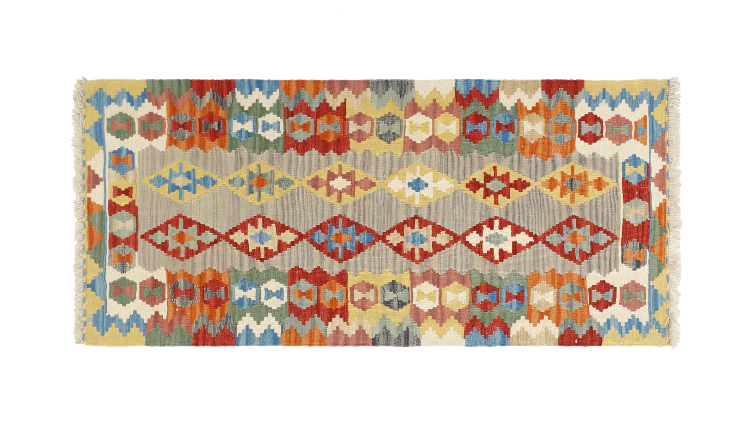 Ces tapis kilim présentent une différence décisive par rapport aux tapis noués à la main - ils sont tissés à la main. Ainsi, ils n'ont pas un haut velours de laine et sont souvent plus plats et plus rugueux que les tapis de laine à nœuds. Leur fabrication est moins élaborée et ils sont donc généralement beaucoup moins chers. Les tapis kilim sont également beaucoup plus légers et peuvent être posés par devant et par derrière. Les kilims tissés à la main proviennent de l'ancienne Perse et sont maintenant souvent fabriqués en Afghanistan. Ils ont des motifs assez simples et directs, qui sont dus à leur technique de tissage.