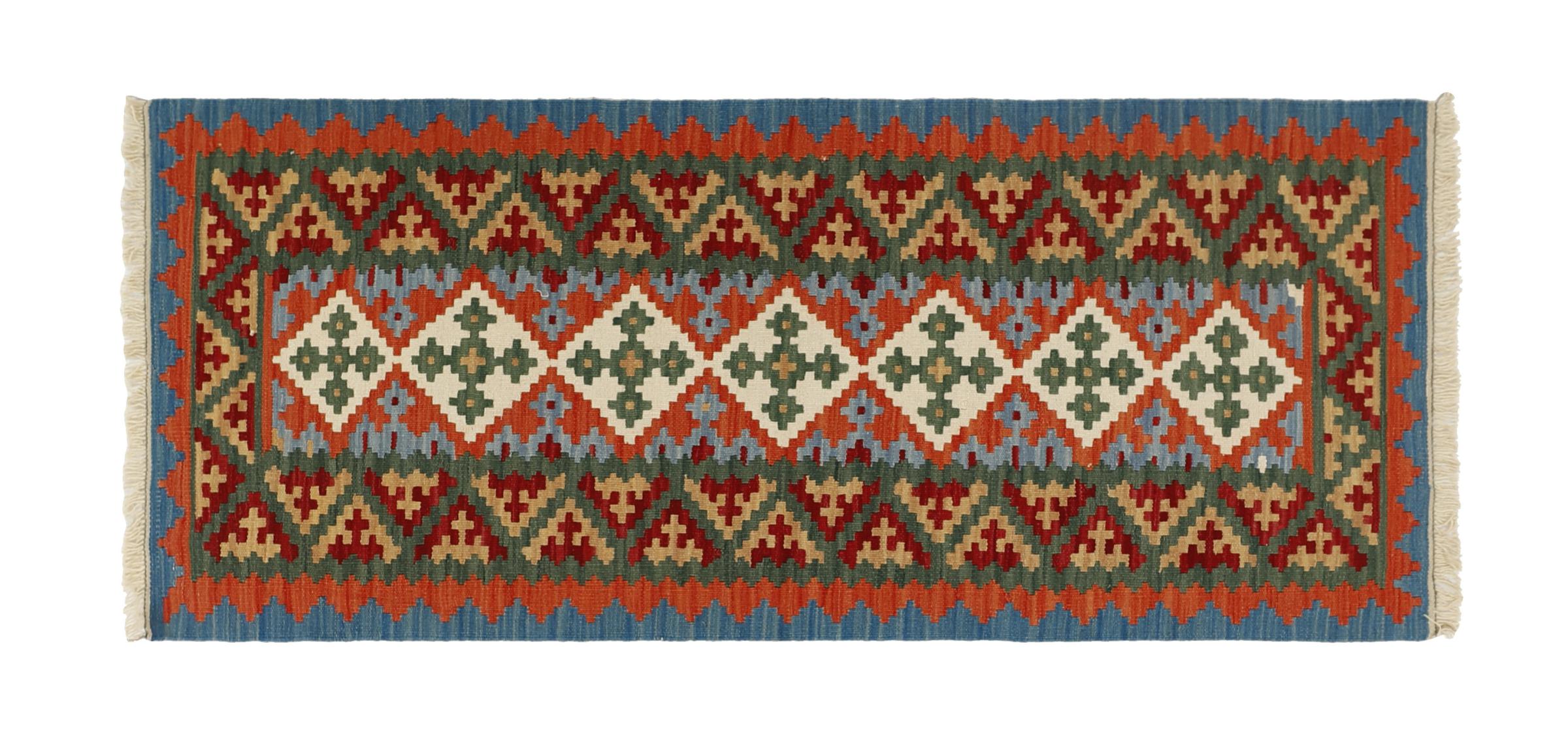 Ces tapis kilim présentent une différence décisive par rapport aux tapis noués à la main - ils sont tissés à la main. Ainsi, ils n'ont pas un haut velours de laine et sont souvent plus plats et plus rugueux que les tapis de laine à nœuds. Leur fabrication est moins élaborée et ils sont donc généralement beaucoup moins chers. Les tapis kilim sont également beaucoup plus légers et peuvent être posés par devant et par derrière. Les kilims tissés à la main proviennent de l'ancienne Perse et sont maintenant souvent fabriqués en Afghanistan. Ils ont des motifs assez simples et directs, qui sont dus à leur technique de tissage.