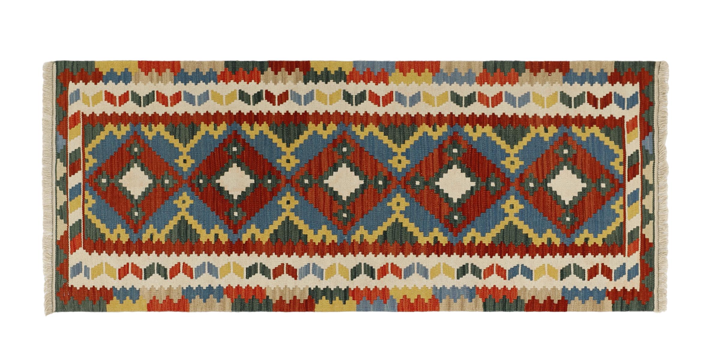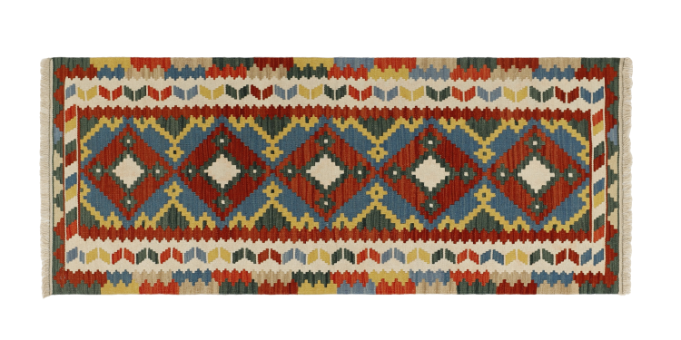 Ces tapis kilim présentent une différence décisive par rapport aux tapis noués à la main - ils sont tissés à la main. Ainsi, ils n'ont pas un haut velours de laine et sont souvent plus plats et plus rugueux que les tapis de laine à nœuds. Leur fabrication est moins élaborée et ils sont donc généralement beaucoup moins chers. Les tapis kilim sont également beaucoup plus légers et peuvent être posés par devant et par derrière. Les kilims tissés à la main proviennent de l'ancienne Perse et sont maintenant souvent fabriqués en Afghanistan. Ils ont des motifs assez simples et directs, qui sont dus à leur technique de tissage.