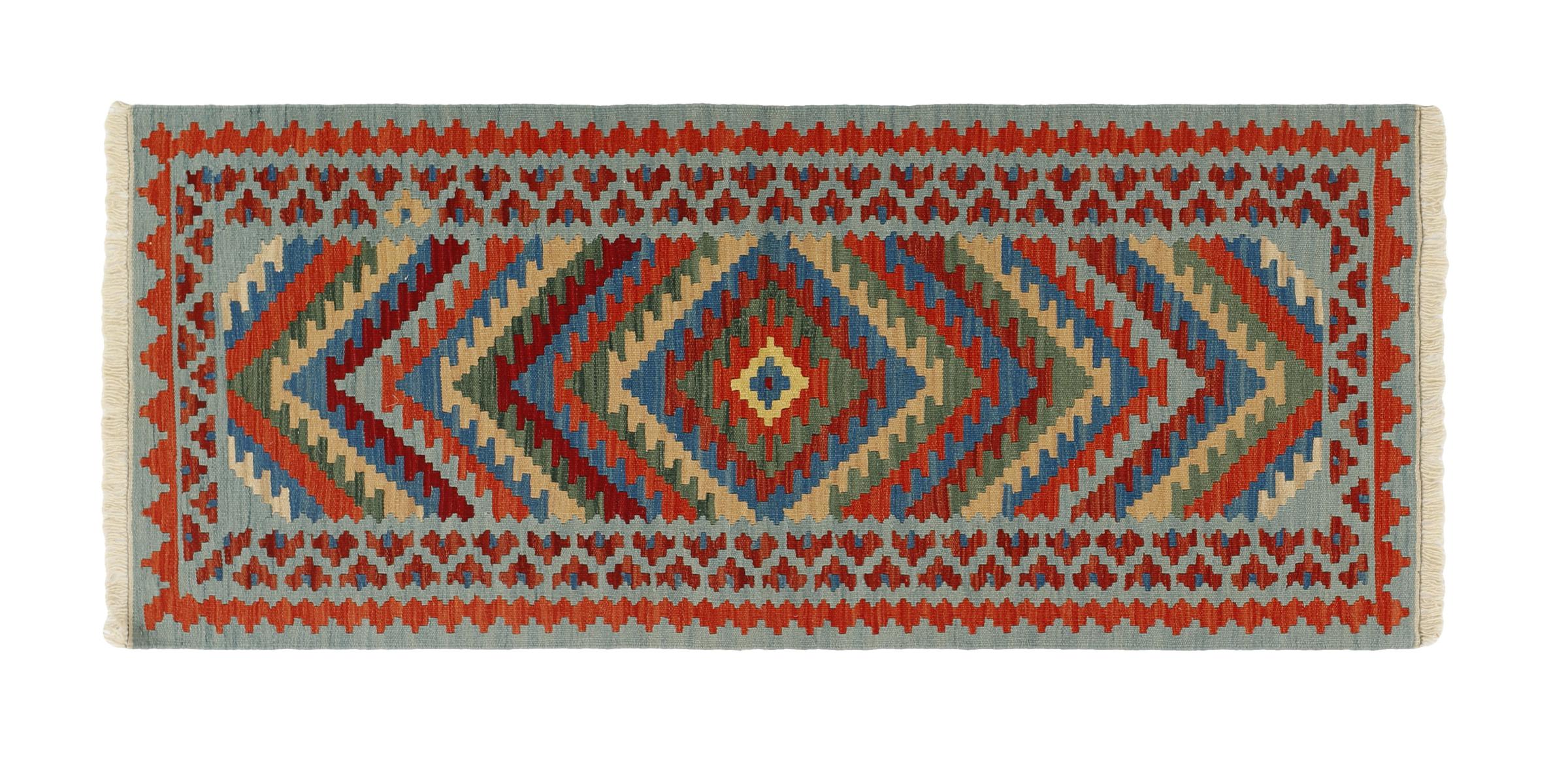Ces tapis kilim présentent une différence décisive par rapport aux tapis noués à la main - ils sont tissés à la main. Ainsi, ils n'ont pas un haut velours de laine et sont souvent plus plats et plus rugueux que les tapis de laine à nœuds. Leur fabrication est moins élaborée et ils sont donc généralement beaucoup moins chers. Les tapis kilim sont également beaucoup plus légers et peuvent être posés par devant et par derrière. Les kilims tissés à la main proviennent de l'ancienne Perse et sont maintenant souvent fabriqués en Afghanistan. Ils ont des motifs assez simples et directs, qui sont dus à leur technique de tissage.