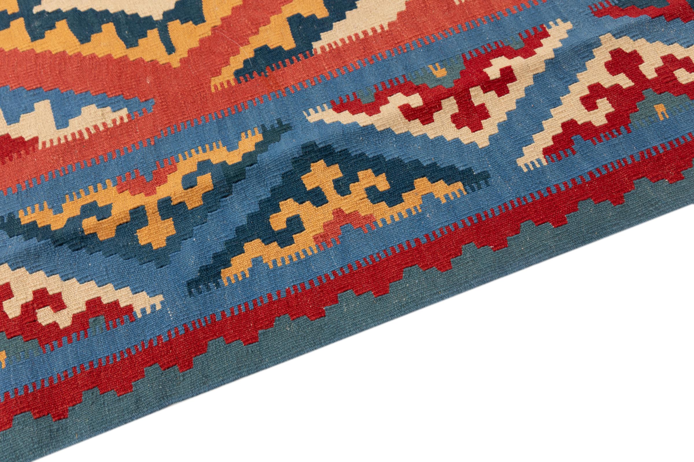 Ce kilim fars tissé à la main combine des motifs et des ornements persans avec la tradition des tissages plats. Une grande et moderne combinaison des concepts les plus populaires de l'Orient. Cela crée un tapis avec un large éventail d'utilisations. Qu'il s'agisse d'un couvre-lit ou d'un tapis devant le canapé, un kilim Fars le permet et se retrouve désormais dans les magazines de décoration d'intérieur les plus connus. Les tapis Kilim Fars sont tissés à la main en Iran et font donc partie des kilims de la plus haute qualité.