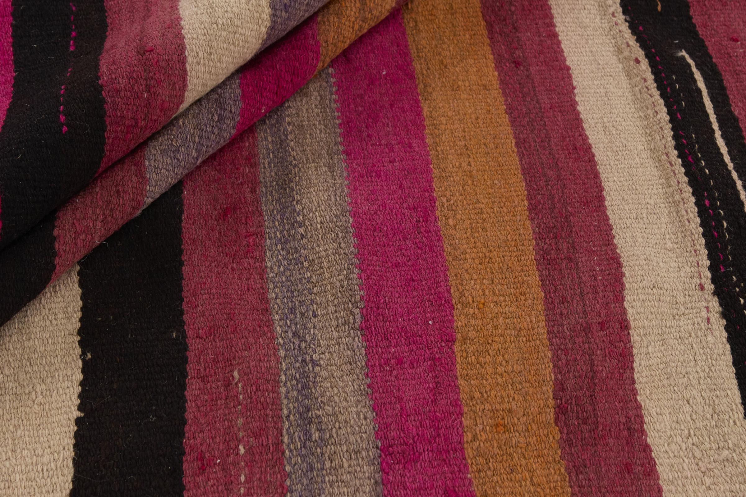 Ce tapis a été fabriqué à la main sur un métier à tisser comme un tissage plat. Le terme 'Flatweave' est utilisé pour décrire les tapis qui n'ont pas de poils. Comme leur nom l'indique, ces tapis sont tissés et non pas noués. Il en résulte un tapis plat avec une surface structurée. Les tissages plats ne sont pas aussi doux et généralement plus fins que les tapis à nœuds. En même temps, ils sont beaucoup moins complexes à fabriquer et peuvent généralement être disposés des deux côtés (avant et arrière). Leurs motifs sont généralement géométriques, ce qui est déterminé par le tissu.