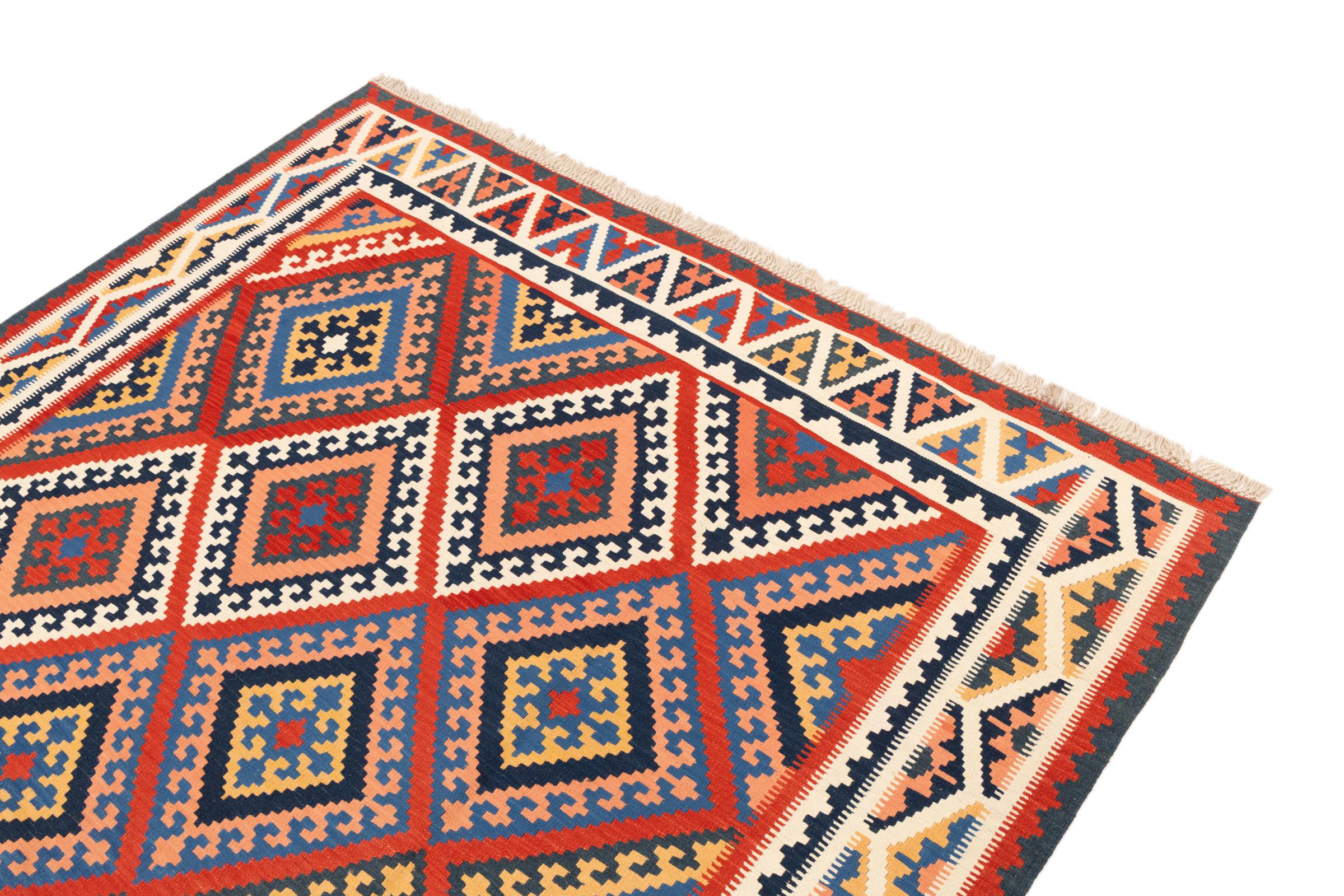 Ce kilim fars tissé à la main combine des motifs et des ornements persans avec la tradition des tissages plats. Une grande et moderne combinaison des concepts les plus populaires de l'Orient. Cela crée un tapis avec un large éventail d'utilisations. Qu'il s'agisse d'un couvre-lit ou d'un tapis devant le canapé, un kilim Fars le permet et se retrouve désormais dans les magazines de décoration d'intérieur les plus connus. Les tapis Kilim Fars sont tissés à la main en Iran et font donc partie des kilims de la plus haute qualité.