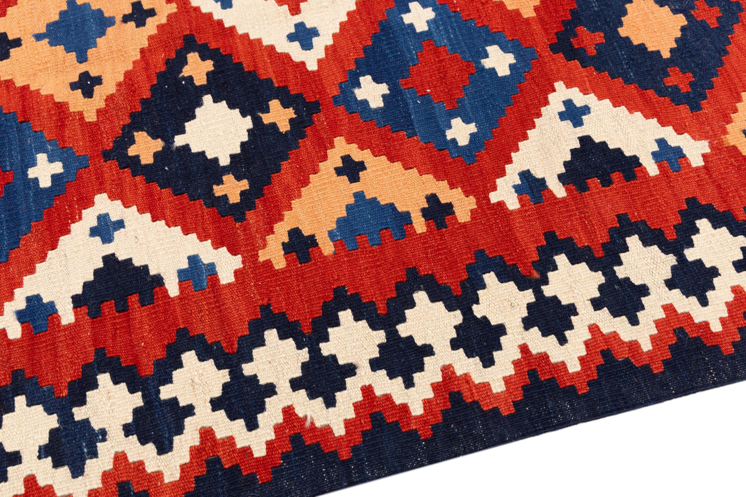Ce kilim fars tissé à la main combine des motifs et des ornements persans avec la tradition des tissages plats. Une grande et moderne combinaison des concepts les plus populaires de l'Orient. Cela crée un tapis avec un large éventail d'utilisations. Qu'il s'agisse d'un couvre-lit ou d'un tapis devant le canapé, un kilim Fars le permet et se retrouve désormais dans les magazines de décoration d'intérieur les plus connus. Les tapis Kilim Fars sont tissés à la main en Iran et font donc partie des kilims de la plus haute qualité.