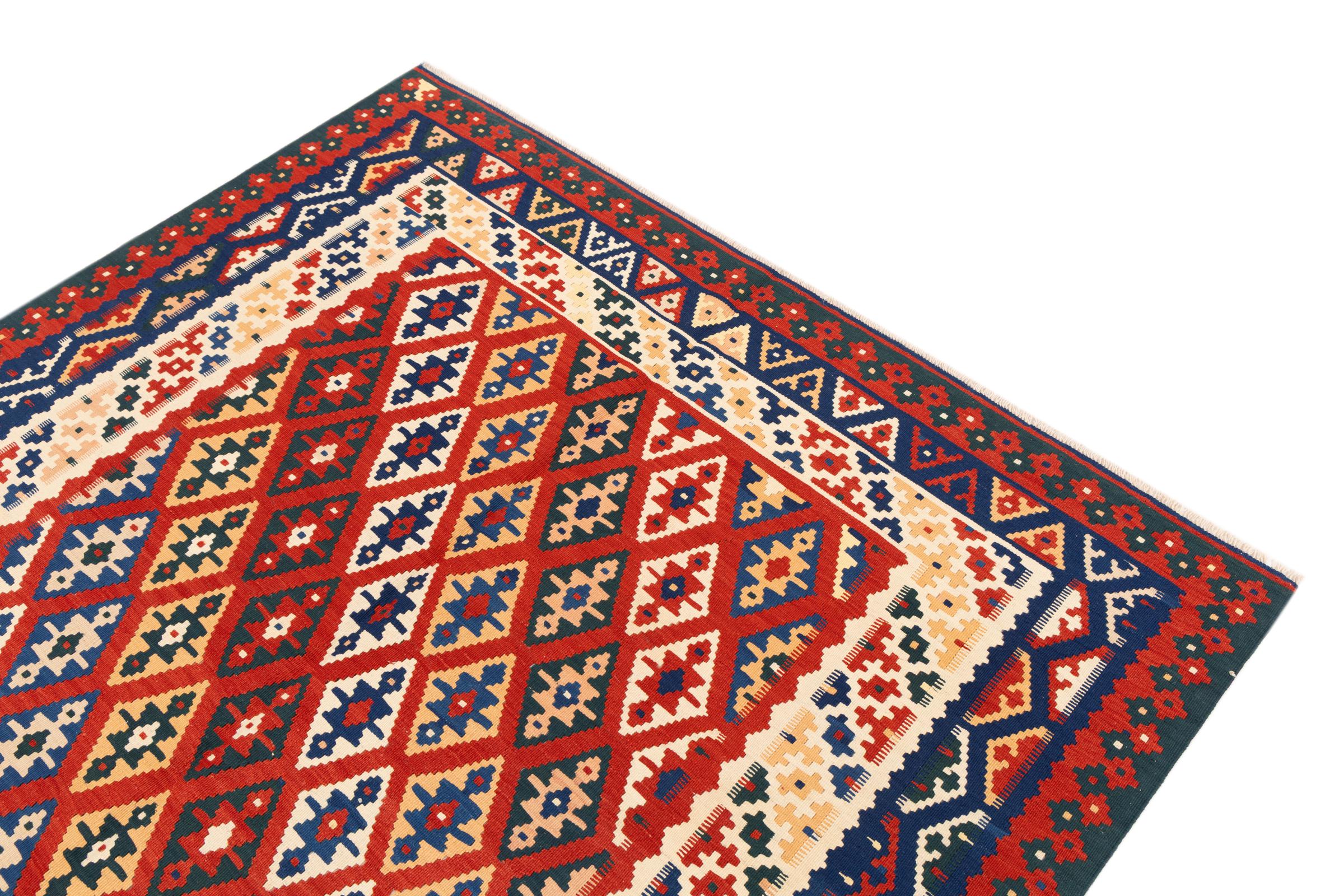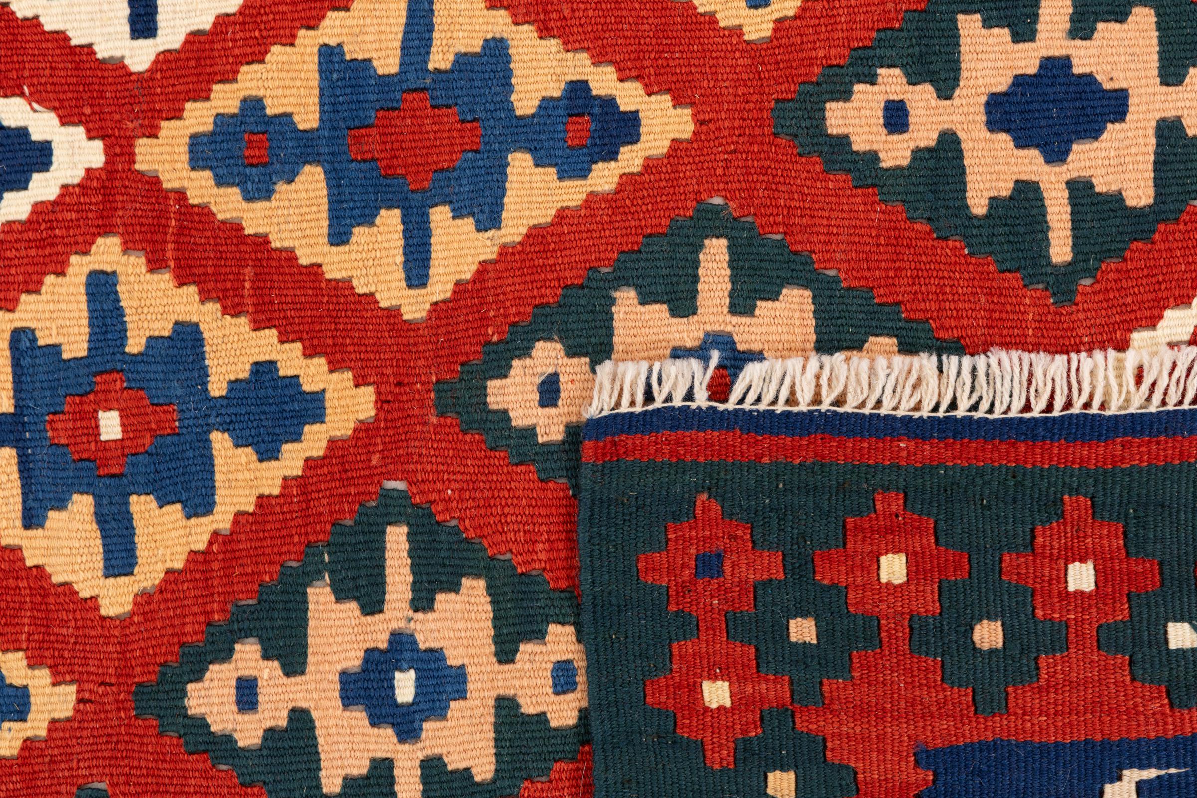 Ce tapis a été fabriqué à la main sur un métier à tisser comme un tissage plat. Le terme 'Flatweave' est utilisé pour décrire les tapis qui n'ont pas de poils. Comme leur nom l'indique, ces tapis sont tissés et non pas noués. Il en résulte un tapis plat avec une surface structurée. Les tissages plats ne sont pas aussi doux et généralement plus fins que les tapis à nœuds. En même temps, ils sont beaucoup moins complexes à fabriquer et peuvent généralement être disposés des deux côtés (avant et arrière). Leurs motifs sont généralement géométriques, ce qui est déterminé par le tissu.