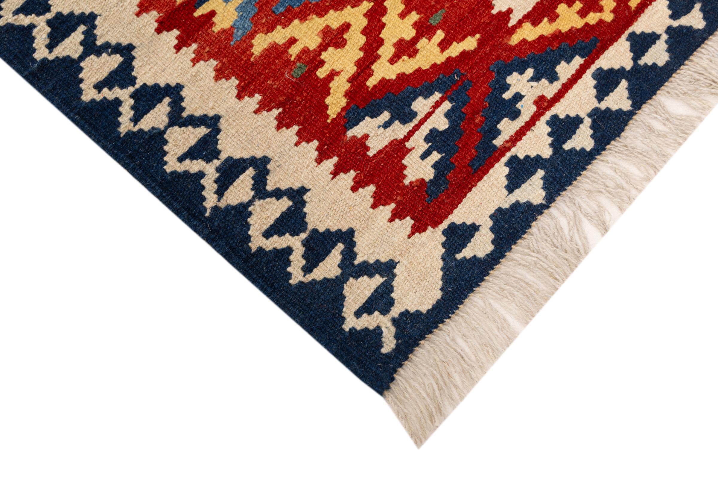 Ce tapis a été fabriqué à la main sur un métier à tisser comme un tissage plat. Le terme 'Flatweave' est utilisé pour décrire les tapis qui n'ont pas de poils. Comme leur nom l'indique, ces tapis sont tissés et non pas noués. Il en résulte un tapis plat avec une surface structurée. Les tissages plats ne sont pas aussi doux et généralement plus fins que les tapis à nœuds. En même temps, ils sont beaucoup moins complexes à fabriquer et peuvent généralement être disposés des deux côtés (avant et arrière). Leurs motifs sont généralement géométriques, ce qui est déterminé par le tissu.