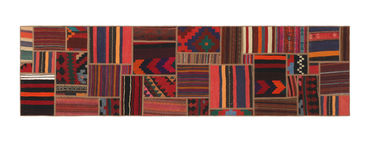 Ce Kilim Patchwork a été fabriqué à la main. La traditionnelle méthode de tissage est la base de ce tapis inhabituel avec son propre design et ses motifs uniques.