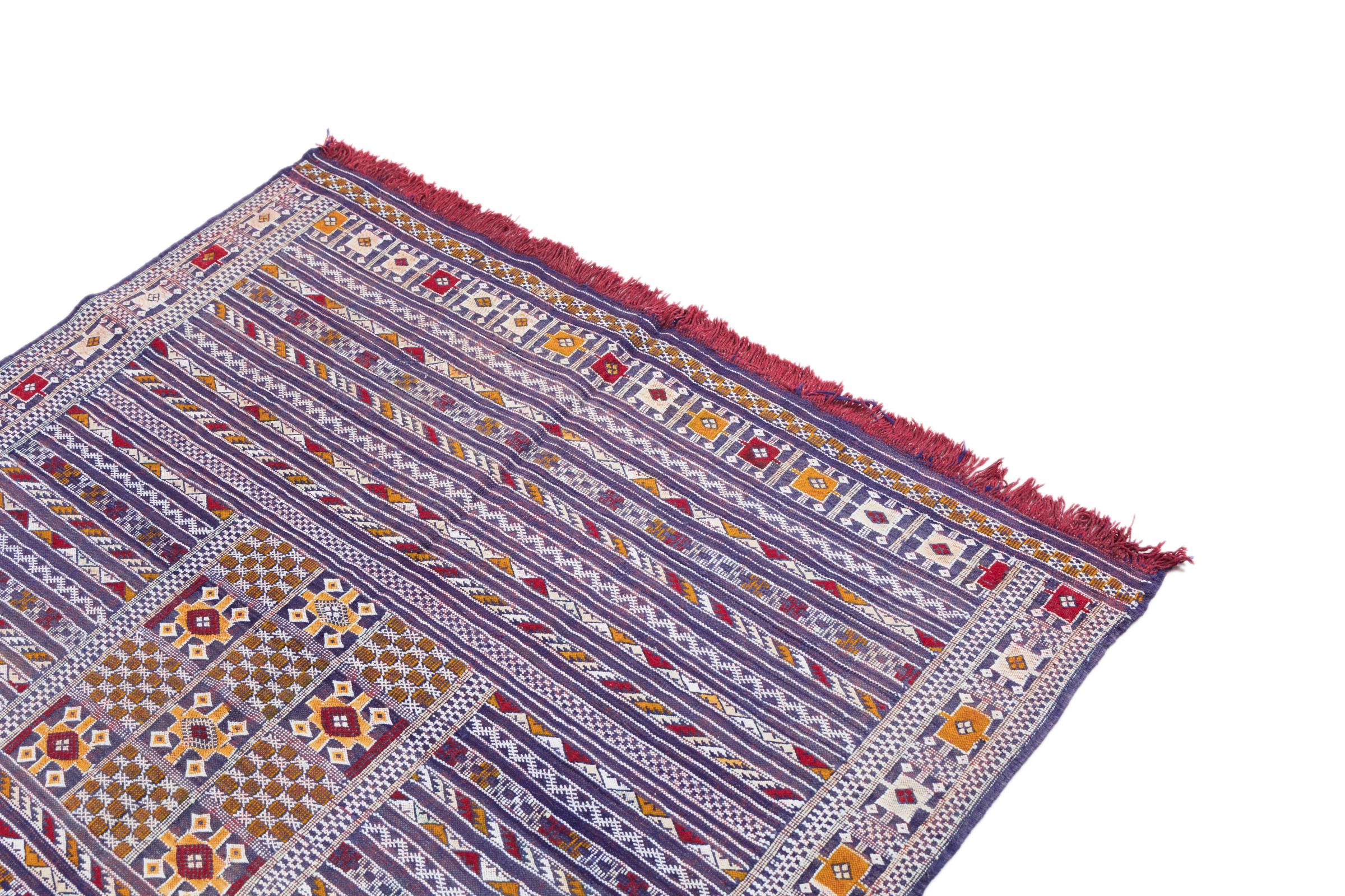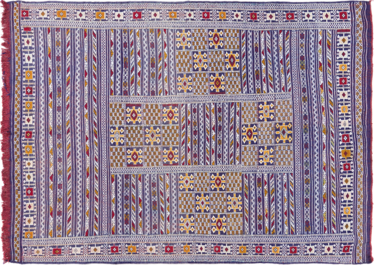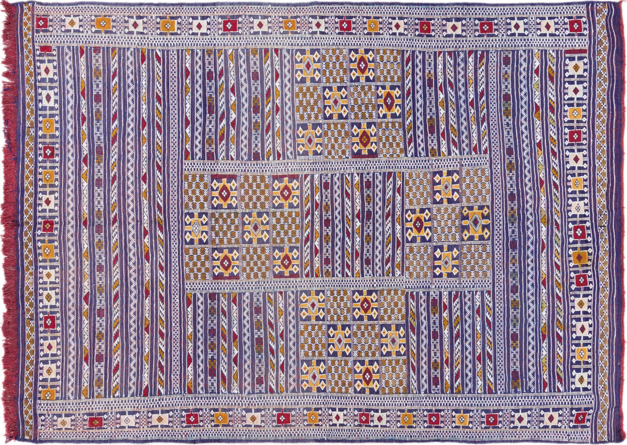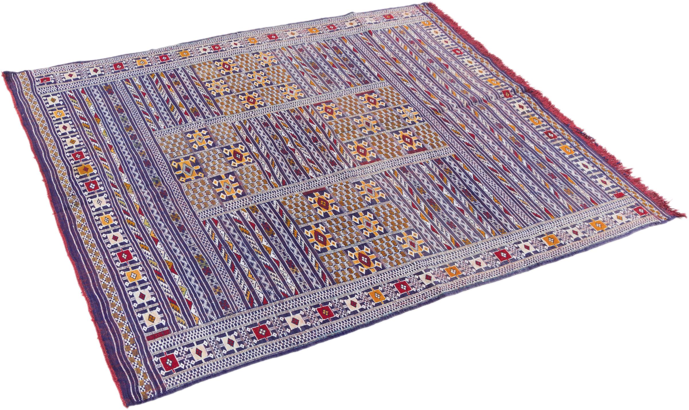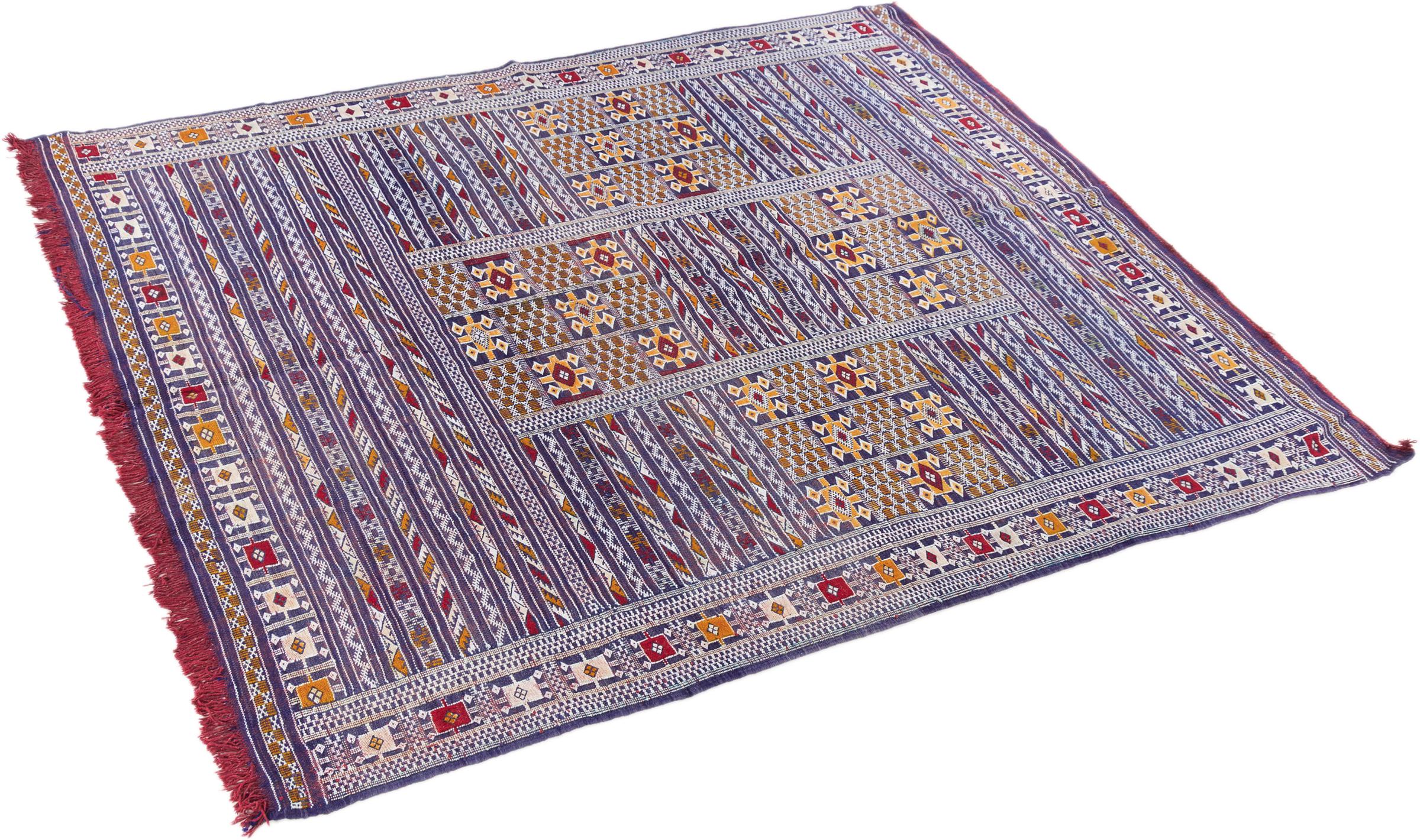 Ces tapis kilim présentent une différence décisive par rapport aux tapis noués à la main - ils sont tissés à la main. Ainsi, ils n'ont pas un haut velours de laine et sont souvent plus plats et plus rugueux que les tapis de laine à nœuds. Leur fabrication est moins élaborée et ils sont donc généralement beaucoup moins chers. Les tapis kilim sont également beaucoup plus légers et peuvent être posés par devant et par derrière. Les kilims tissés à la main proviennent de l'ancienne Perse et sont maintenant souvent fabriqués en Afghanistan. Ils ont des motifs assez simples et directs, qui sont dus à leur technique de tissage.