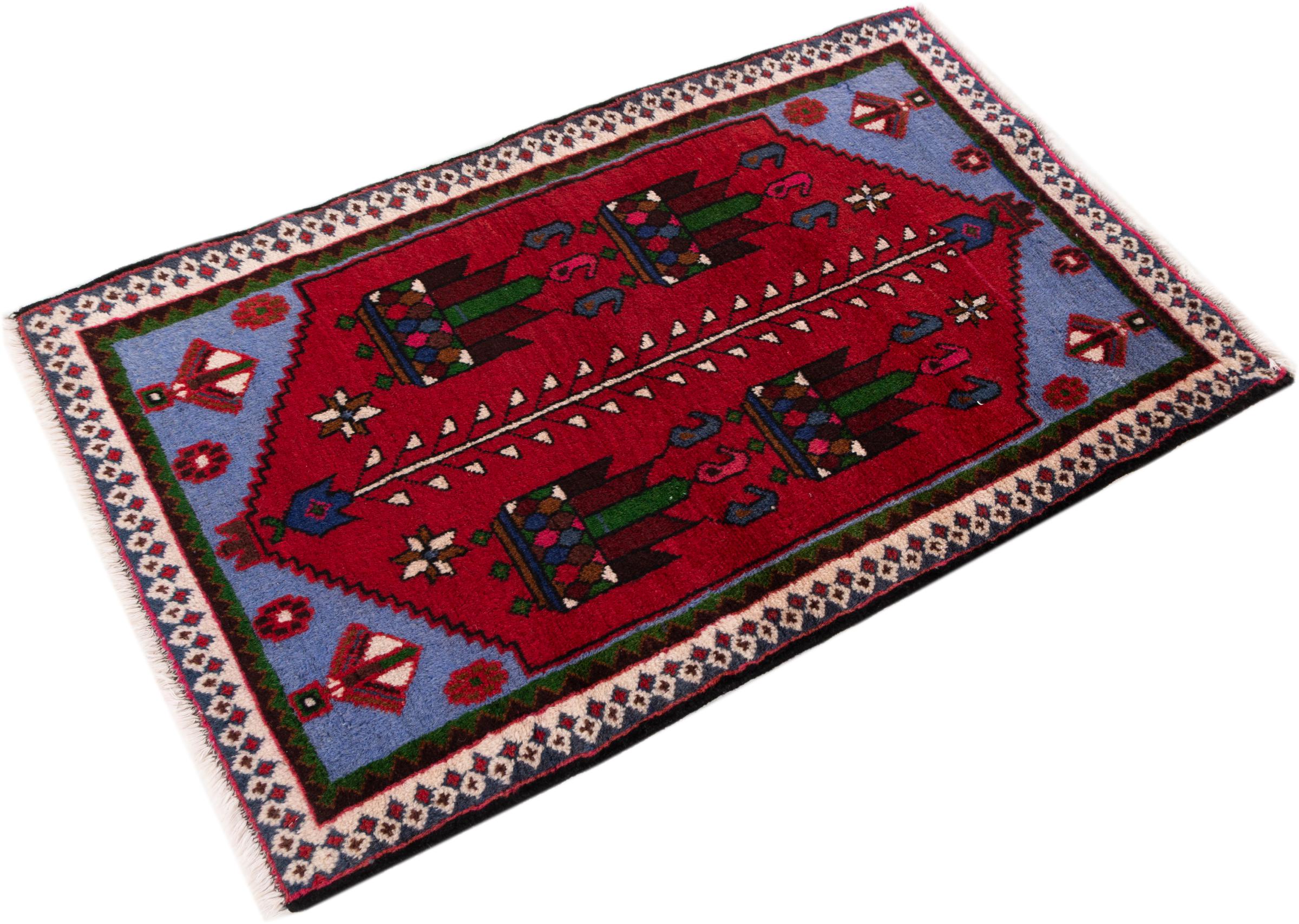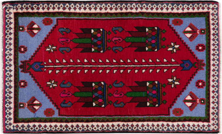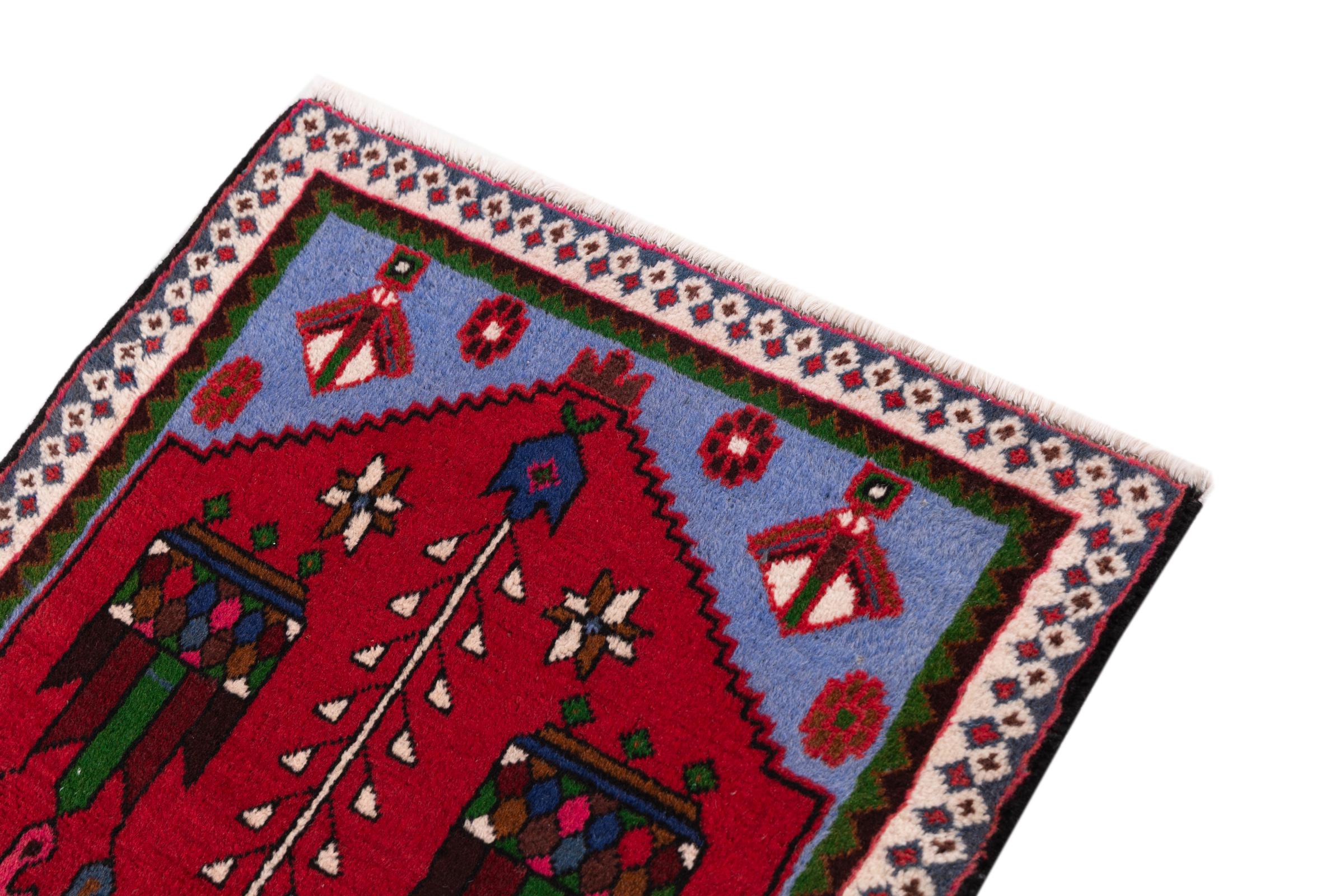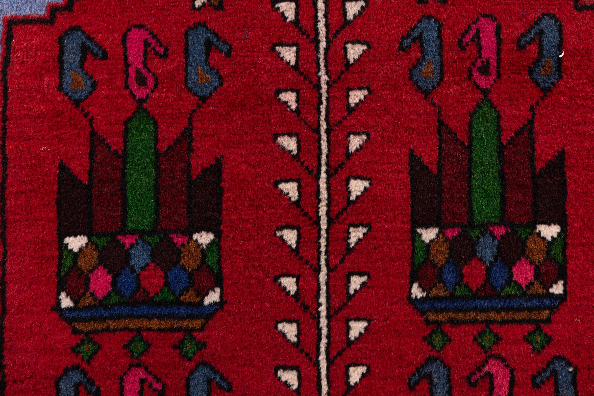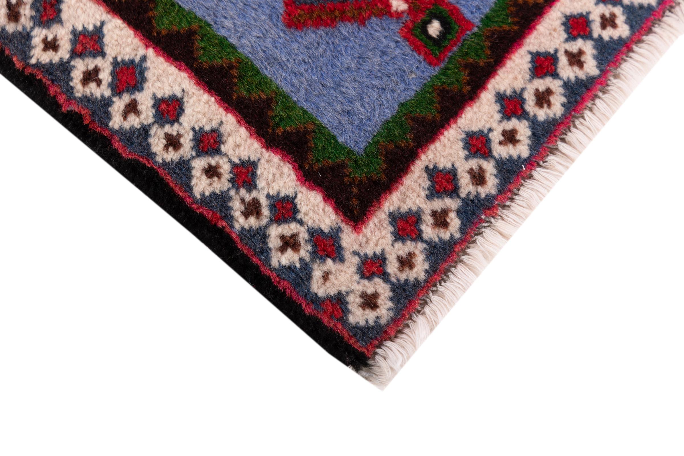 Ce tapis appartient aux tapis de village et de nomade d'Iran, anciennement la Perse. Ce type de tapis est noué à la main dans les petites villes et les villages selon l'ancienne tradition. Même les nomades nouent encore des tapis persans en plein air. Les tapis sont noués sans schéma et entièrement à partir de la tête. Ils se caractérisent par des ornements classiques, qui sont disposés en motifs droits et géométriques. Grâce à leur origine culturelle et traditionnelle, ces tapis ont un caractère unique qui incarne la Perse ancienne.
