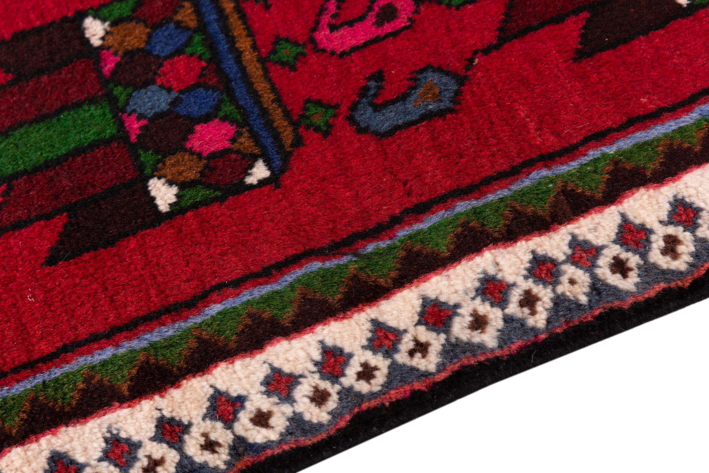 Ce tapis Qashqai attire immédiatement l’attention. Ces couleurs et motifs reflètent la vie des nomades Qashqai d’Iran, qui vivent près de la ville de Shiraz. Laissez une pièce de la culture Iranienne entrer chez vous.