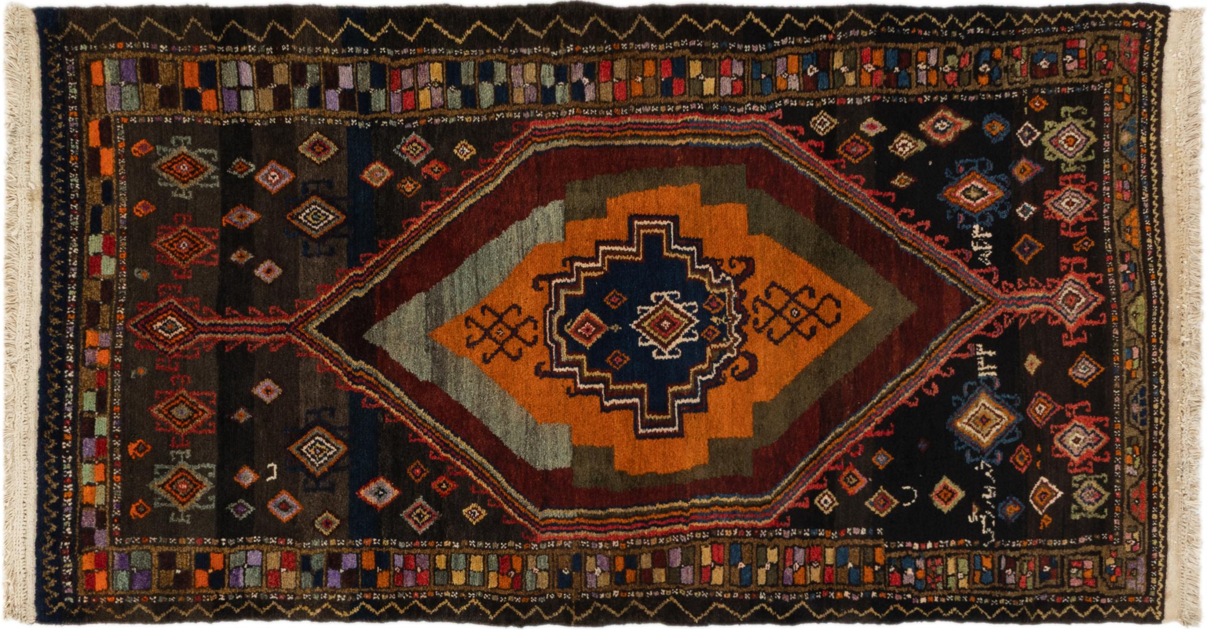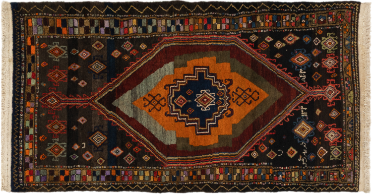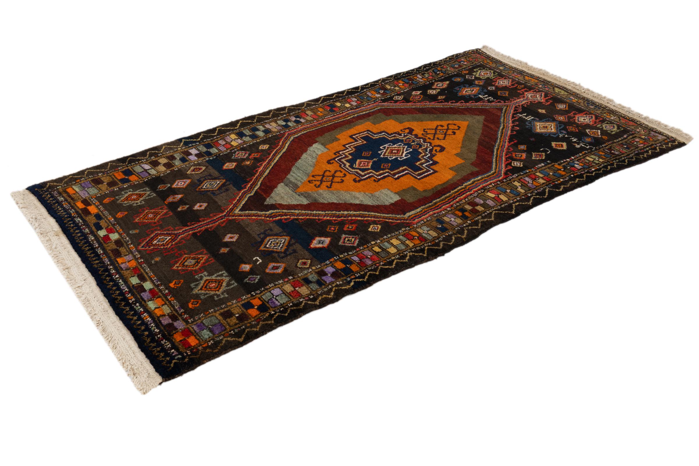 Ce tapis appartient aux tapis de village et de nomade d'Iran, anciennement la Perse. Ce type de tapis est noué à la main dans les petites villes et les villages selon l'ancienne tradition. Même les nomades nouent encore des tapis persans en plein air. Les tapis sont noués sans schéma et entièrement à partir de la tête. Ils se caractérisent par des ornements classiques, qui sont disposés en motifs droits et géométriques. Grâce à leur origine culturelle et traditionnelle, ces tapis ont un caractère unique qui incarne la Perse ancienne.
