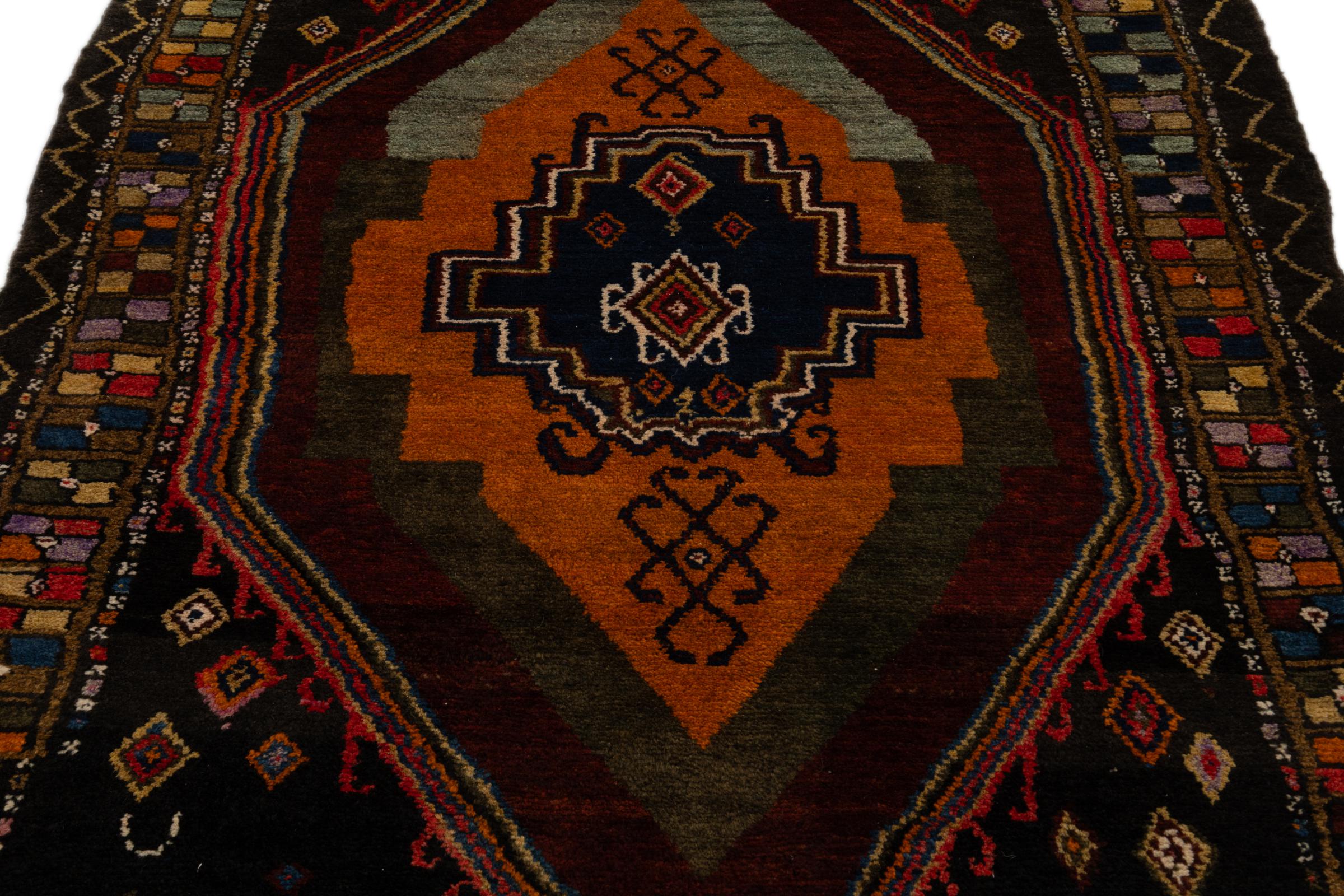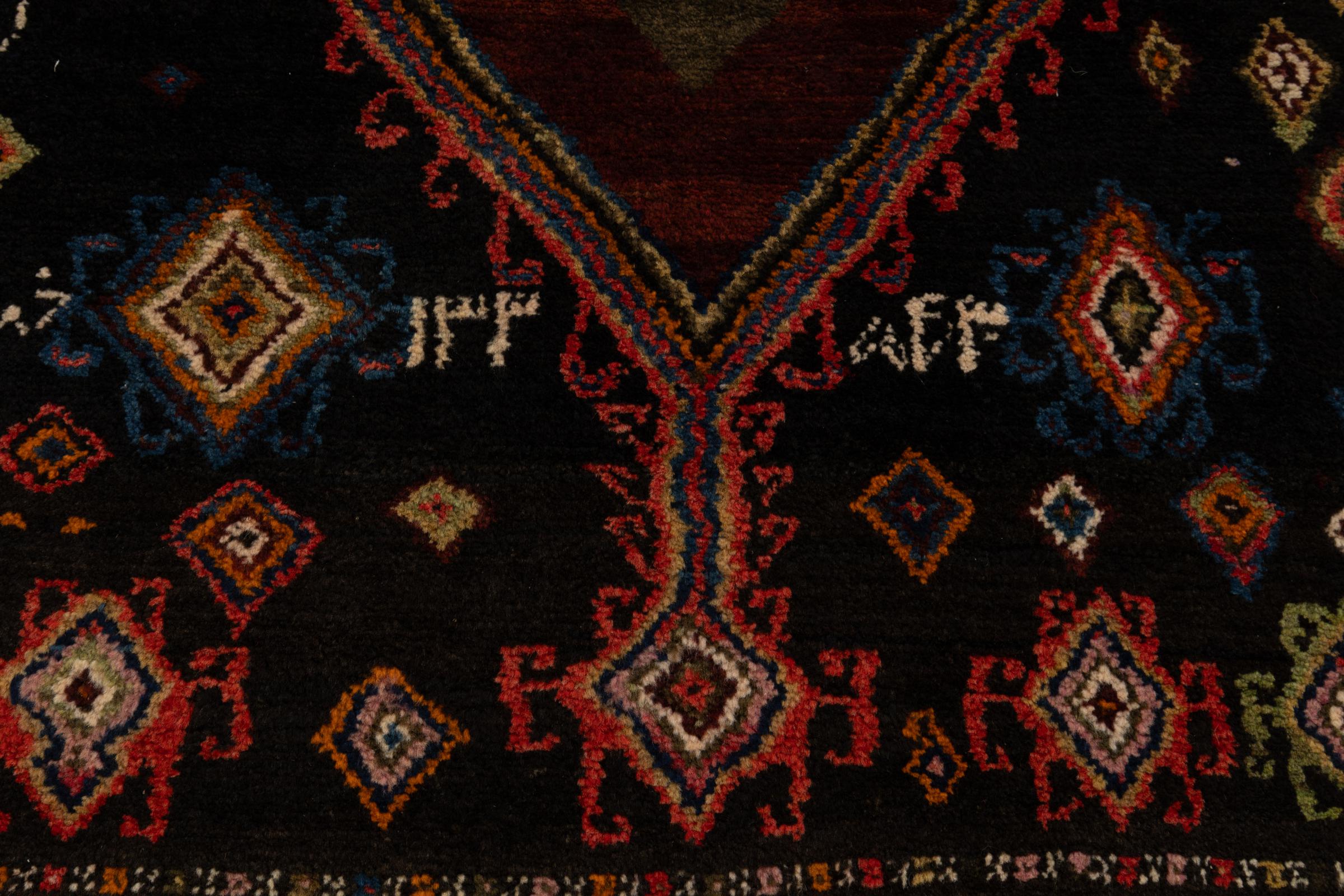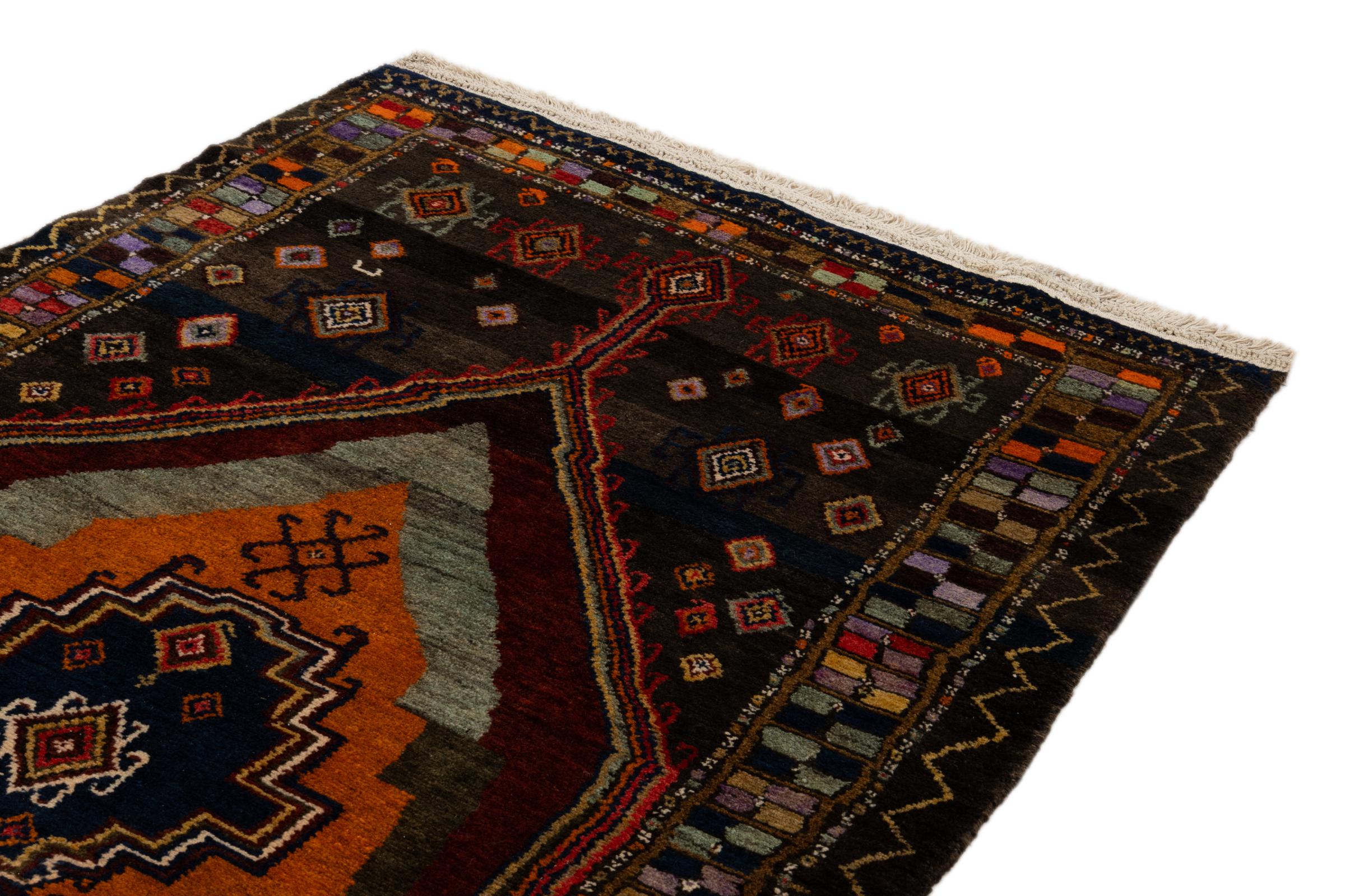 Ce tapis appartient aux tapis de village et de nomade d'Iran, anciennement la Perse. Ce type de tapis est noué à la main dans les petites villes et les villages selon l'ancienne tradition. Même les nomades nouent encore des tapis persans en plein air. Les tapis sont noués sans schéma et entièrement à partir de la tête. Ils se caractérisent par des ornements classiques, qui sont disposés en motifs droits et géométriques. Grâce à leur origine culturelle et traditionnelle, ces tapis ont un caractère unique qui incarne la Perse ancienne.
