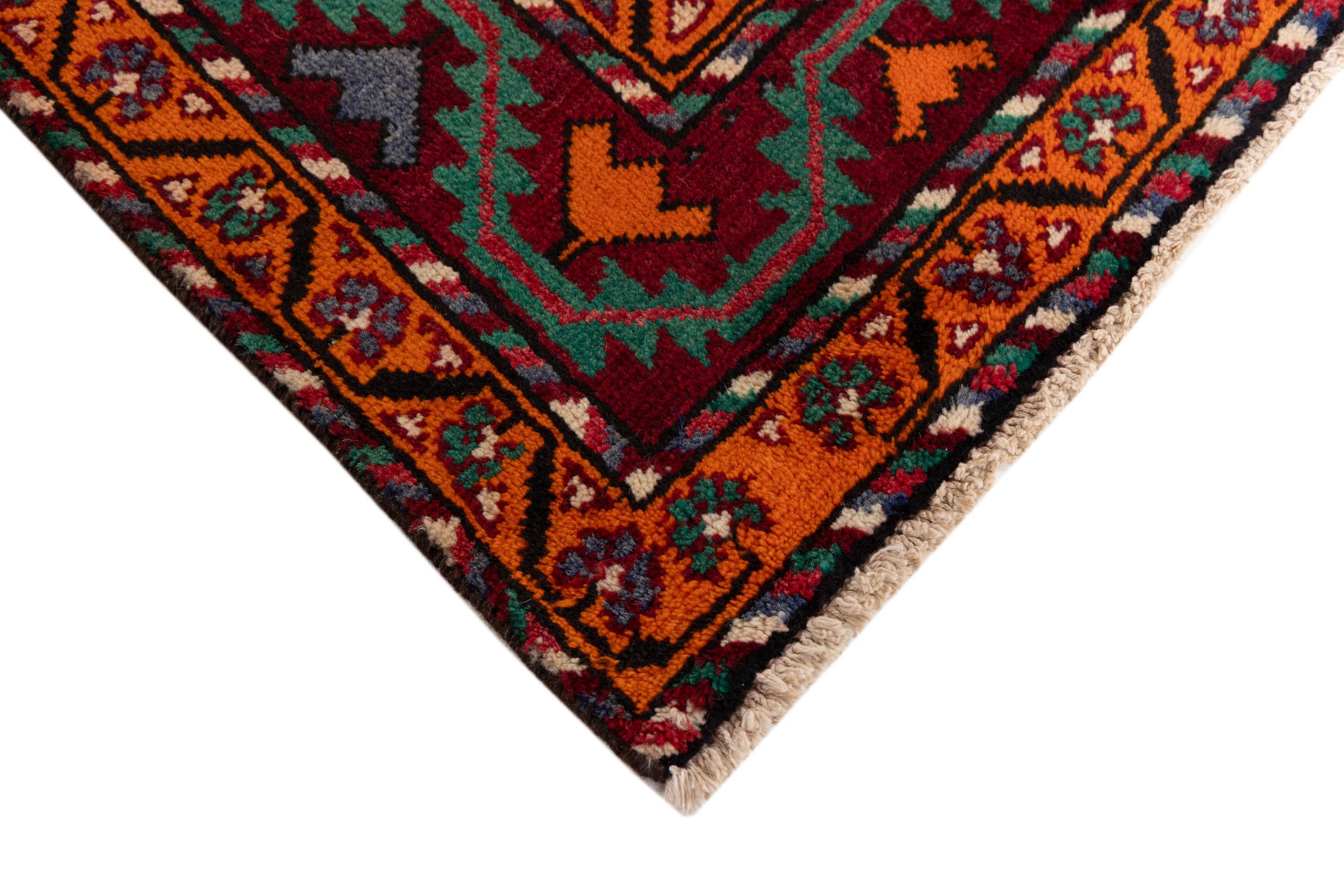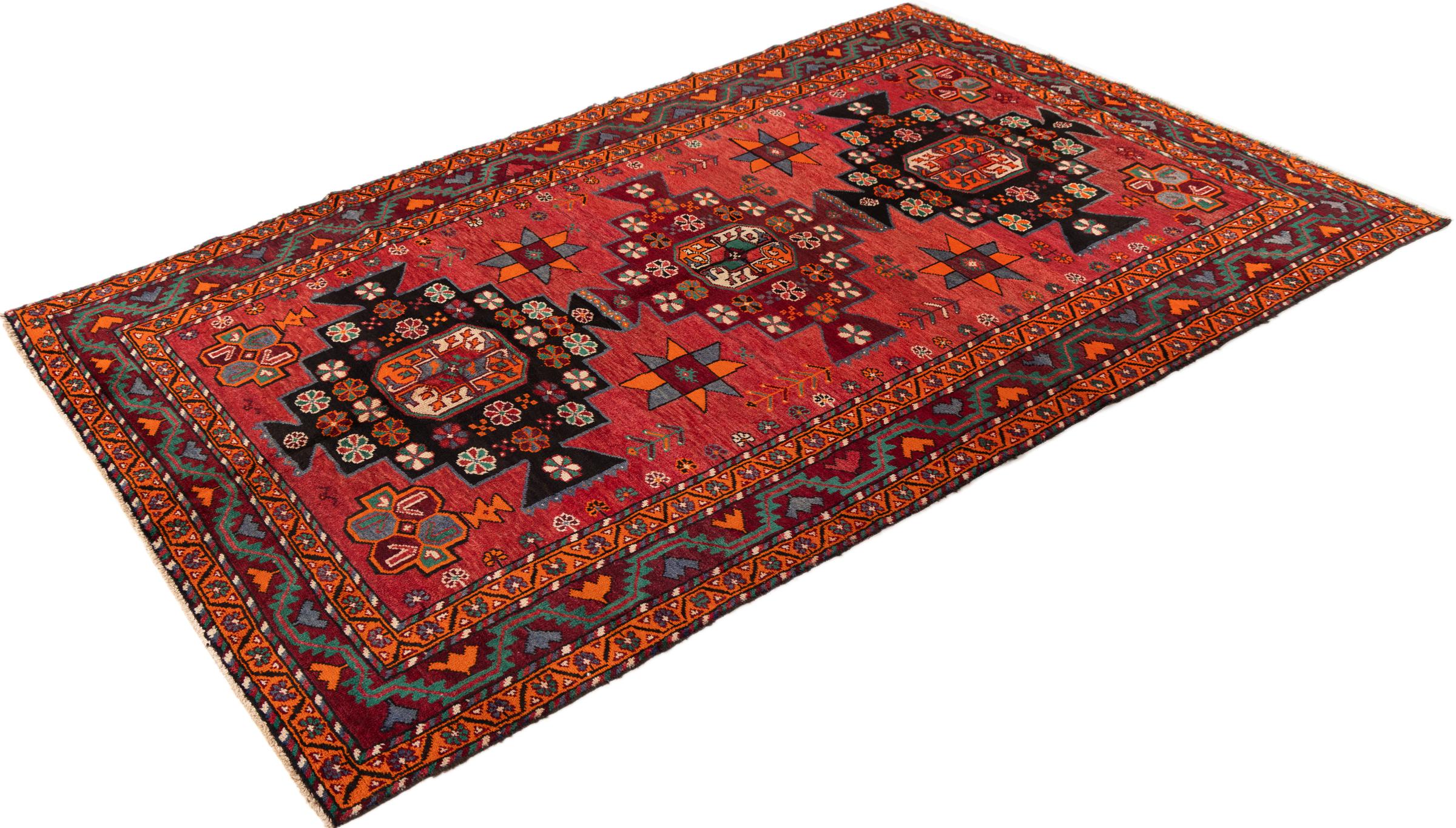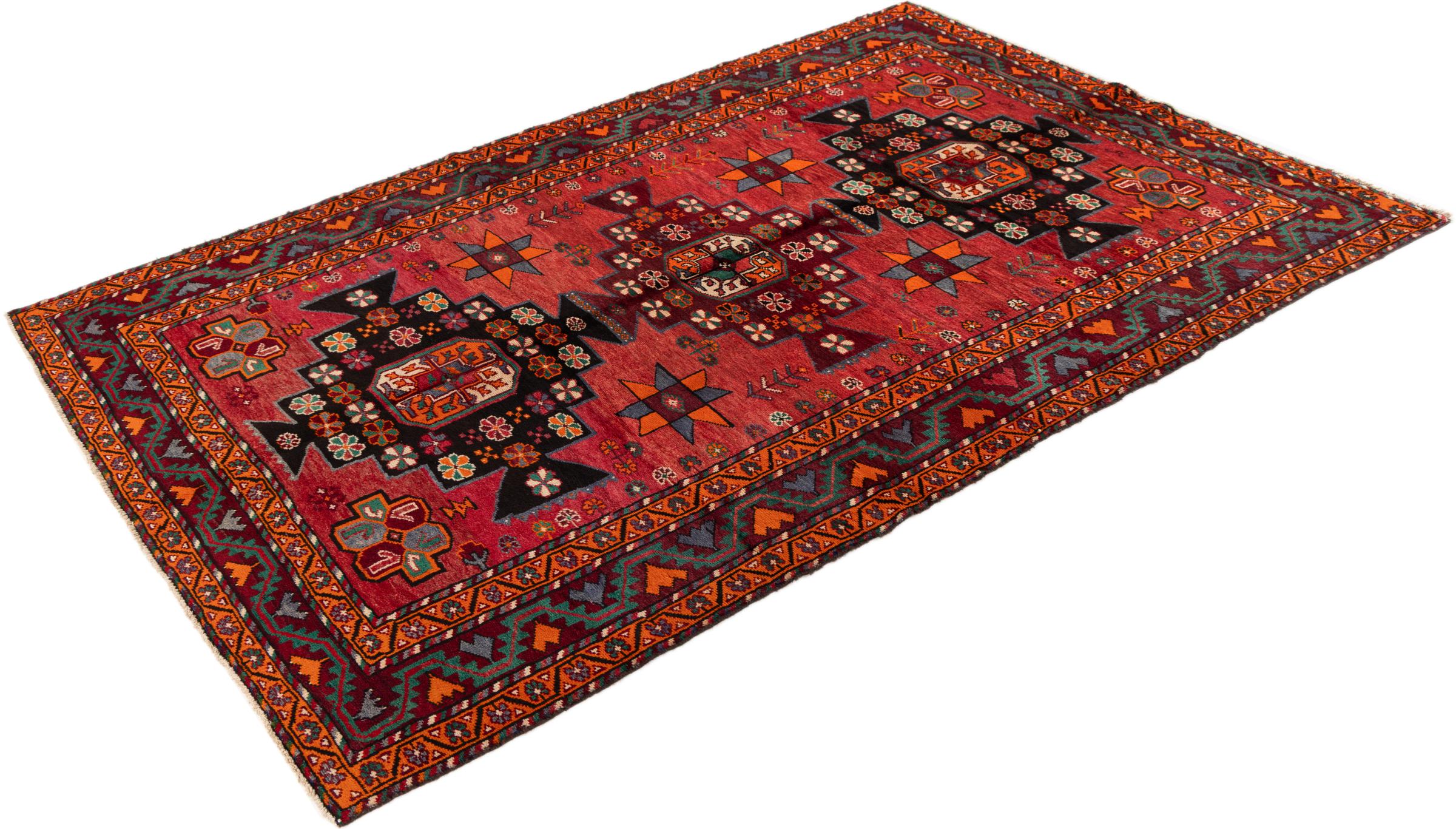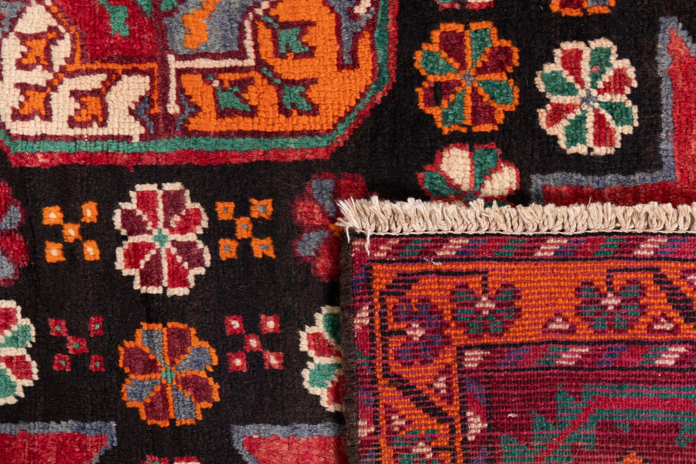 Ce tapis appartient aux tapis de village et de nomade d'Iran, anciennement la Perse. Ce type de tapis est noué à la main dans les petites villes et les villages selon l'ancienne tradition. Même les nomades nouent encore des tapis persans en plein air. Les tapis sont noués sans schéma et entièrement à partir de la tête. Ils se caractérisent par des ornements classiques, qui sont disposés en motifs droits et géométriques. Grâce à leur origine culturelle et traditionnelle, ces tapis ont un caractère unique qui incarne la Perse ancienne.
