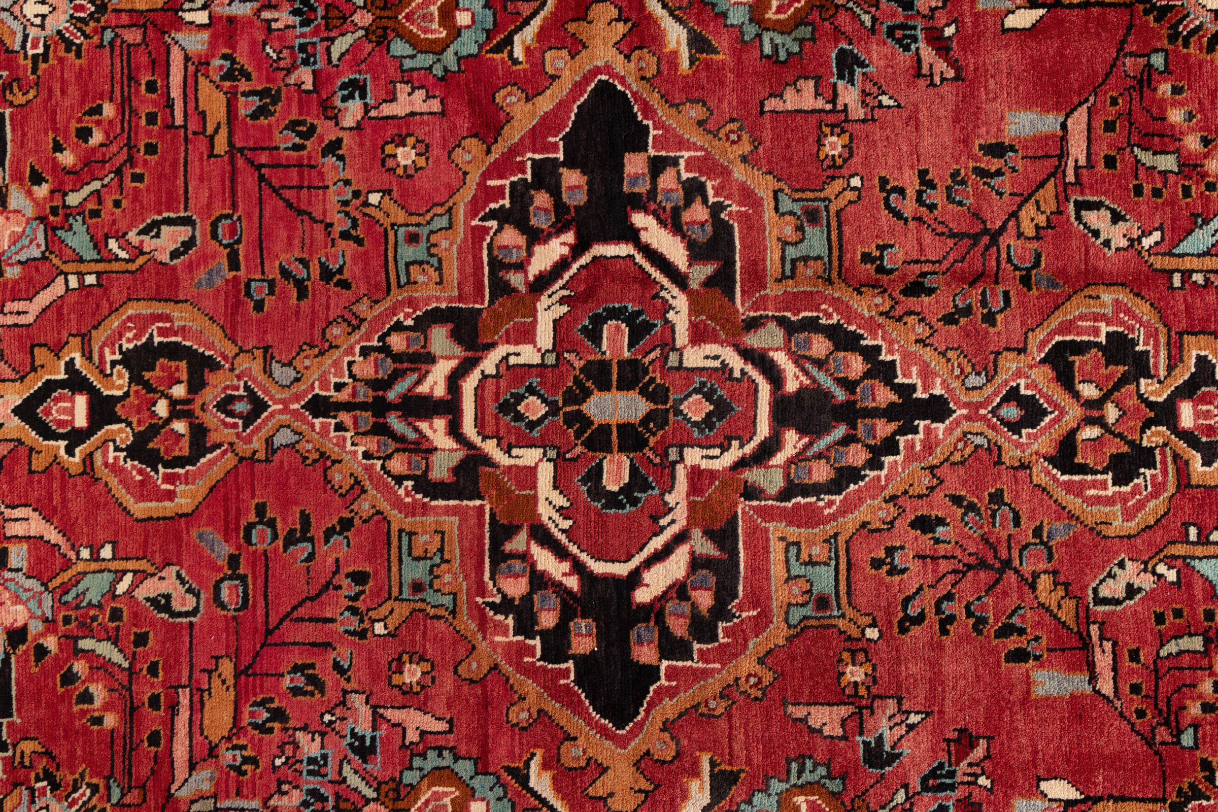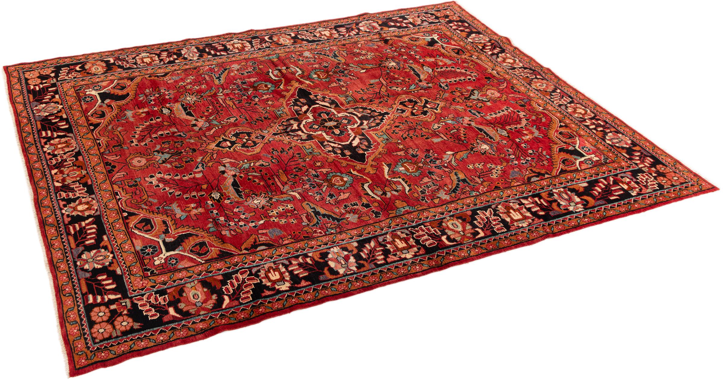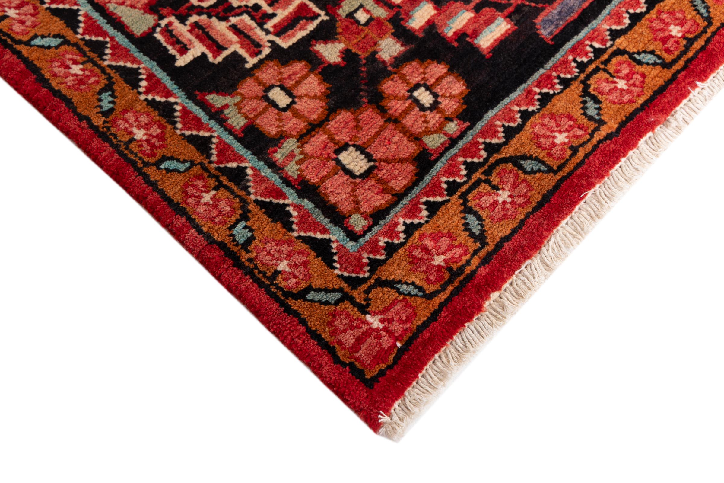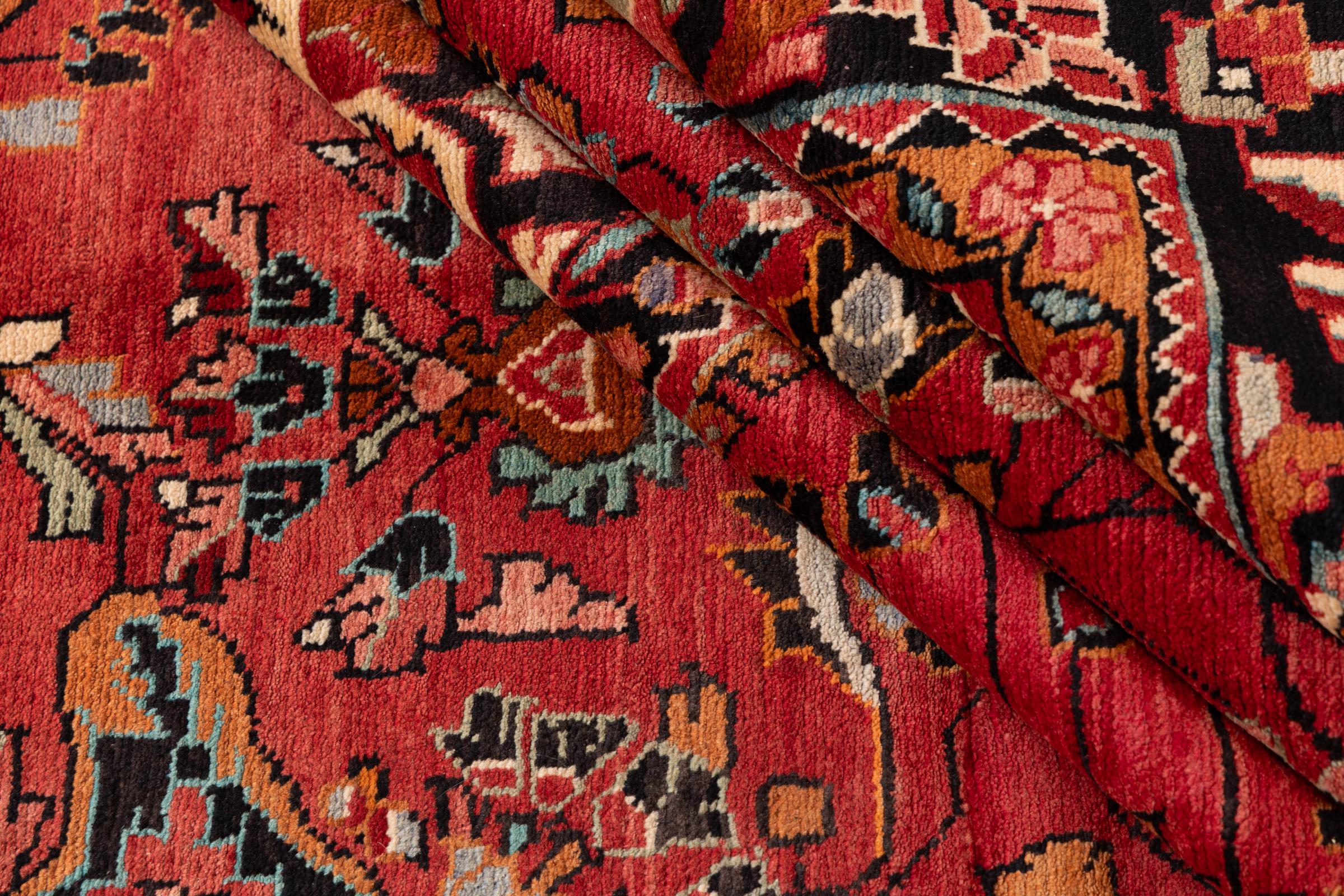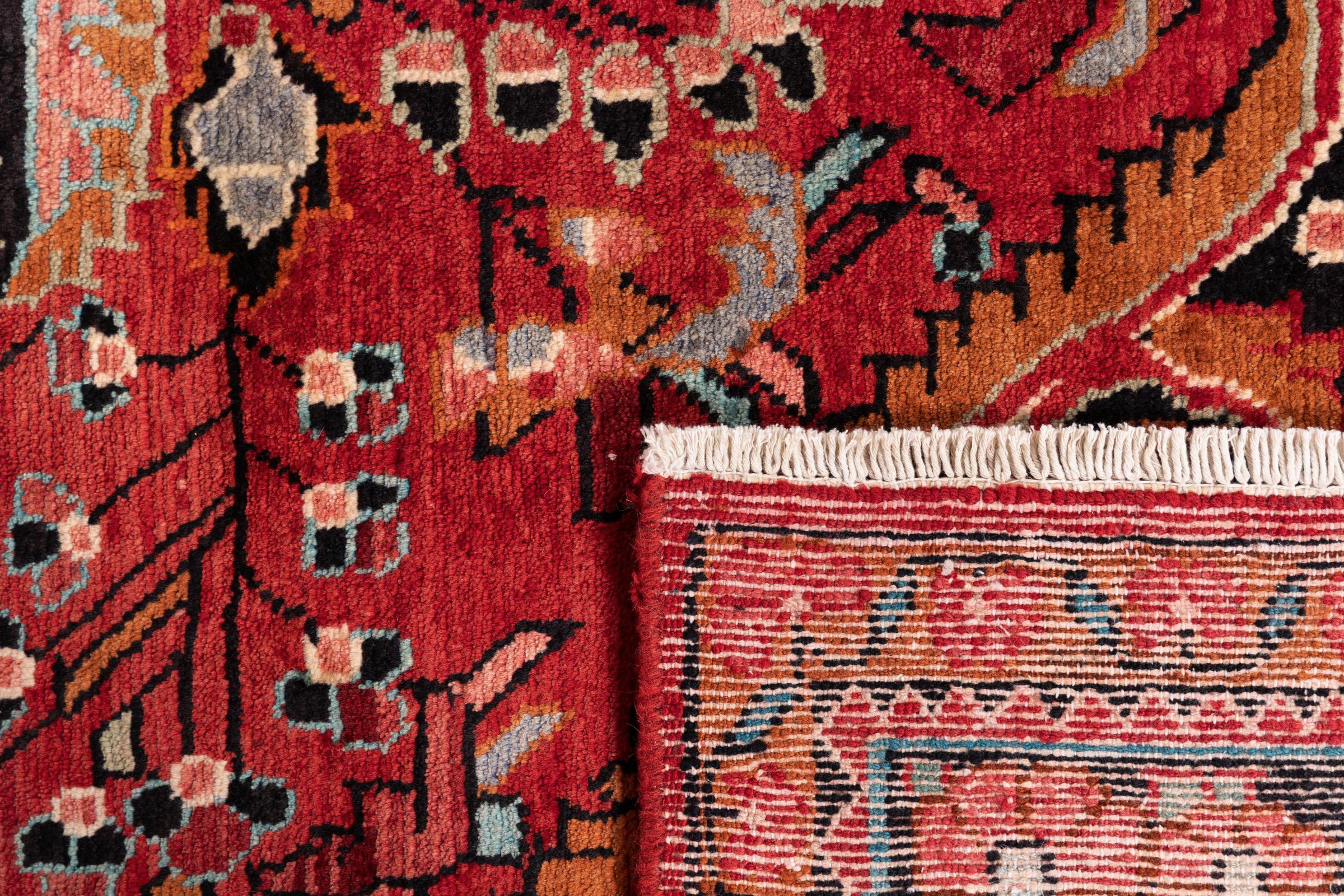 Ce tapis appartient aux tapis de village et de nomade d'Iran, anciennement la Perse. Ce type de tapis est noué à la main dans les petites villes et les villages selon l'ancienne tradition. Même les nomades nouent encore des tapis persans en plein air. Les tapis sont noués sans schéma et entièrement à partir de la tête. Ils se caractérisent par des ornements classiques, qui sont disposés en motifs droits et géométriques. Grâce à leur origine culturelle et traditionnelle, ces tapis ont un caractère unique qui incarne la Perse ancienne.
