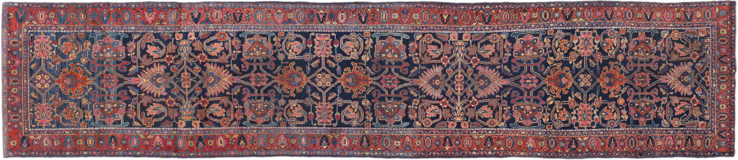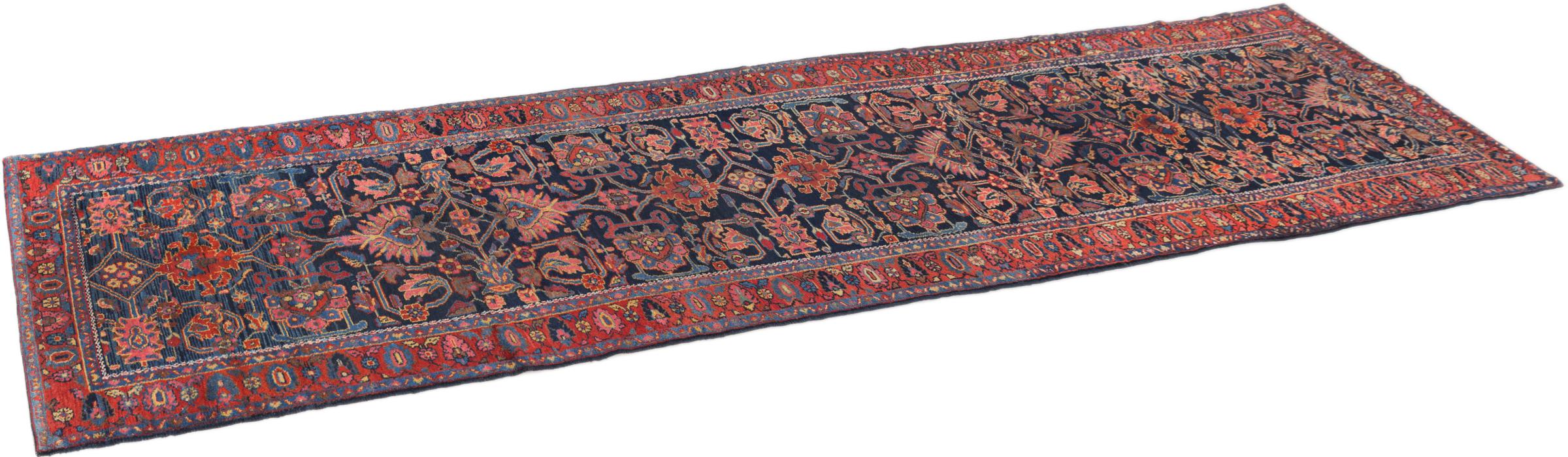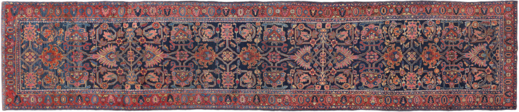 Réf. Article: 298430009079 Taille: 492x100 cm Épaisseur: ap. 12 mm Densité de nouage: 200 000 - 250 000 / m² Fabrication: Noué à la main Velours: Laine filée à la main Chaîne: Coton État du tapis / Conservation Perfect Origine: Persie / Iran Âge: Antique, over 80 ans Poids: ap. 17 kg Également connu sous Huseinabad Nombre en stock: Unique - Seulement 1 en stock
