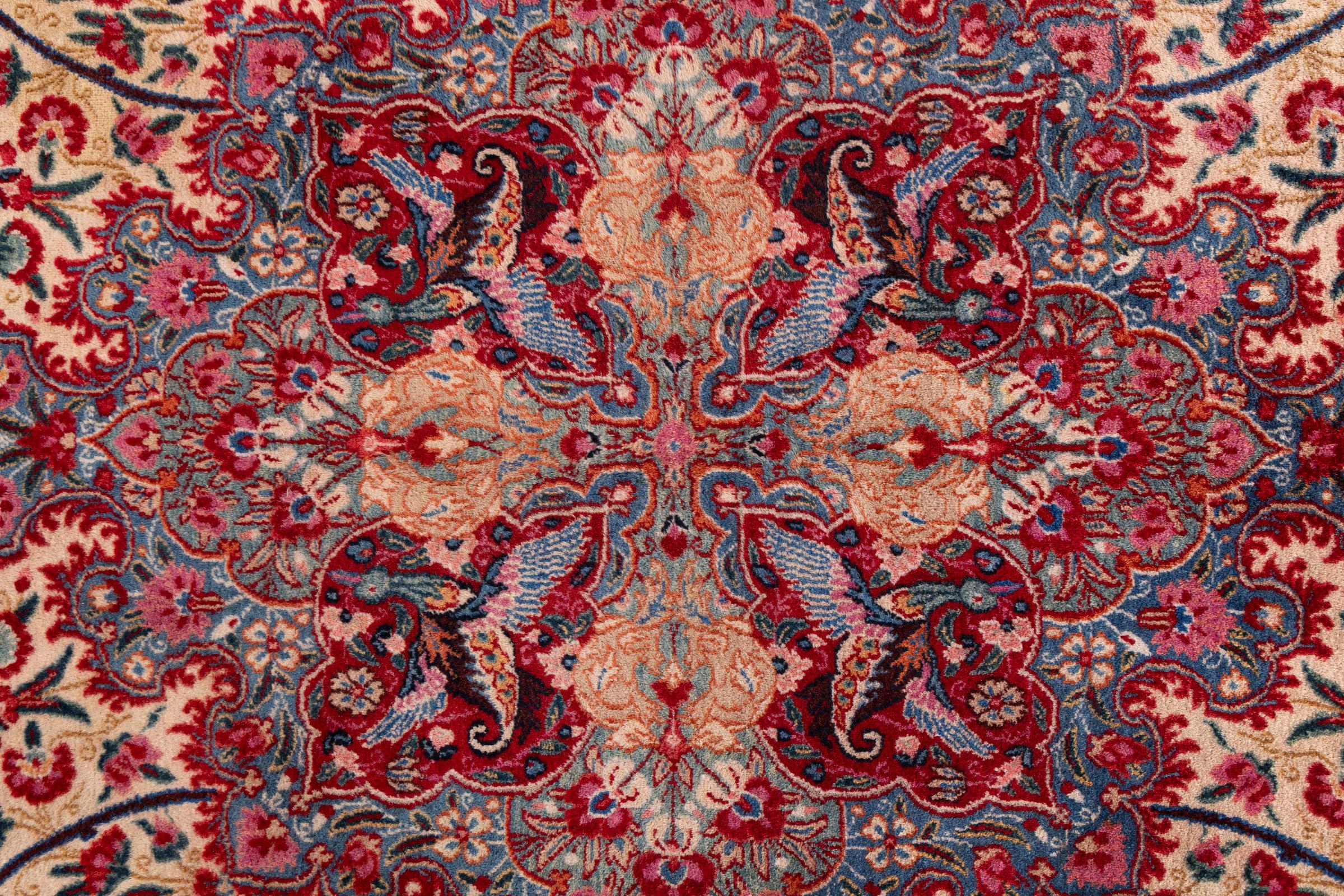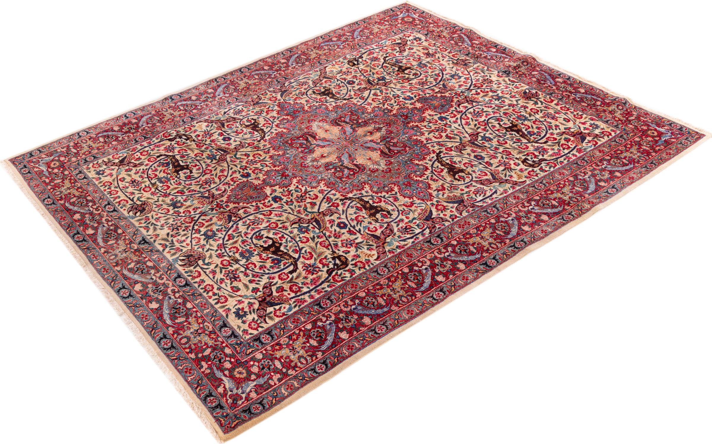 Moud est en Iran, au sud de Mashhad. En tant que ville de l'ancienne Perse, sa tradition de nouage de tapis remonte à plusieurs siècles, voire à des milliers d'années. Les tapis noués à la main de Moud jouissent d'une excellente réputation. Ils sont faits avec le fameux nœud persan. En général, les tapis persans brumeux ont un motif de couverture complète. Le motif Jardin avec des motifs de jardins persans ou le motif Herati.
