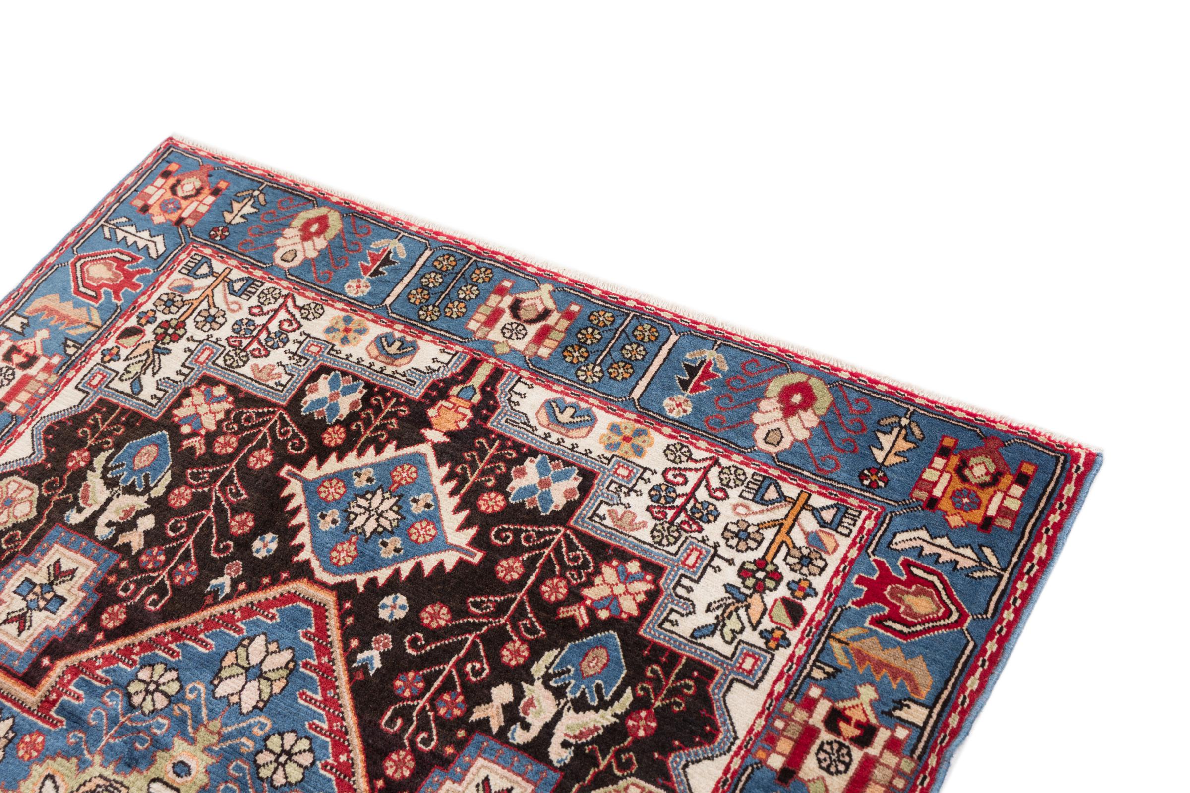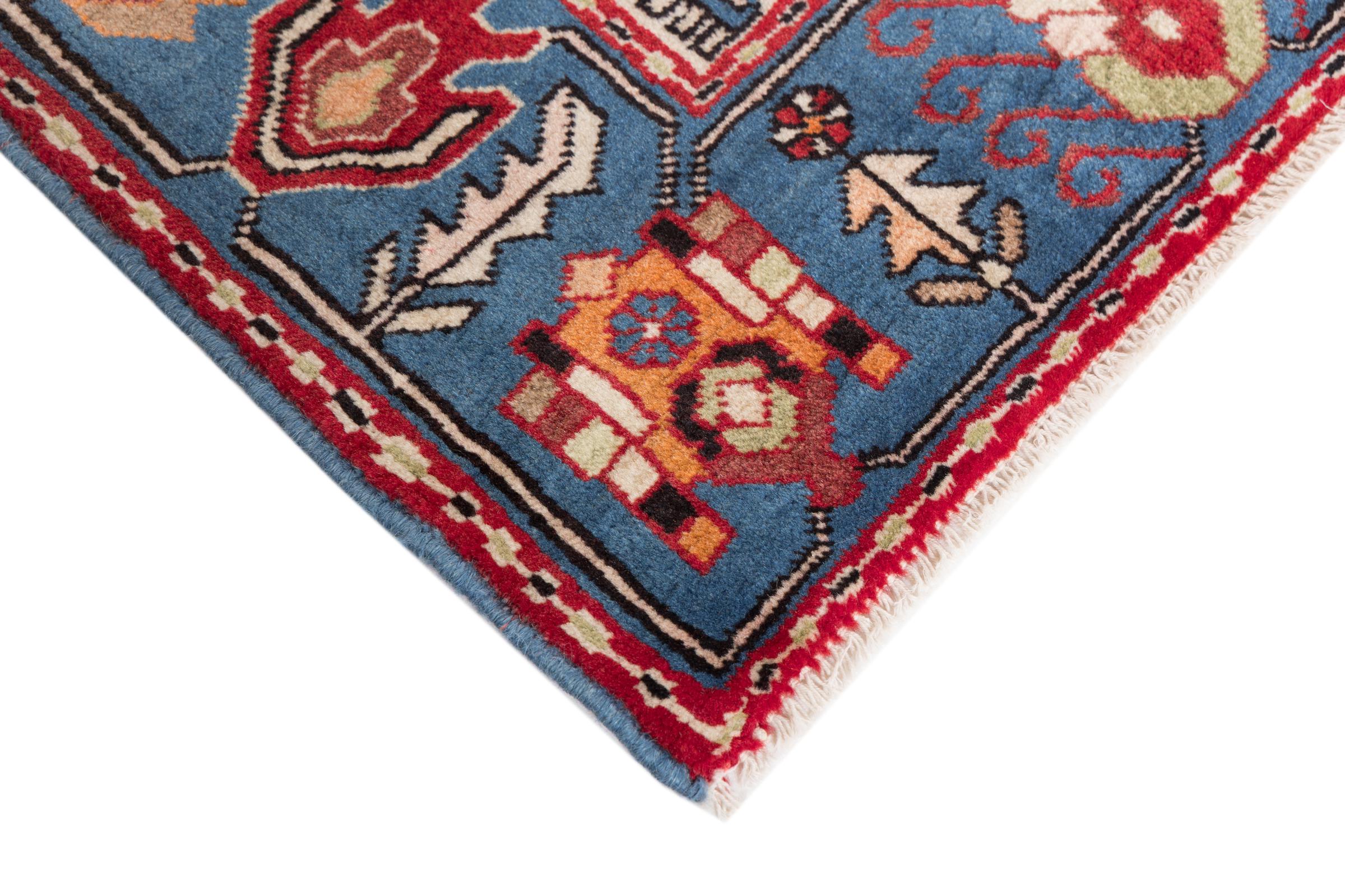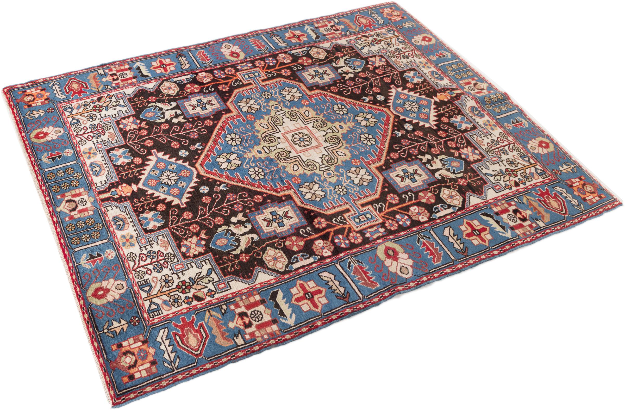 Ce tapis appartient aux tapis de village et de nomade d'Iran, anciennement la Perse. Ce type de tapis est noué à la main dans les petites villes et les villages selon l'ancienne tradition. Même les nomades nouent encore des tapis persans en plein air. Les tapis sont noués sans schéma et entièrement à partir de la tête. Ils se caractérisent par des ornements classiques, qui sont disposés en motifs droits et géométriques. Grâce à leur origine culturelle et traditionnelle, ces tapis ont un caractère unique qui incarne la Perse ancienne.