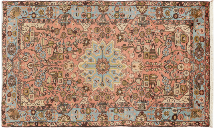 Ce tapis appartient aux tapis de village et de nomade d'Iran, anciennement la Perse. Ce type de tapis est noué à la main dans les petites villes et les villages selon l'ancienne tradition. Même les nomades nouent encore des tapis persans en plein air. Les tapis sont noués sans schéma et entièrement à partir de la tête. Ils se caractérisent par des ornements classiques, qui sont disposés en motifs droits et géométriques. Grâce à leur origine culturelle et traditionnelle, ces tapis ont un caractère unique qui incarne la Perse ancienne.