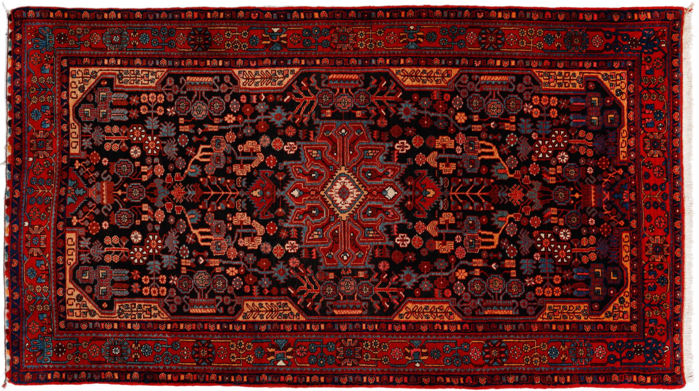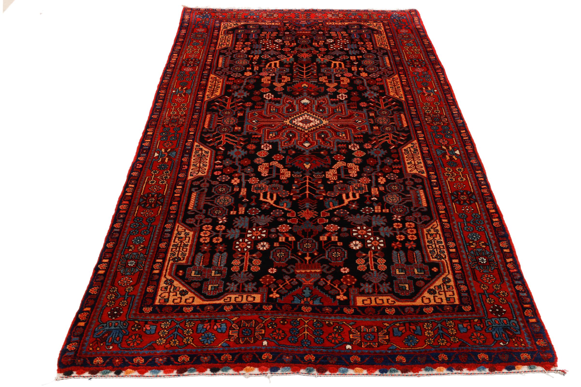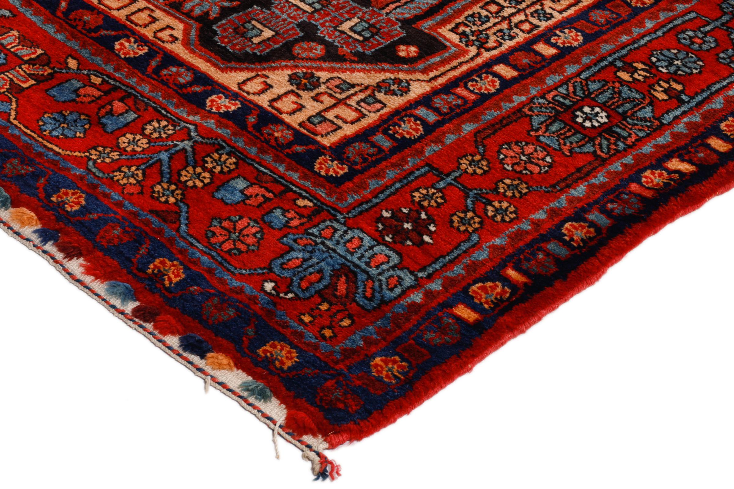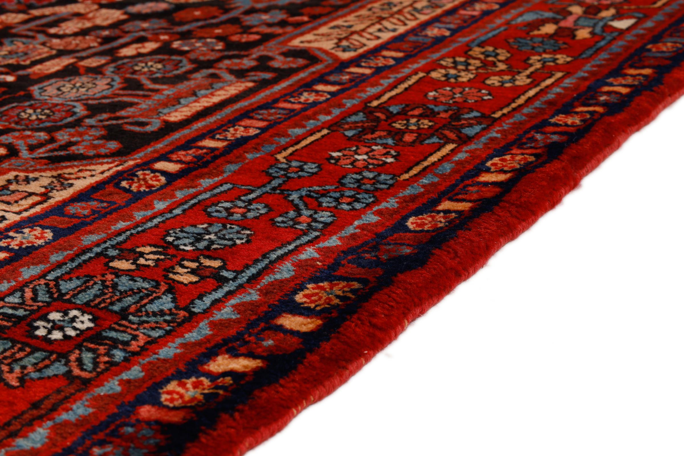 Ce tapis persan Nahavand est noué à la main dans la région ouest de l’Iran. Il est robuste et parfaitement adapté aux zones très fréquentées. Les éléments importants sont la laine de qualité supérieure et les splendides couleurs étincelantes.