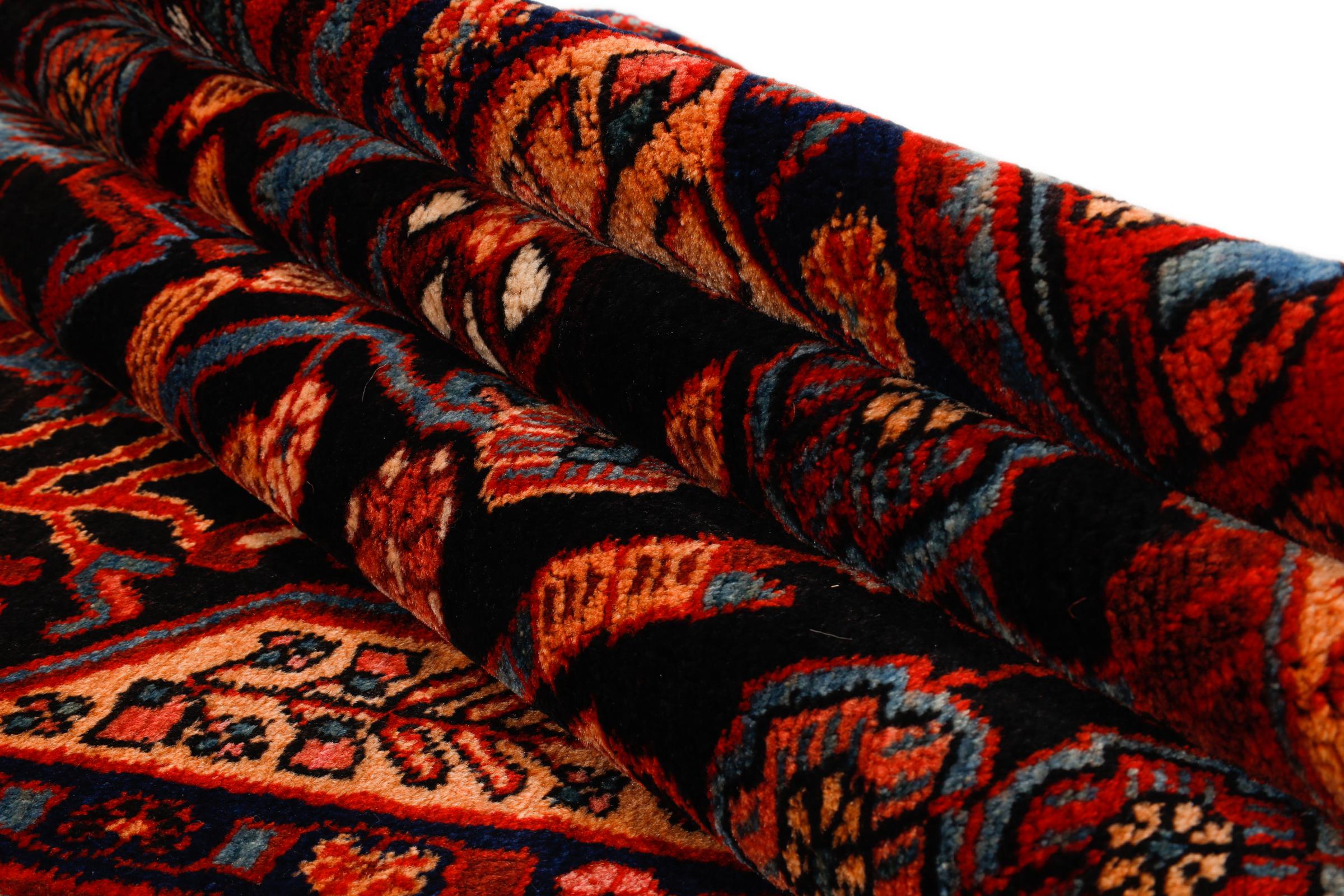 Ce tapis appartient aux tapis de village et de nomade d'Iran, anciennement la Perse. Ce type de tapis est noué à la main dans les petites villes et les villages selon l'ancienne tradition. Même les nomades nouent encore des tapis persans en plein air. Les tapis sont noués sans schéma et entièrement à partir de la tête. Ils se caractérisent par des ornements classiques, qui sont disposés en motifs droits et géométriques. Grâce à leur origine culturelle et traditionnelle, ces tapis ont un caractère unique qui incarne la Perse ancienne.