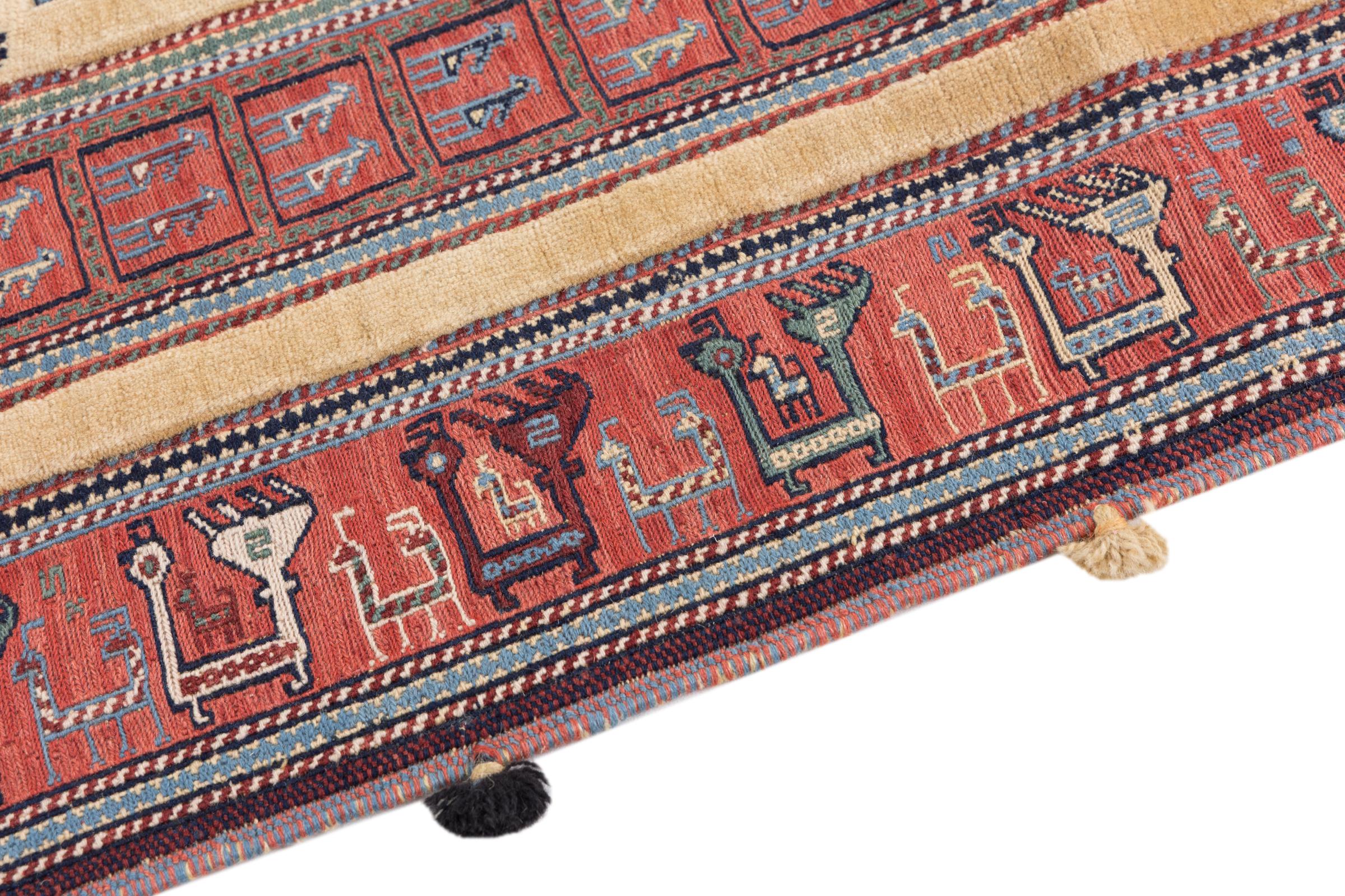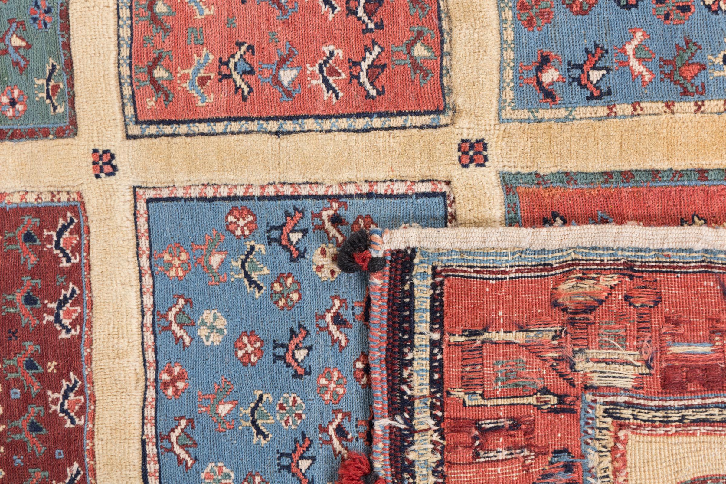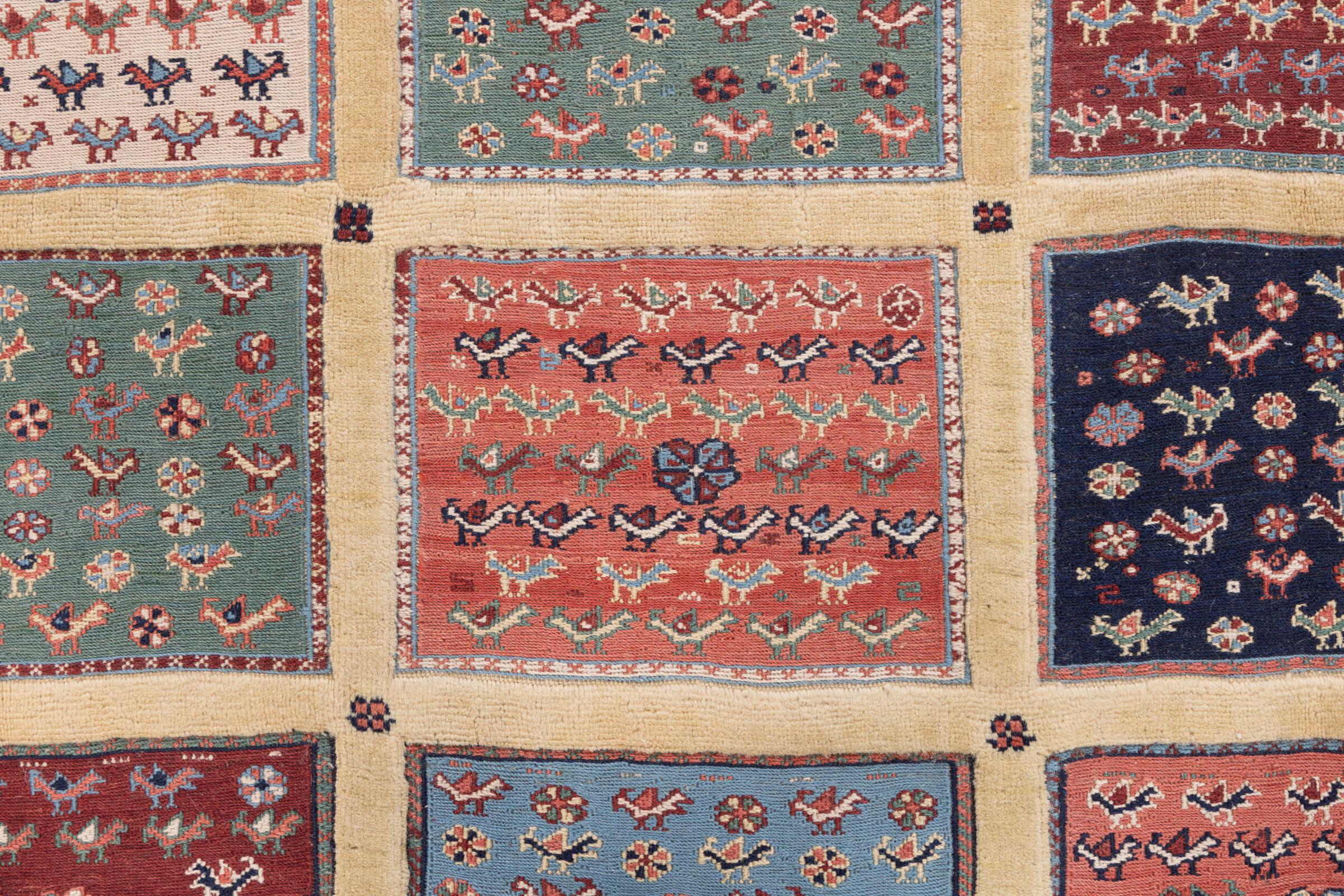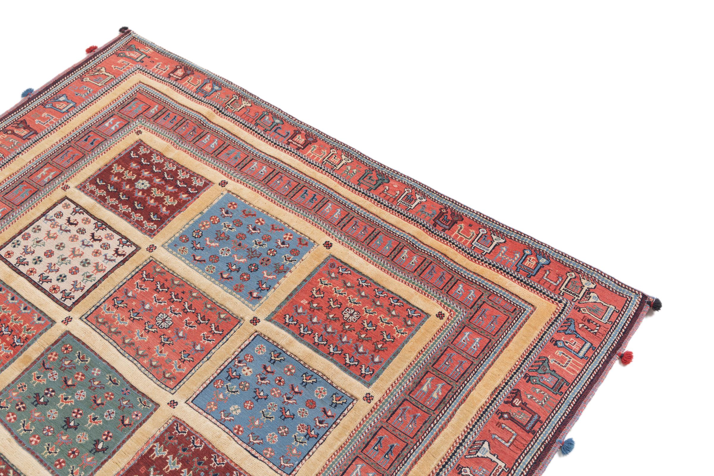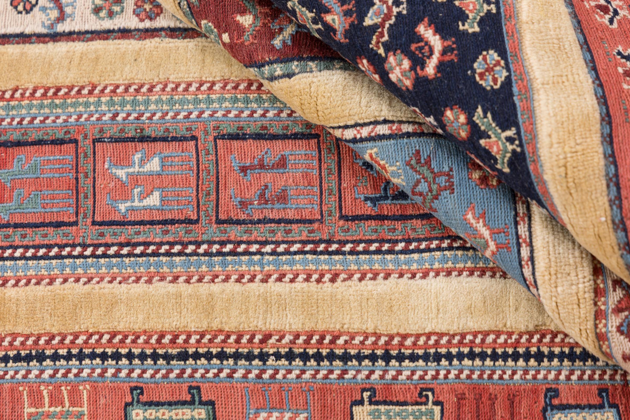 Ce tapis Nimbaft noué à la main mais également tissé à la main est un parfait exemple de savoir-faire et de l’union de deux extrêmement différents processus de fabrication de tapis d’Orient.