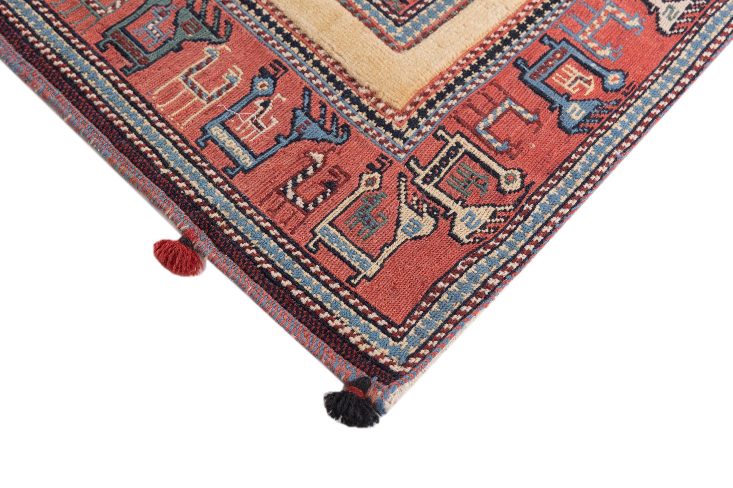 Ce tapis est fait de laine de mouton filée à la main de la plus haute qualité. En Iran (ancienne Perse), en Afghanistan et au Pakistan notamment, la laine est encore filée à la main avant que ne commence le nouage proprement dit du tapis. La laine a fait ses preuves en tant que matière naturelle et extrêmement résistante au fil des siècles. Il a notamment des propriétés antisalissures et d'isolation thermique. En même temps, la laine est incomparablement douce et a un éclat naturel.