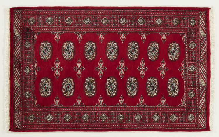 Une grande partie de la production pakistanaise de tapis a lieu dans et autour des villes de Lahore et de Karachi. De nombreux noueurs de tapis de cette époque ont fui au Pakistan pendant la guerre avec l'Inde et s'y sont installés. Aujourd'hui, on connaît surtout les tapis noués à la main du Pakistan Bukhara. Tout comme les tapis orientaux afghans, les tapis pakistanais sont également de couleur sombre et ont pour la plupart des tons rouges. On retrouve également le motif bien connu de la patte d'éléphant (motif octogonal répétitif) sur un Pakistanais.