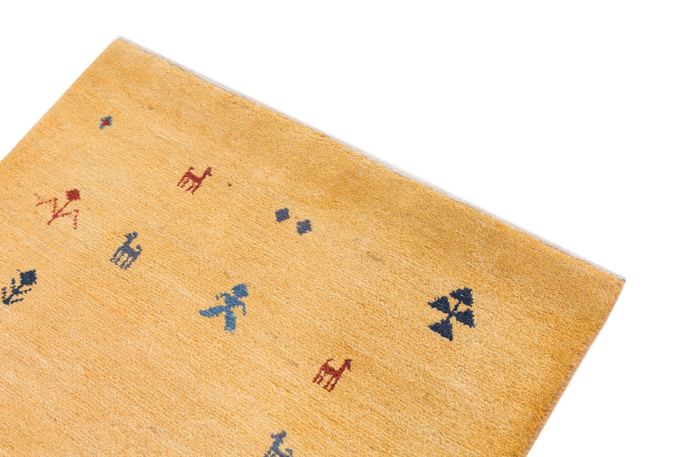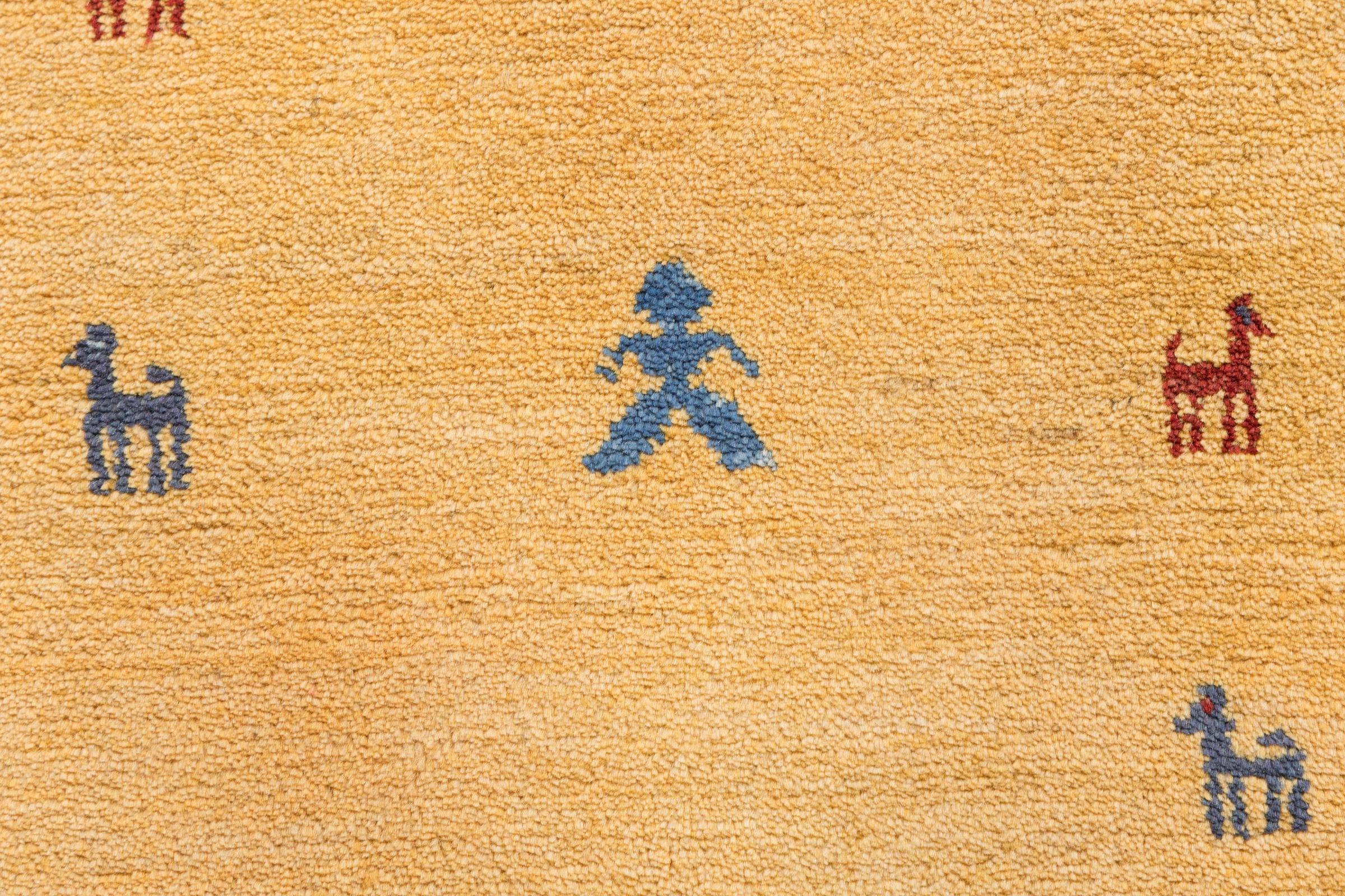Ce tapis persan gabbeh est capable de séduire immédiatement n’importe qui grâce à sa haute qualité et à son robuste velours. Il a été fabriqué artisanalement par les nomades Ghasghai dans la région de Fars au sud de la Perse, à partir de la meilleure laine de mouton. Ils utilisent seulement des couleurs naturelles pour colorer la laine.