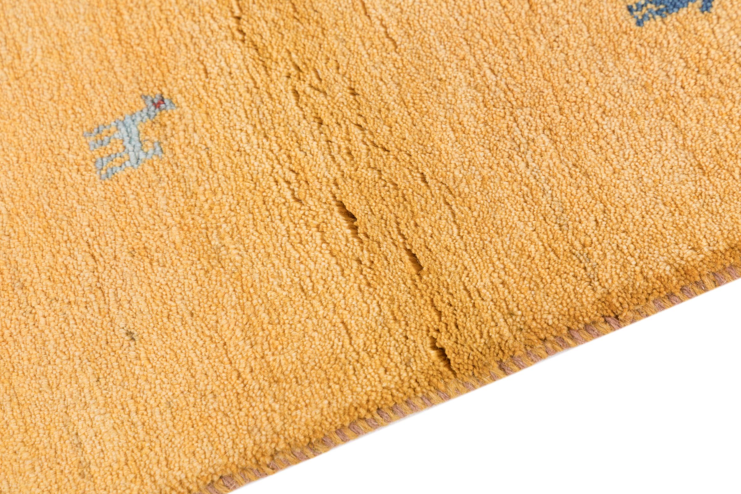 Ce magnifique tapis est un Gabbeh persan et fait donc partie des tapis Gabbeh de la plus haute qualité. Les tapis sont noués par des nomades ou des semi-nomades en Iran selon un savoir-faire traditionnel. Les motifs simples sont pour la plupart inspirés par l'environnement local des nomades. Par exemple, on peut trouver des chameaux, des arbres ou des buissons sur les tapis traditionnels. Les tapis de Gabbeh persan sont faits de laine provenant de troupeaux de moutons élevés localement. La laine est donc encore en grande partie filée à la main. Ainsi, chacun de ces tapis orientaux incarne un caractère unique de culture ancienne.
