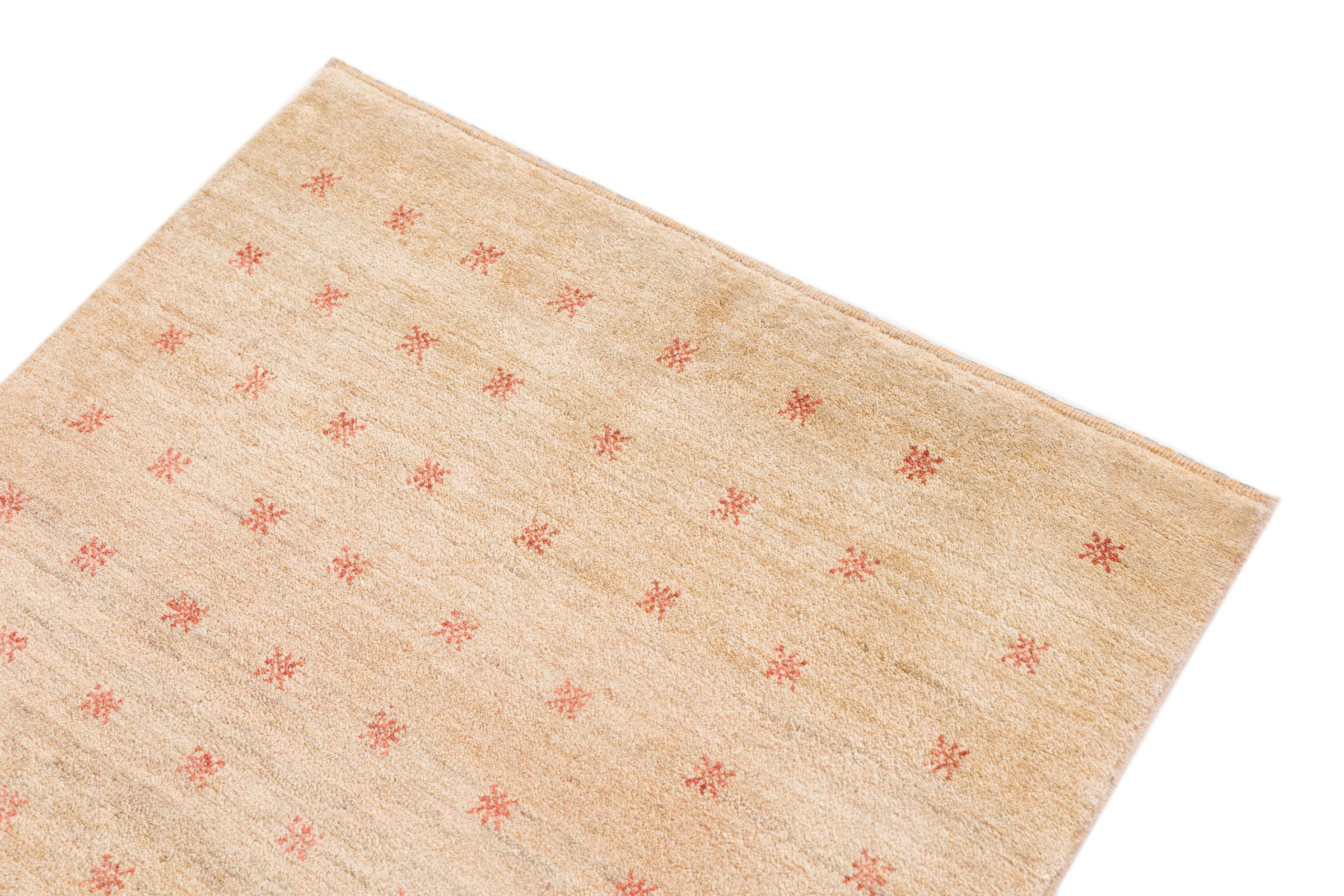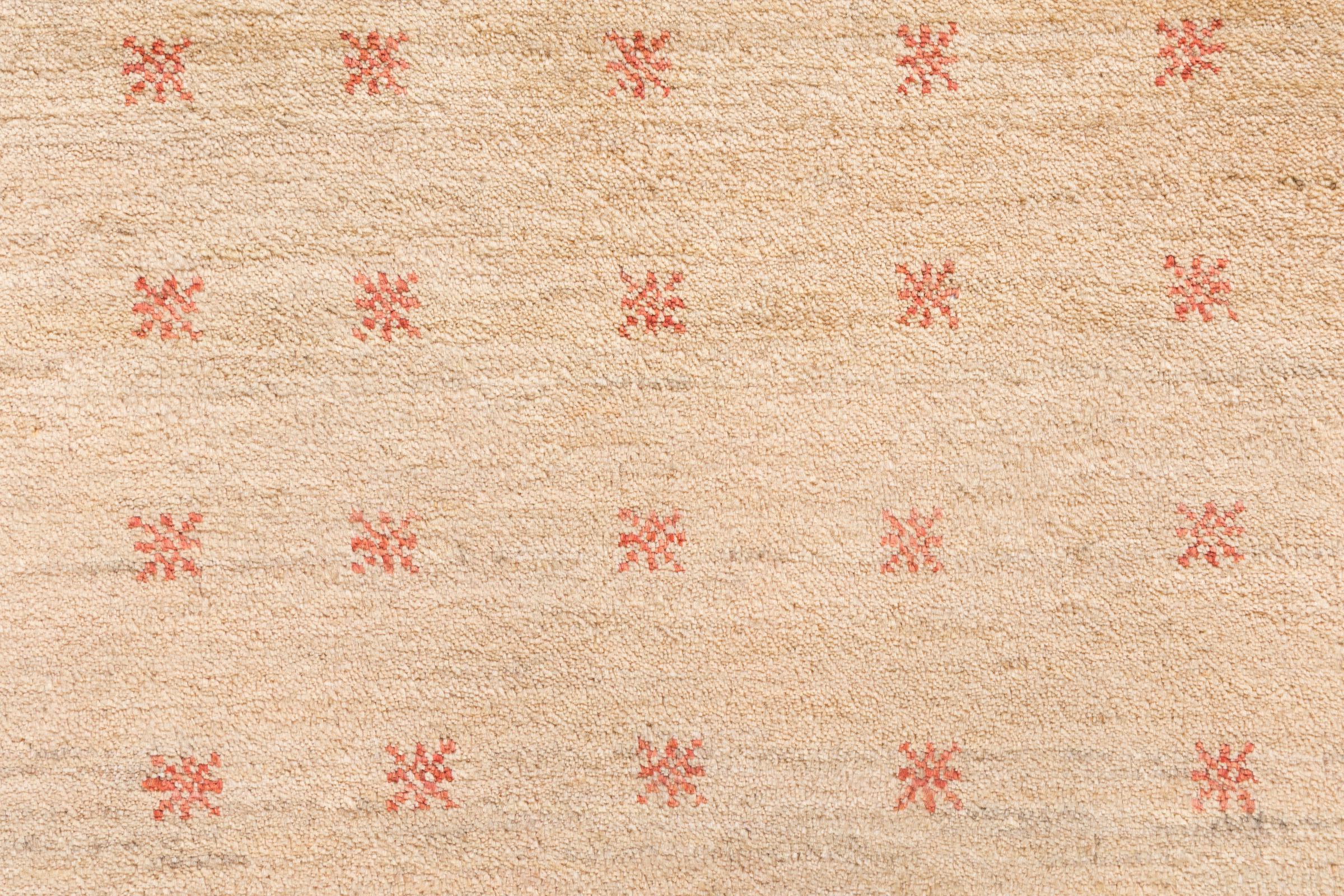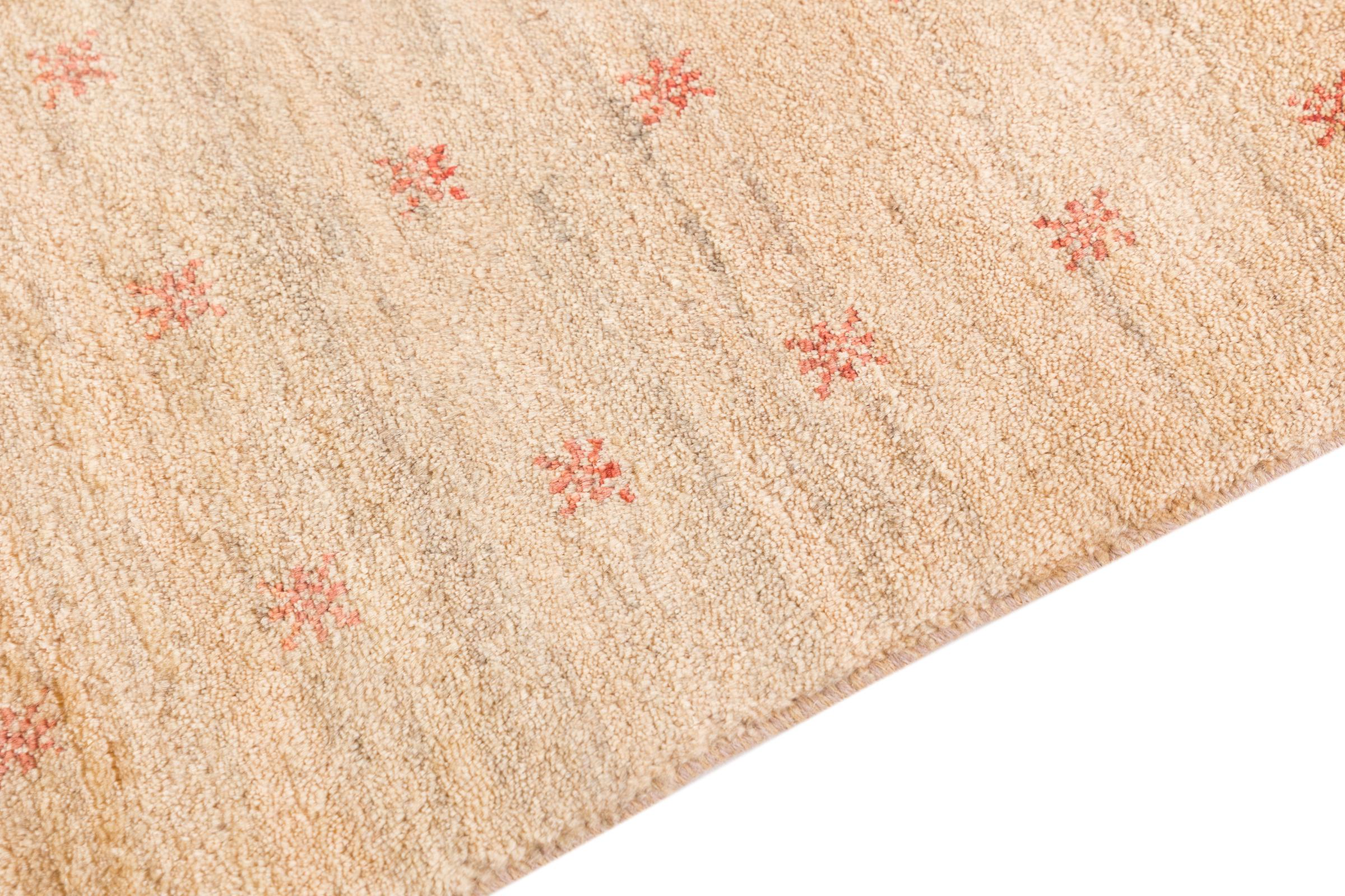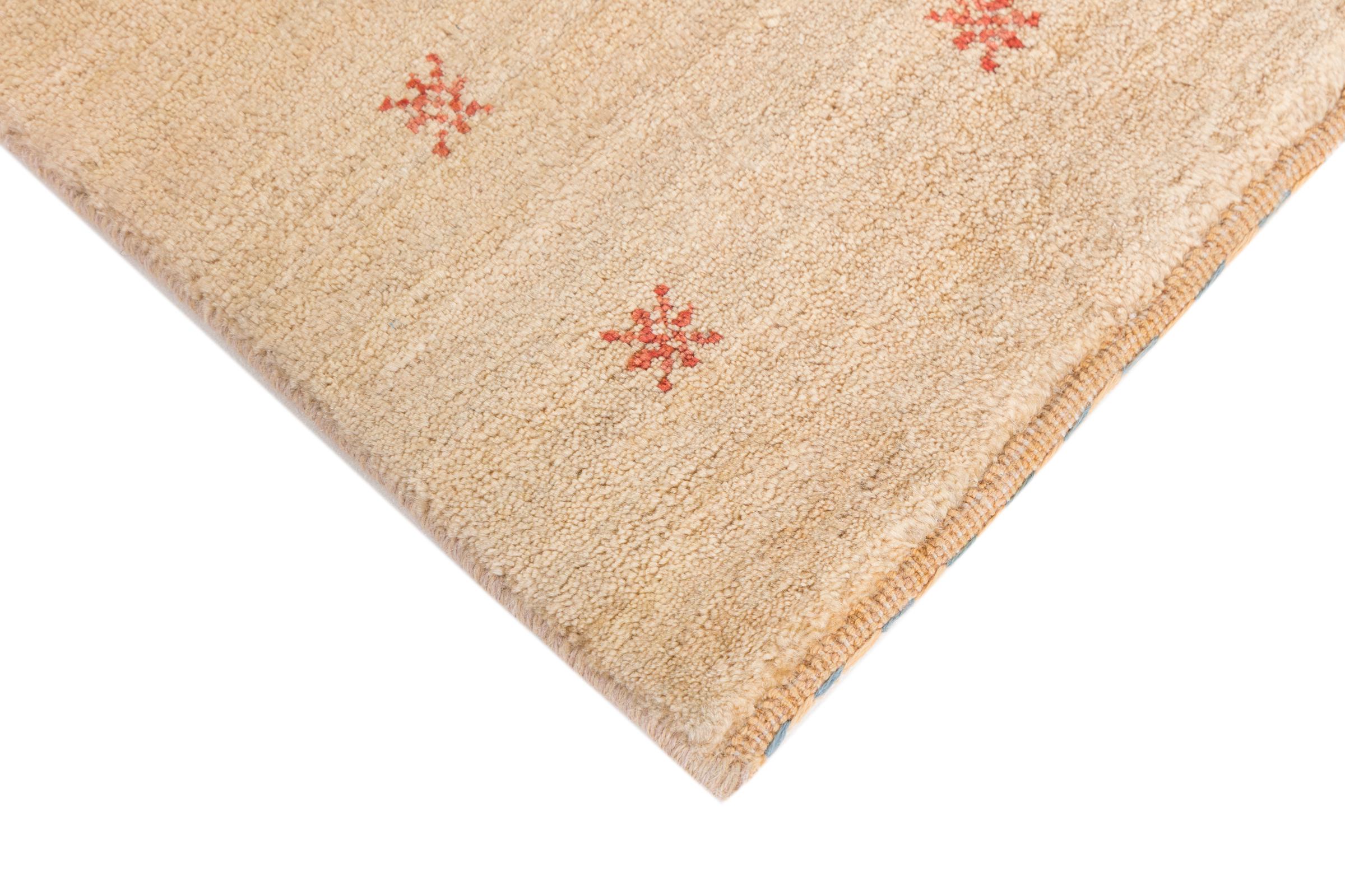 Ce magnifique tapis est un Gabbeh persan et fait donc partie des tapis Gabbeh de la plus haute qualité. Les tapis sont noués par des nomades ou des semi-nomades en Iran selon un savoir-faire traditionnel. Les motifs simples sont pour la plupart inspirés par l'environnement local des nomades. Par exemple, on peut trouver des chameaux, des arbres ou des buissons sur les tapis traditionnels. Les tapis de Gabbeh persan sont faits de laine provenant de troupeaux de moutons élevés localement. La laine est donc encore en grande partie filée à la main. Ainsi, chacun de ces tapis orientaux incarne un caractère unique de culture ancienne.