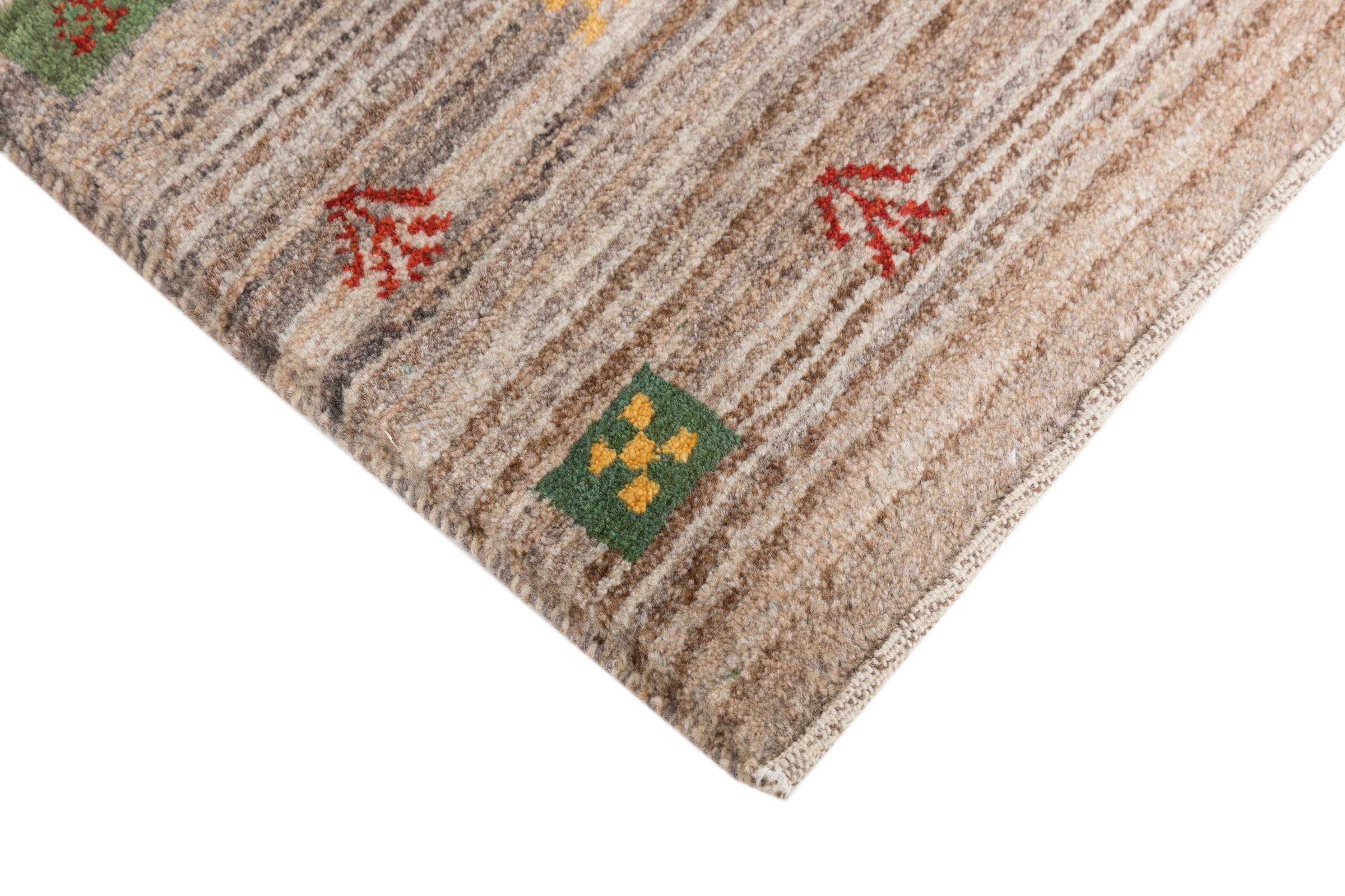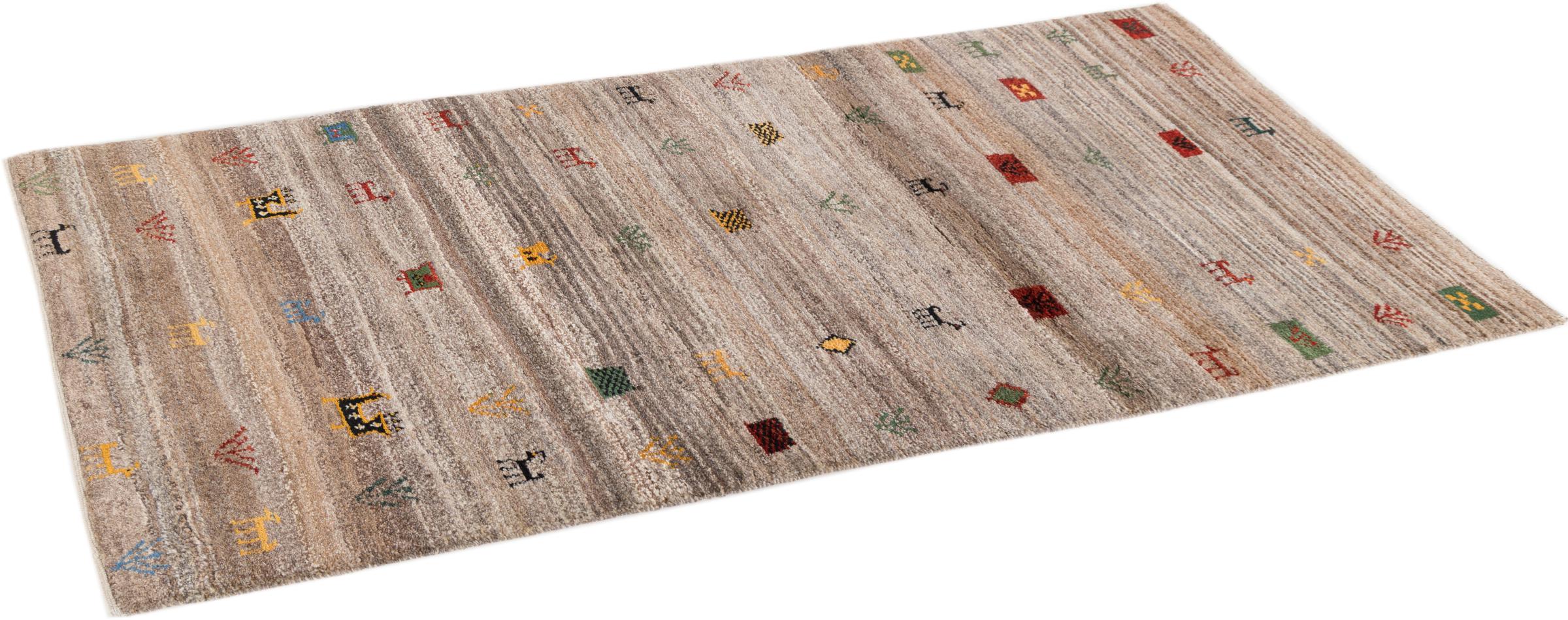 Ce magnifique tapis est un Gabbeh persan et fait donc partie des tapis Gabbeh de la plus haute qualité. Les tapis sont noués par des nomades ou des semi-nomades en Iran selon un savoir-faire traditionnel. Les motifs simples sont pour la plupart inspirés par l'environnement local des nomades. Par exemple, on peut trouver des chameaux, des arbres ou des buissons sur les tapis traditionnels. Les tapis de Gabbeh persan sont faits de laine provenant de troupeaux de moutons élevés localement. La laine est donc encore en grande partie filée à la main. Ainsi, chacun de ces tapis orientaux incarne un caractère unique de culture ancienne.