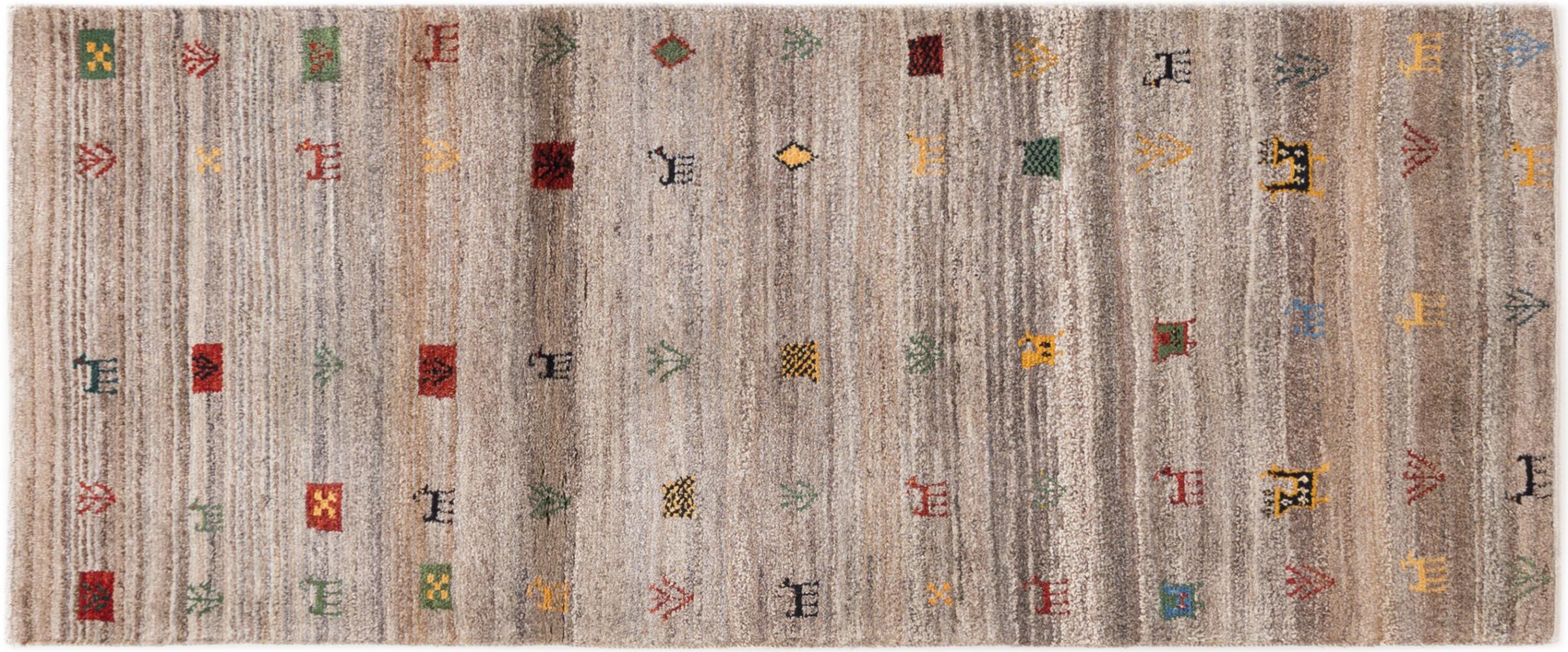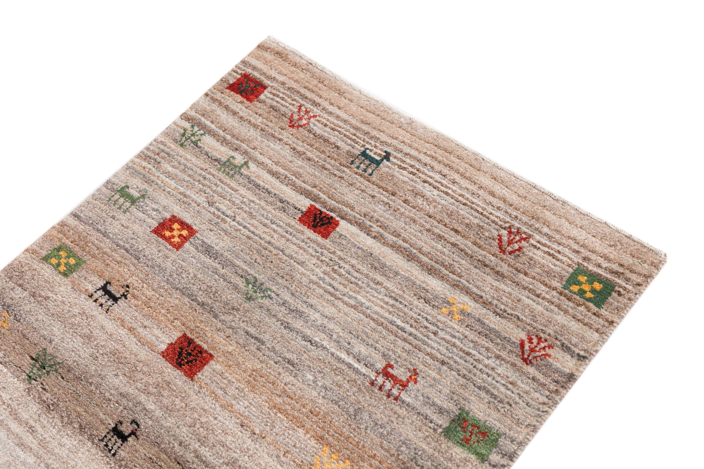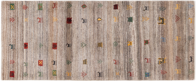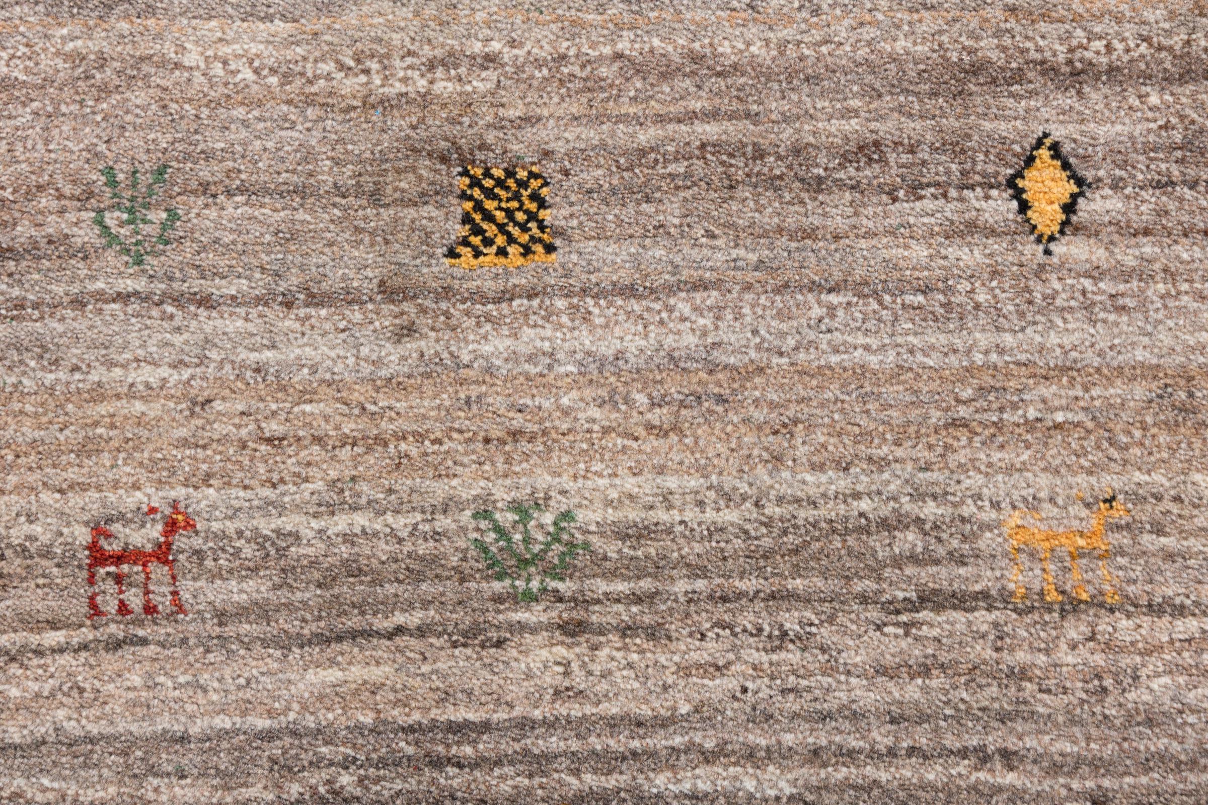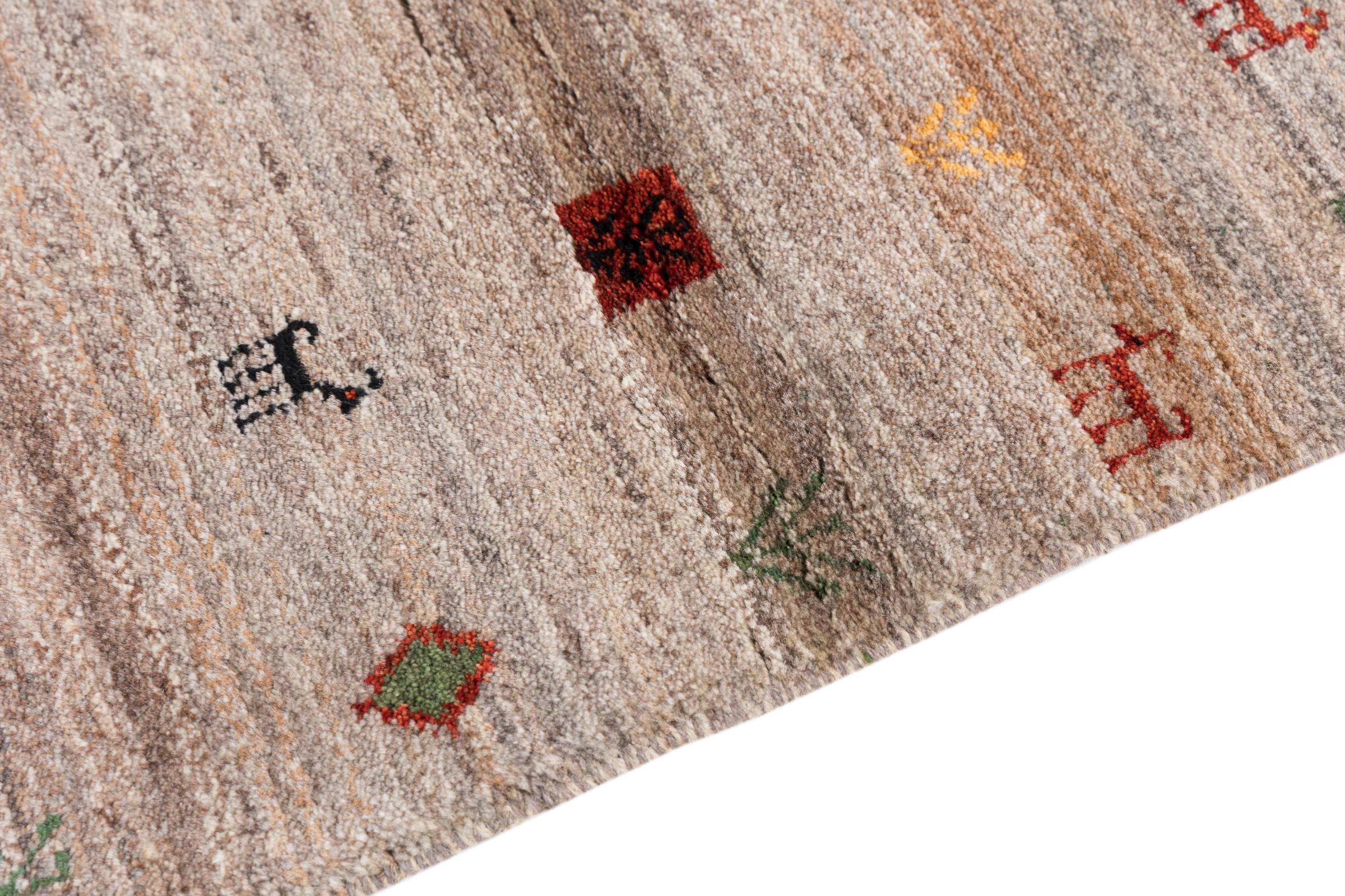 Ce tapis persan gabbeh est capable de séduire immédiatement n’importe qui grâce à sa haute qualité et à son robuste velours. Il a été fabriqué artisanalement par les nomades Ghasghai dans la région de Fars au sud de la Perse, à partir de la meilleure laine de mouton. Ils utilisent seulement des couleurs naturelles pour colorer la laine.