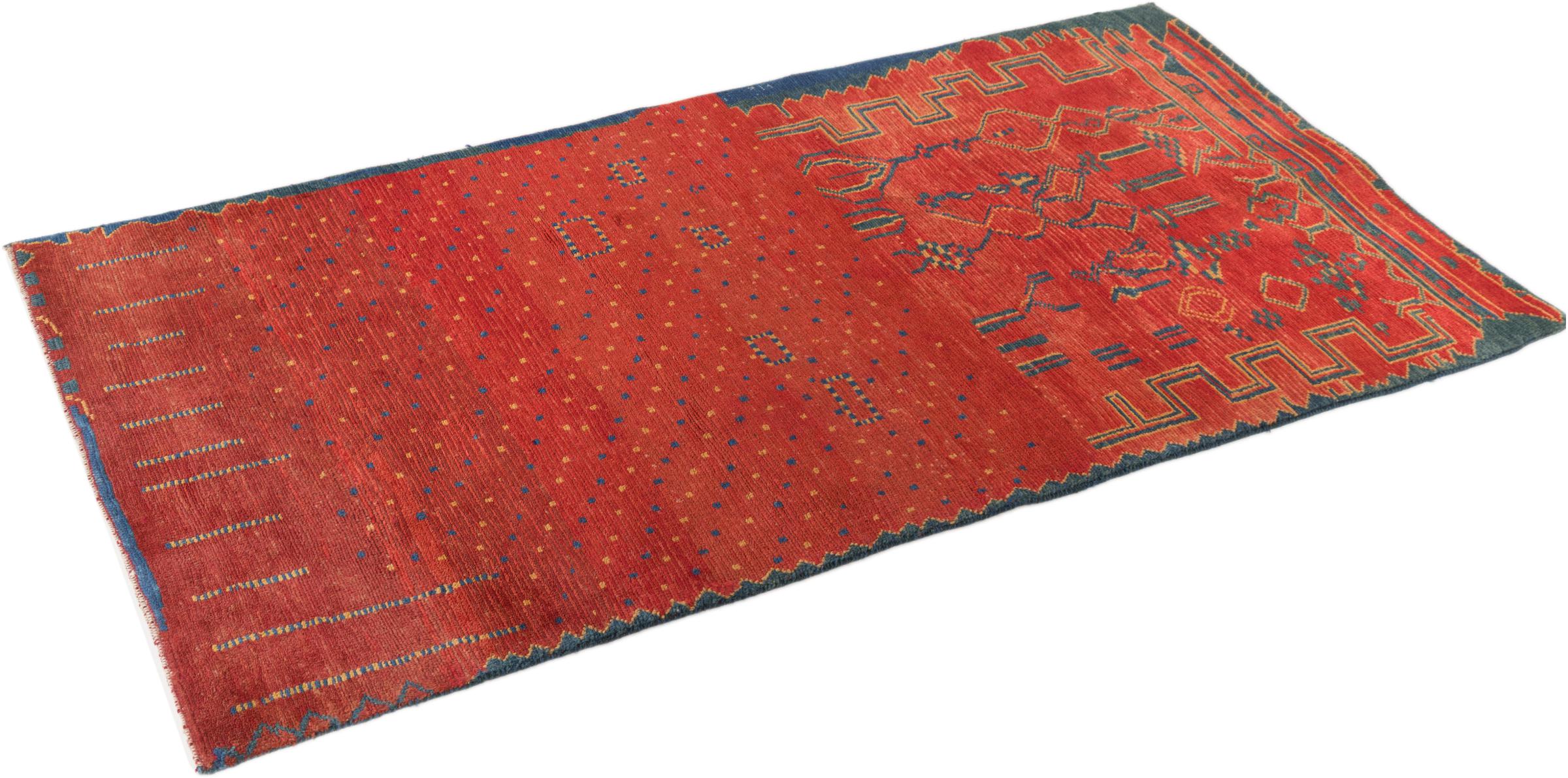 Ce tapis persan gabbeh est capable de séduire immédiatement n’importe qui grâce à sa haute qualité et à son robuste velours. Il a été fabriqué artisanalement par les nomades Ghasghai dans la région de Fars au sud de la Perse, à partir de la meilleure laine de mouton. Ils utilisent seulement des couleurs naturelles pour colorer la laine.