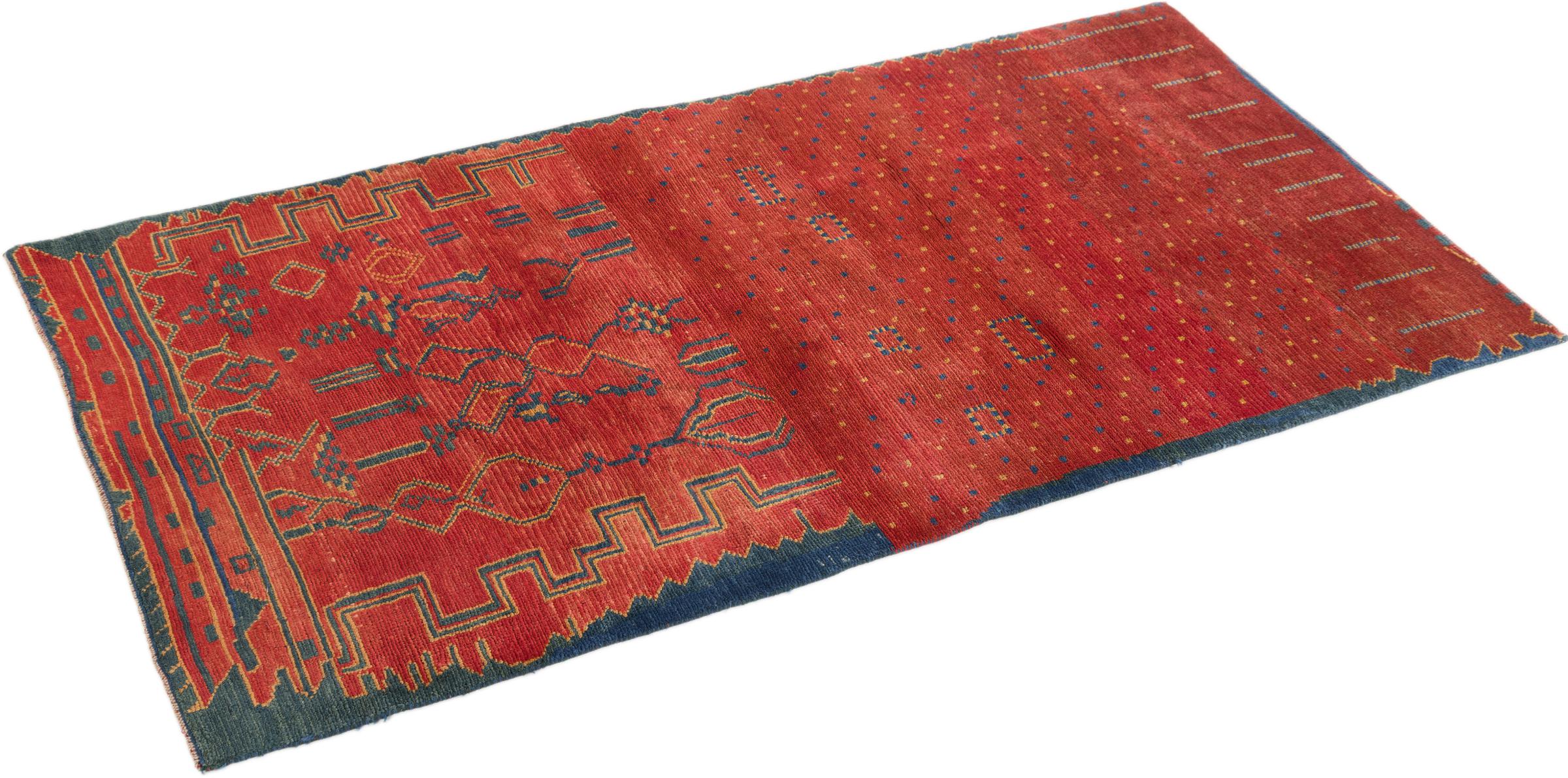 Réf. Article: 298590007767 Taille: 187x84 cm Épaisseur: ap. 18 mm Densité de nouage: 72 000 - 90 000 / m² Fabrication: Noué à la main Velours: Laine filée à la main Chaîne: Laine de mouton Origine: Persie / Iran Âge: Nouveau Poids: ap. 8 kg Également connu sous Gabbe, Ghabbeh Nombre en stock: Unique - Seulement 1 en stock