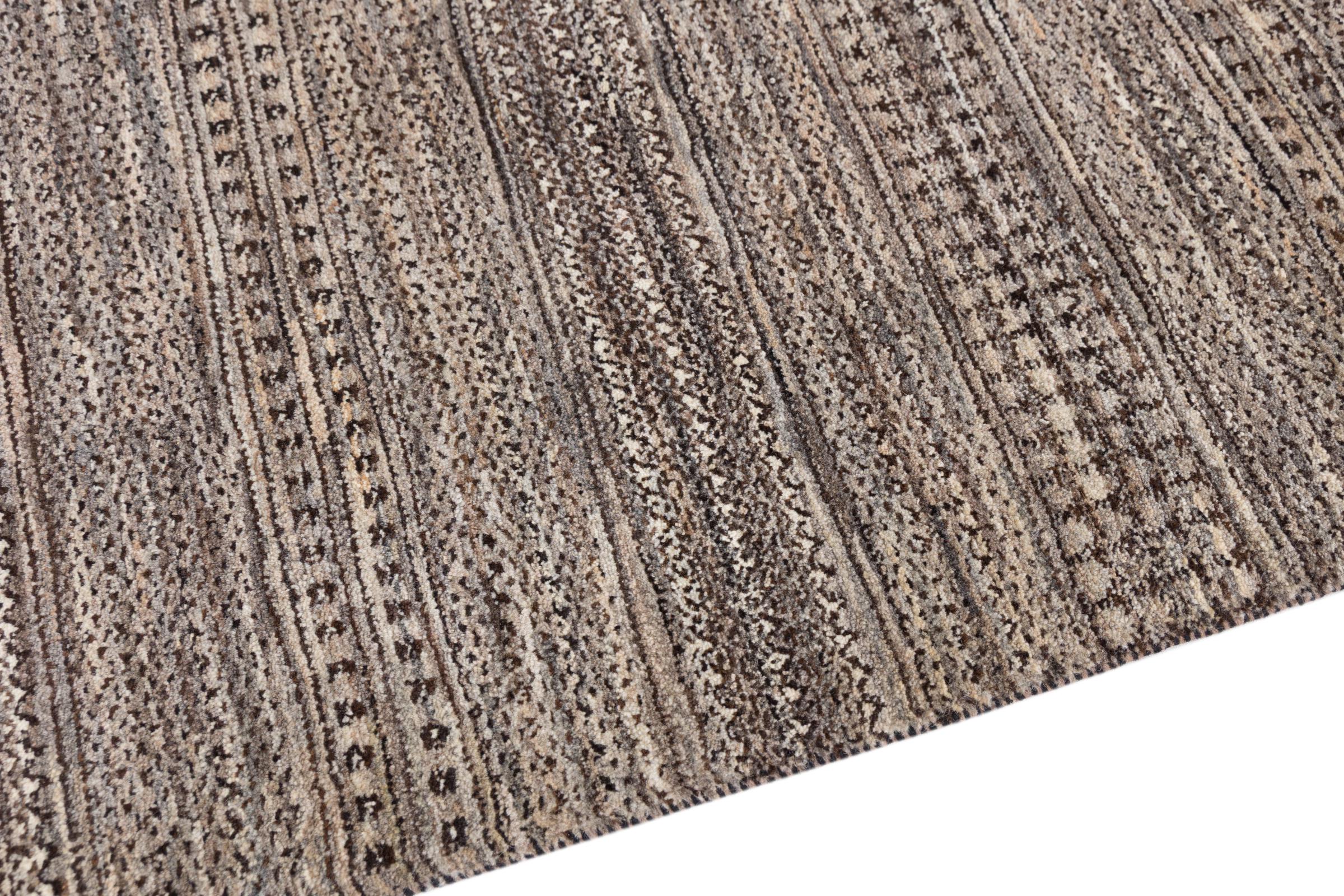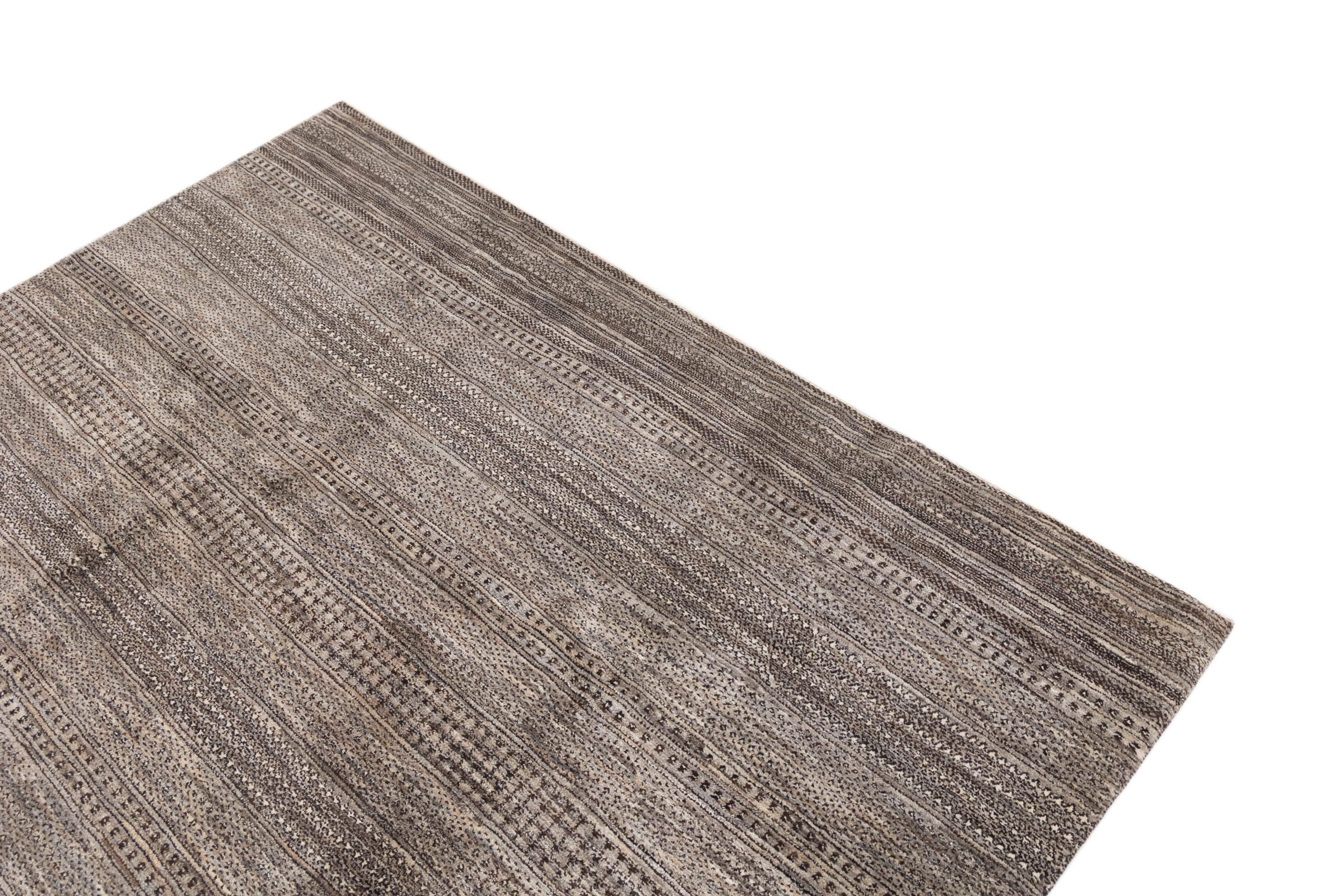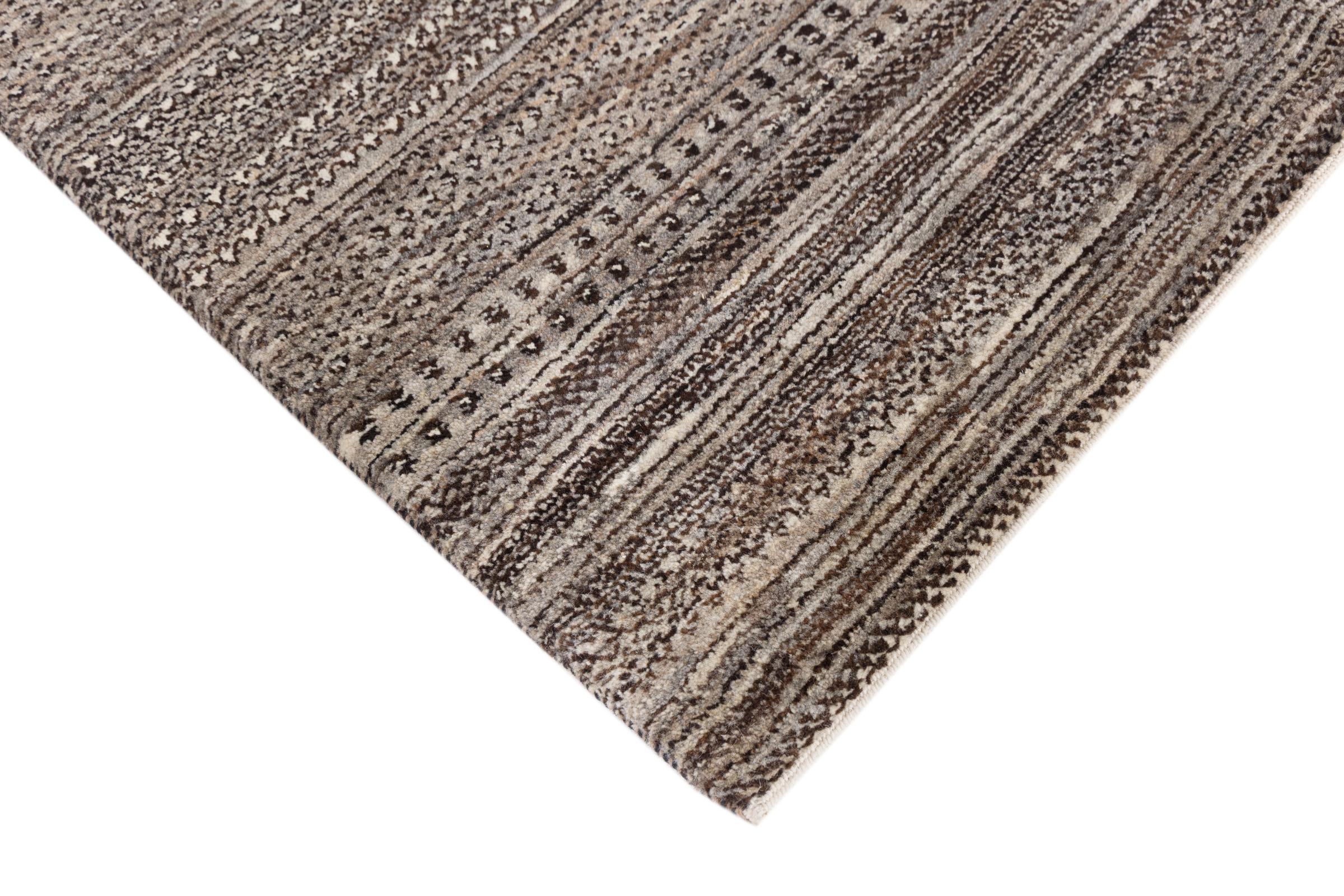 Ce tapis persan gabbeh est capable de séduire immédiatement n’importe qui grâce à sa haute qualité et à son robuste velours. Il a été fabriqué artisanalement par les nomades Ghasghai dans la région de Fars au sud de la Perse, à partir de la meilleure laine de mouton. Ils utilisent seulement des couleurs naturelles pour colorer la laine.
